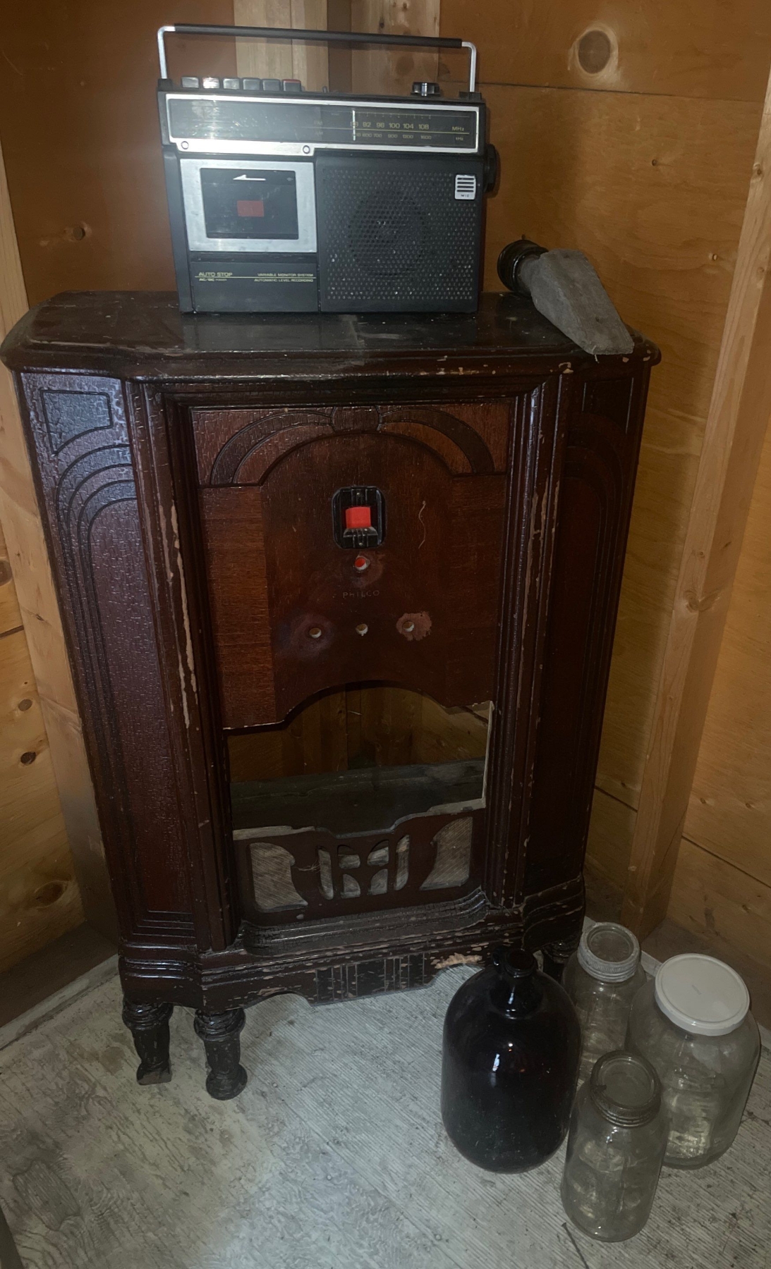 Vintage Boom Box Gutless Antique Radio Large Jars/Moonshine Canteens