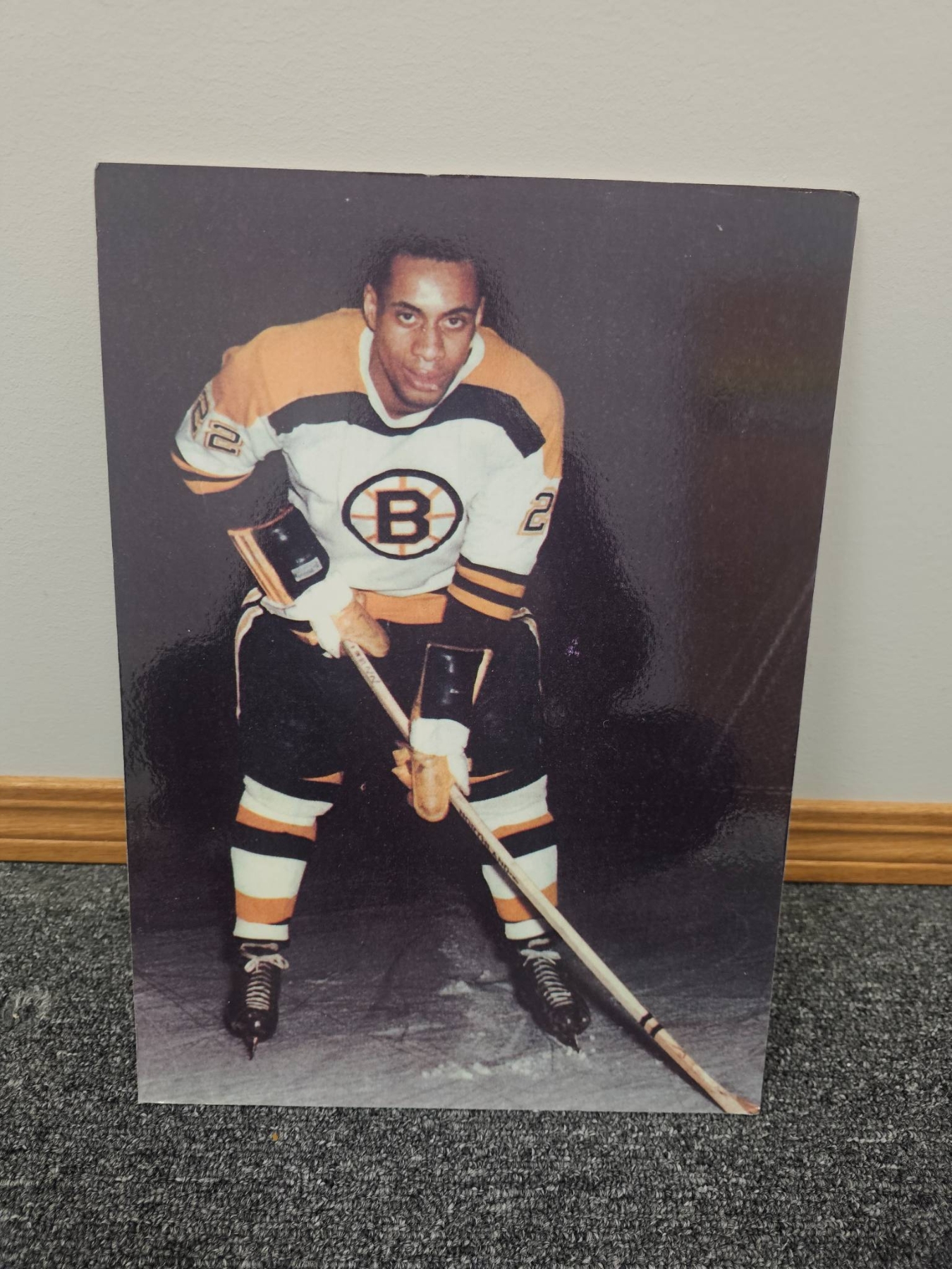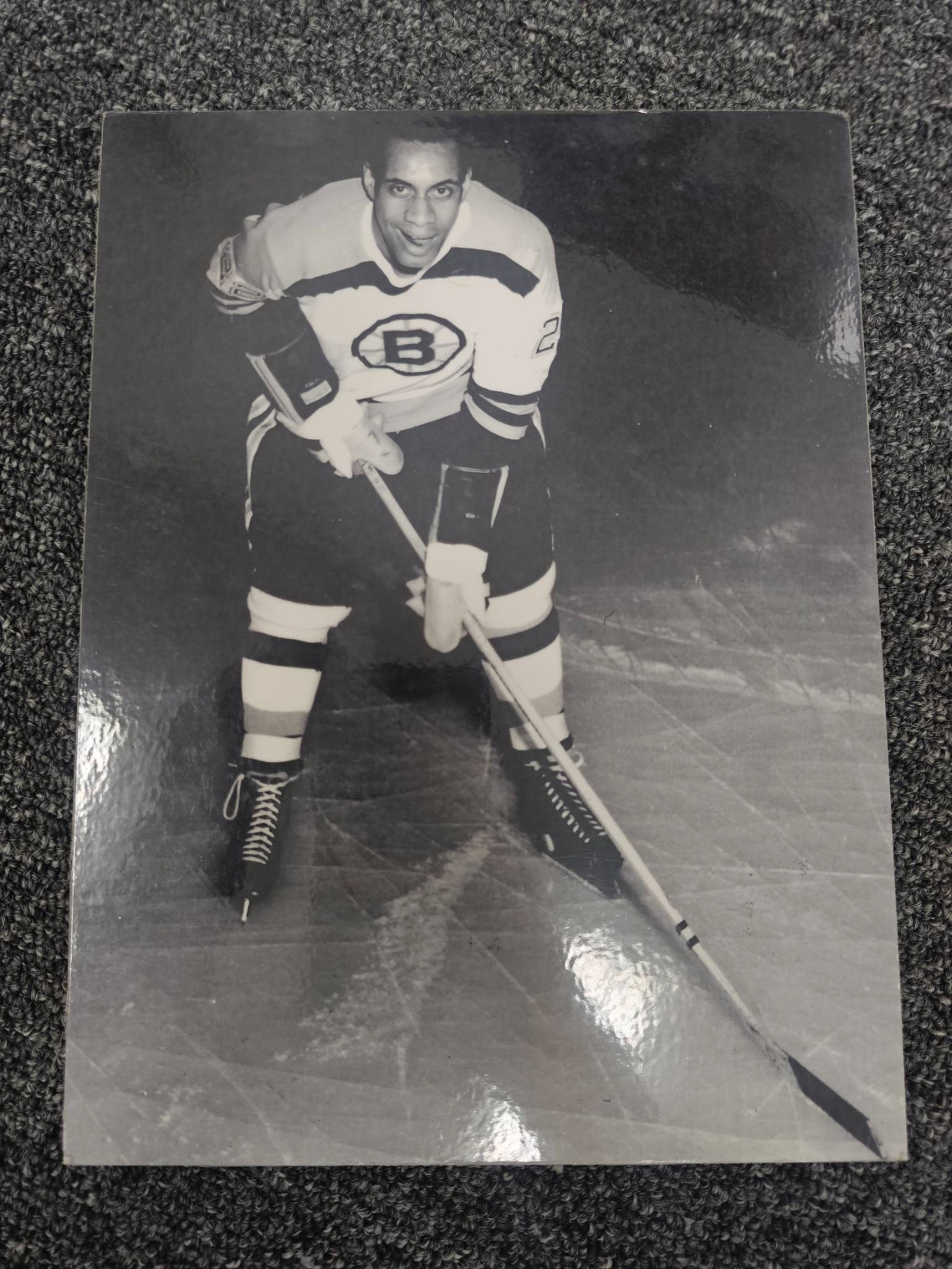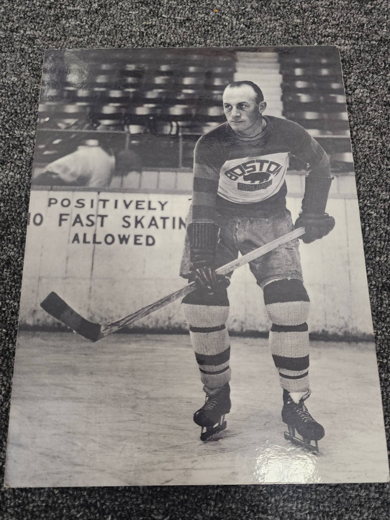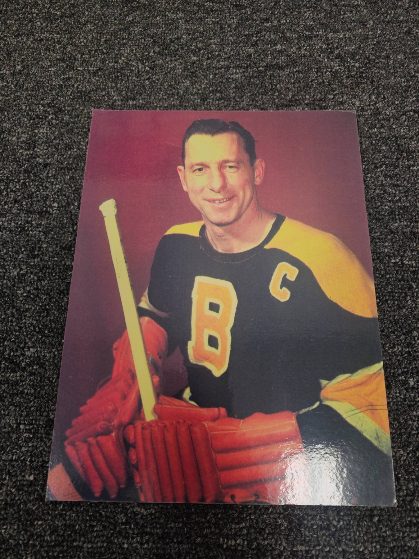 Comprehensive lot featuring seven Boston Bruins hockey-themed photographs, including a mix of color and black-and-white prints. Some depict legendary players in action, wearing iconic Bruins jerseys. Also includes a framed black-and-white team-related photograph. Ideal for hockey enthusiasts or Bruins memorabilia collectors. Condition varies; overall good presentation.