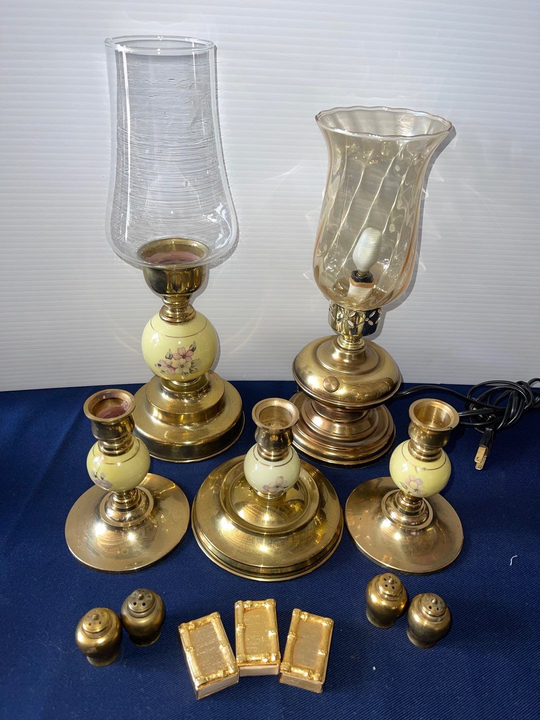 Vintage Brass/Glass Accent Lamps w/ Candle Stick Holders & more