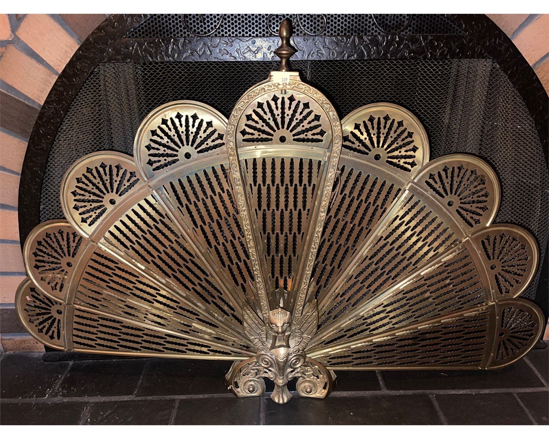 Vintage Brass Winged Gargoyle/Griffin Fire Screen