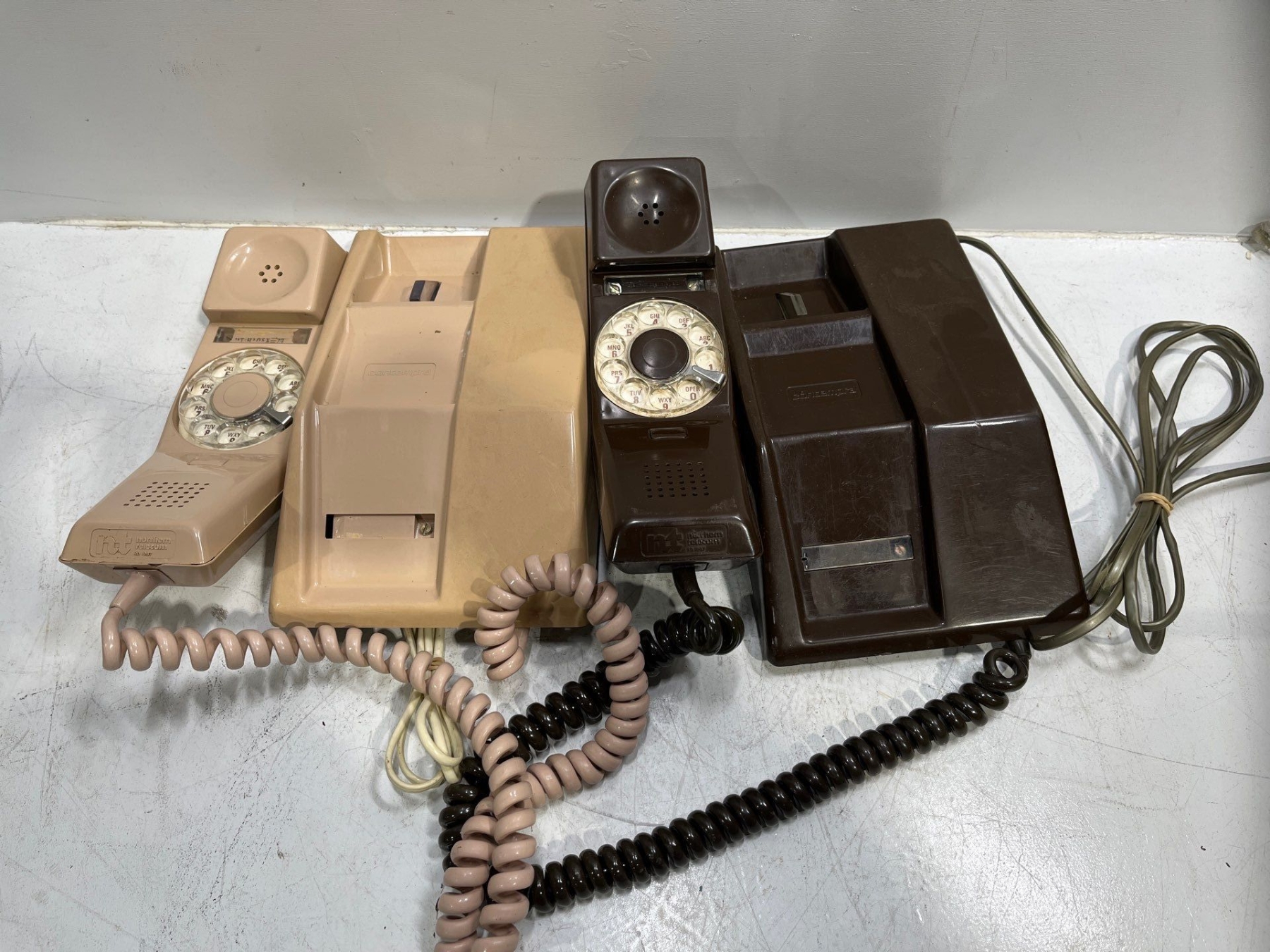 Vintage Brown/Pink Northern Telecom Tabletop Rotary-Dial Telephones