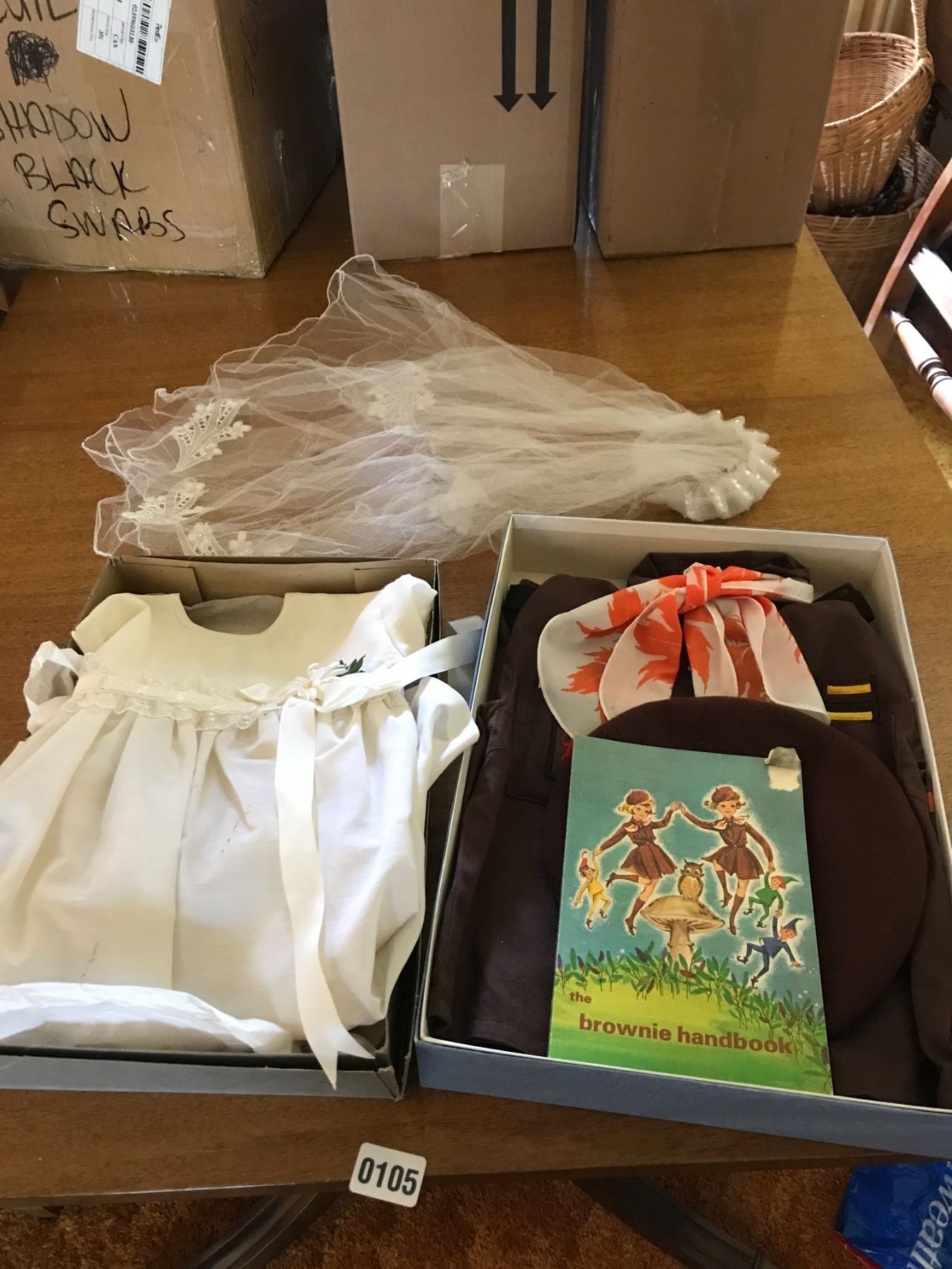 Vintage Brownie Uniform & Handbook, Communion & Confirmation Baby Dress & Veil