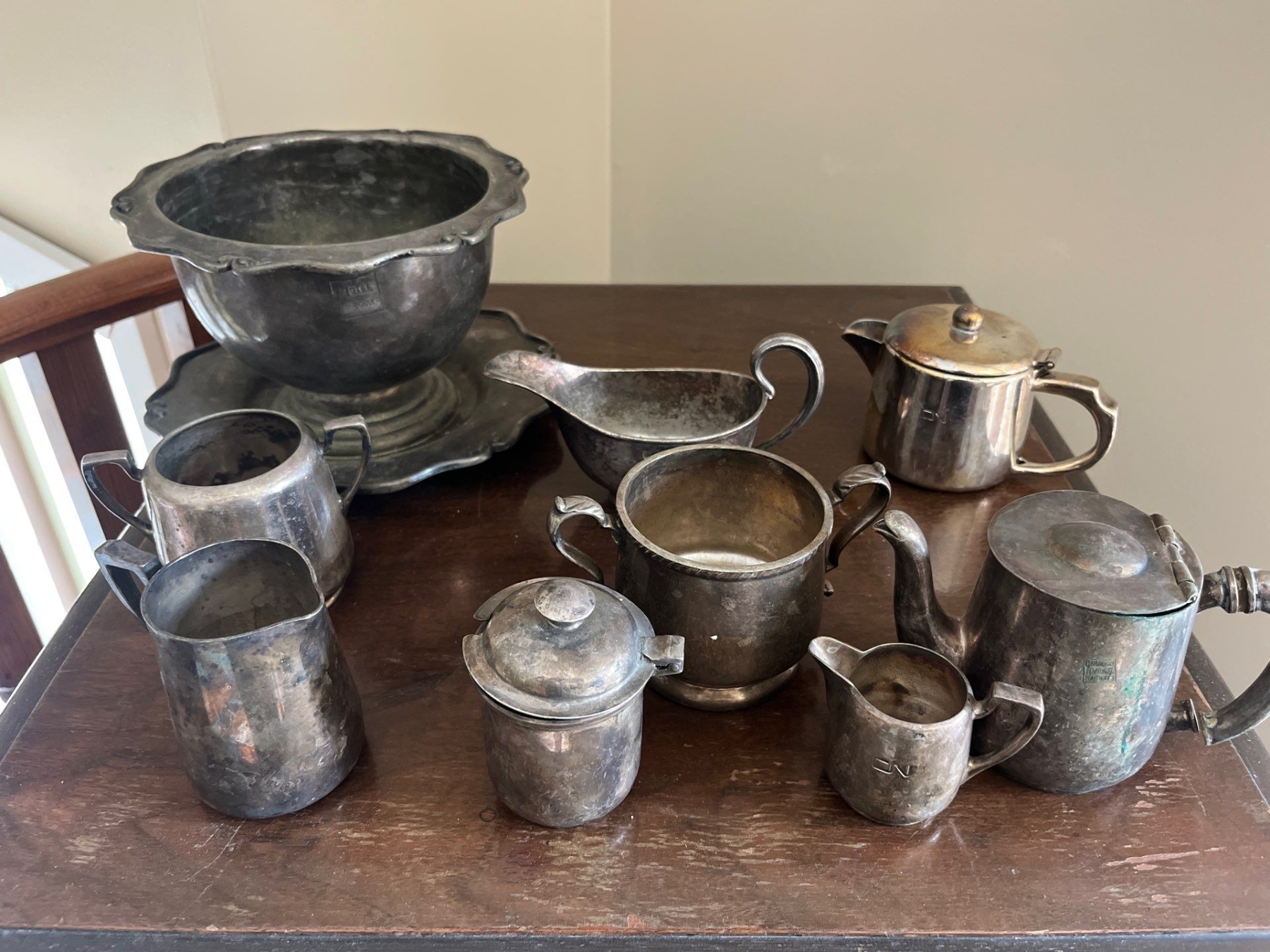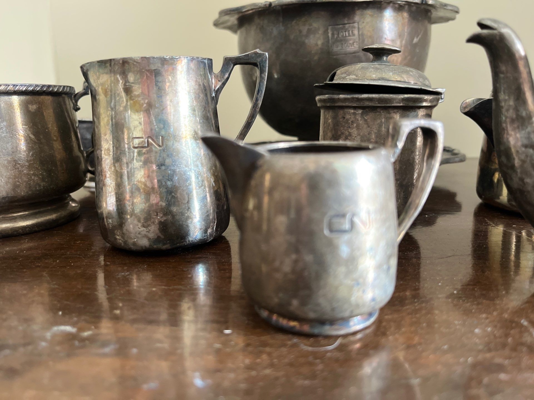 Vintage Canadian national railroad Company, and hotel, Vancouver, silver tea, pots, creamers, serving bowl and sugar bowls, an amazing find of Canadian history .