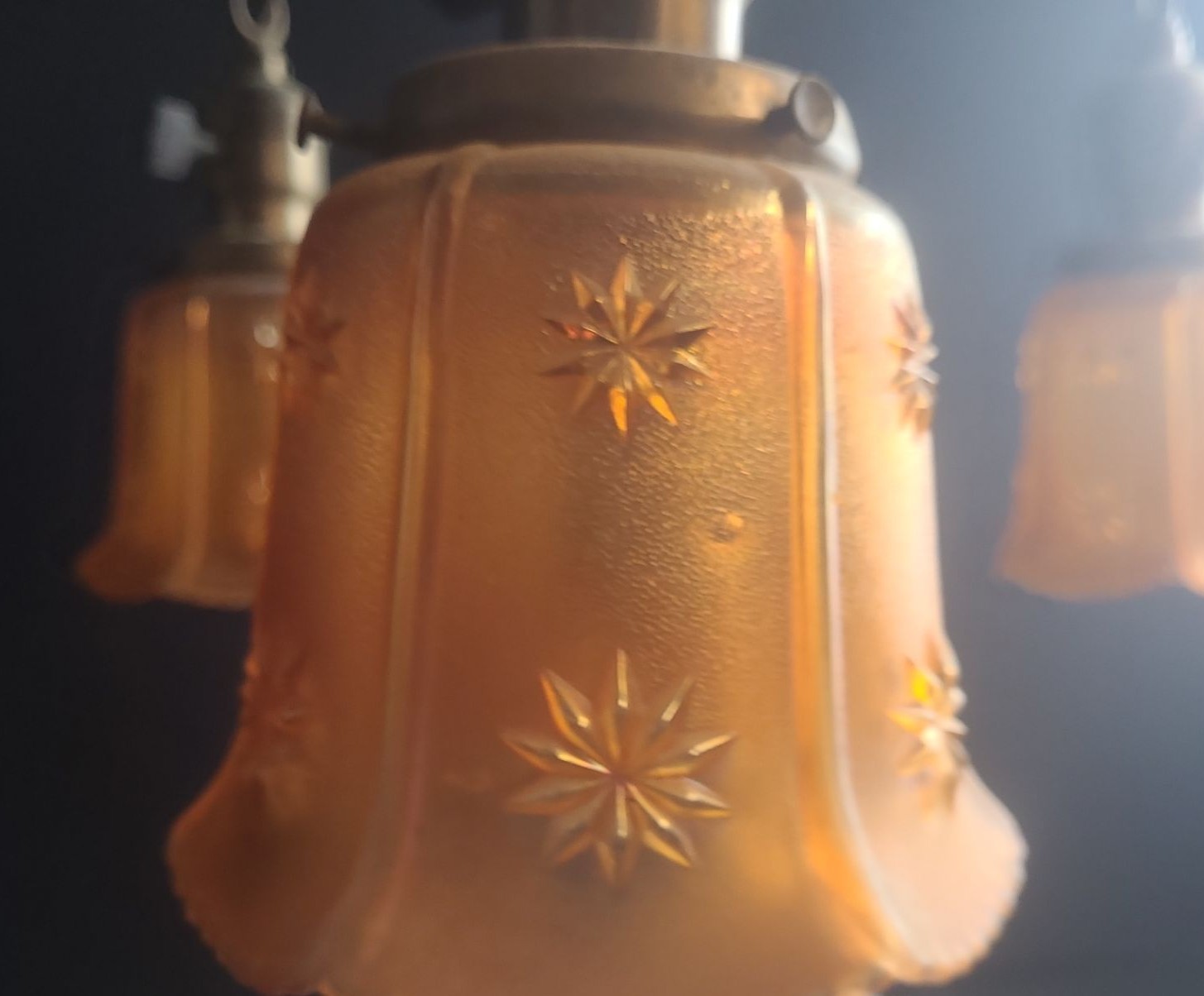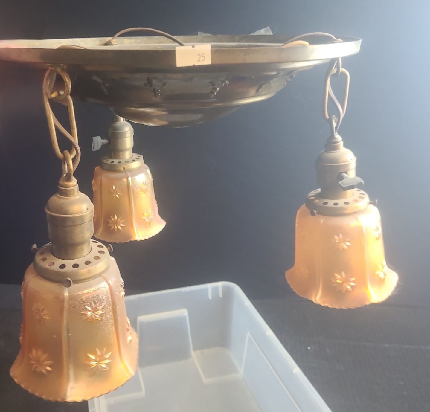Vintage Ceiling Fixture w/ 3 Shades- Base: 13  Diameter, Glass: 5  Opening, 7 T (Shade and Socket)