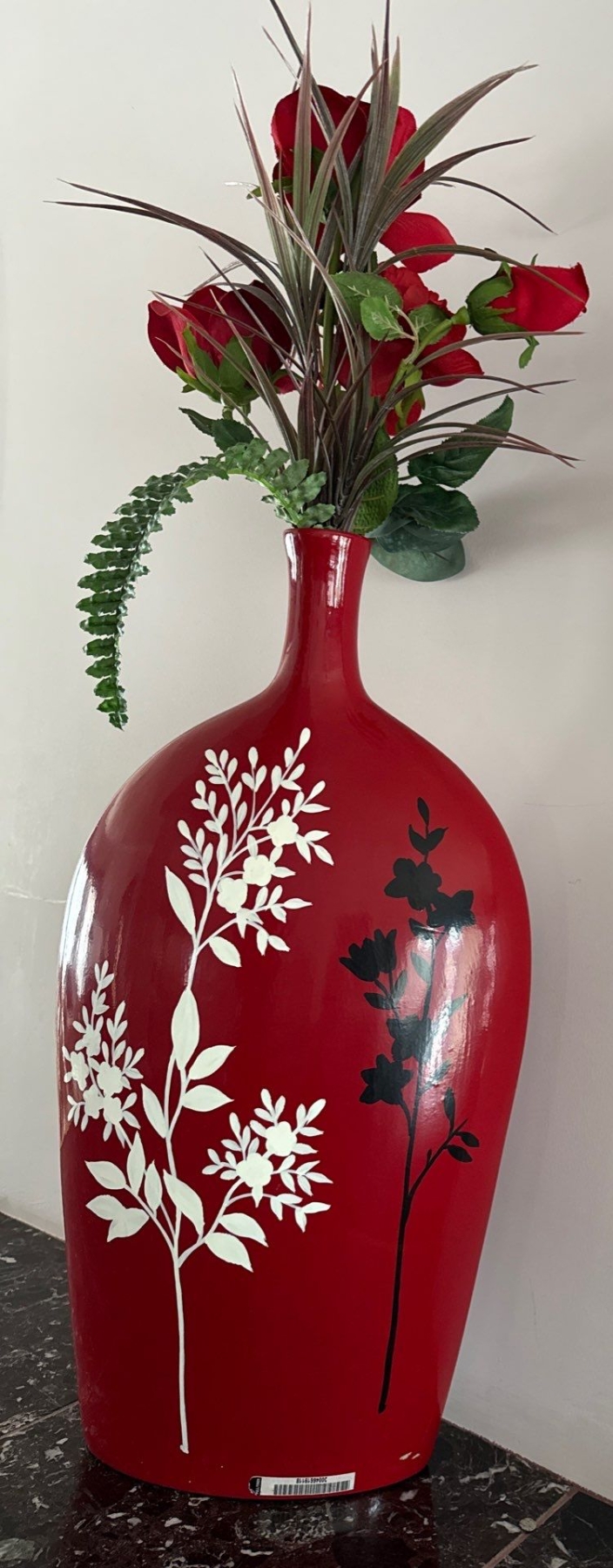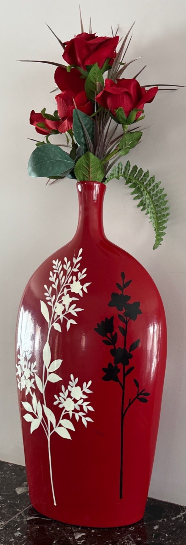 Vintage Ceramic Sculpture Handicraft Vase 23"tall w/Faux Flowers