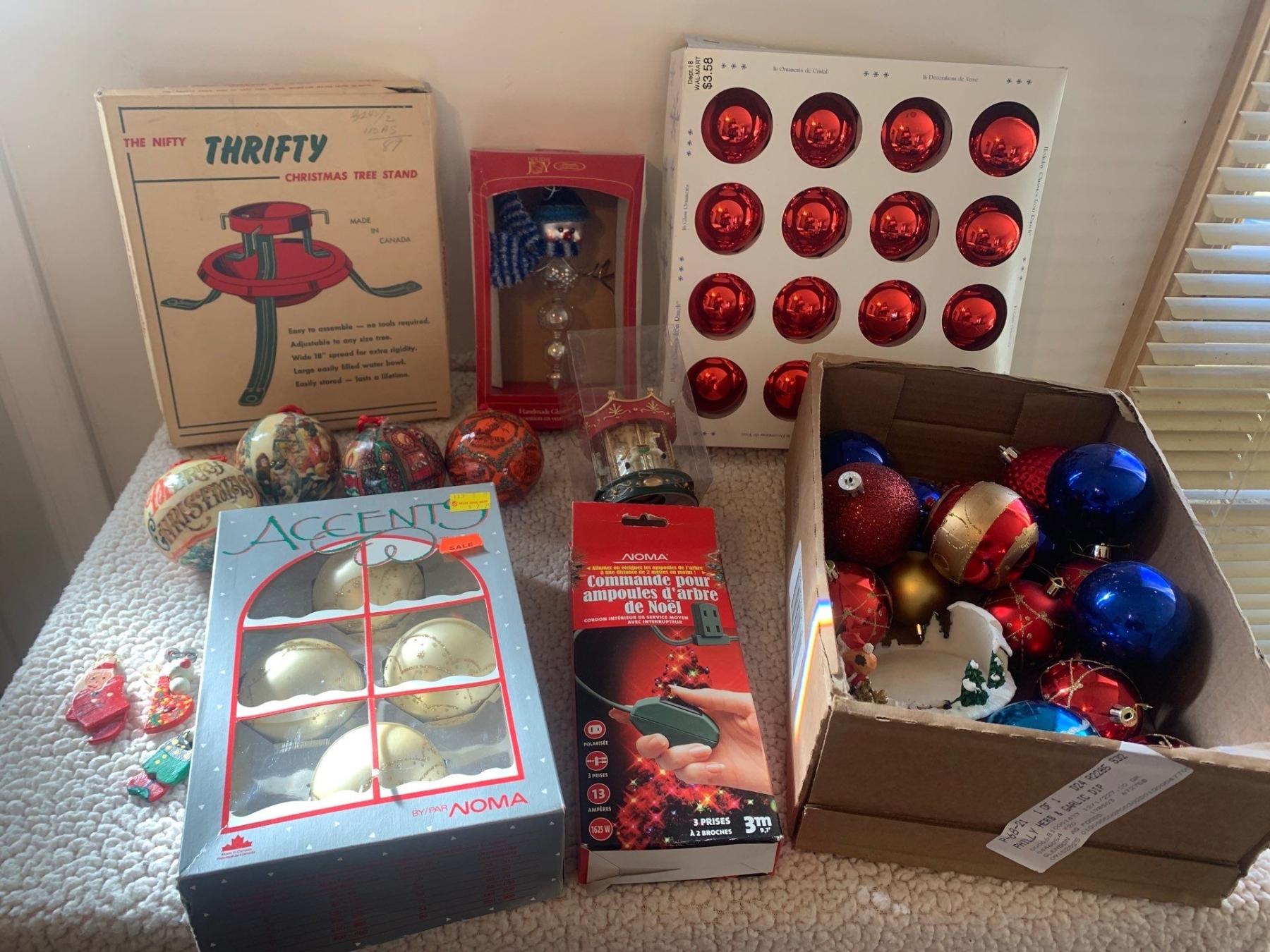 Vintage Christmas Lot, Vintage Metal Tree Stand, Bulbs and More
