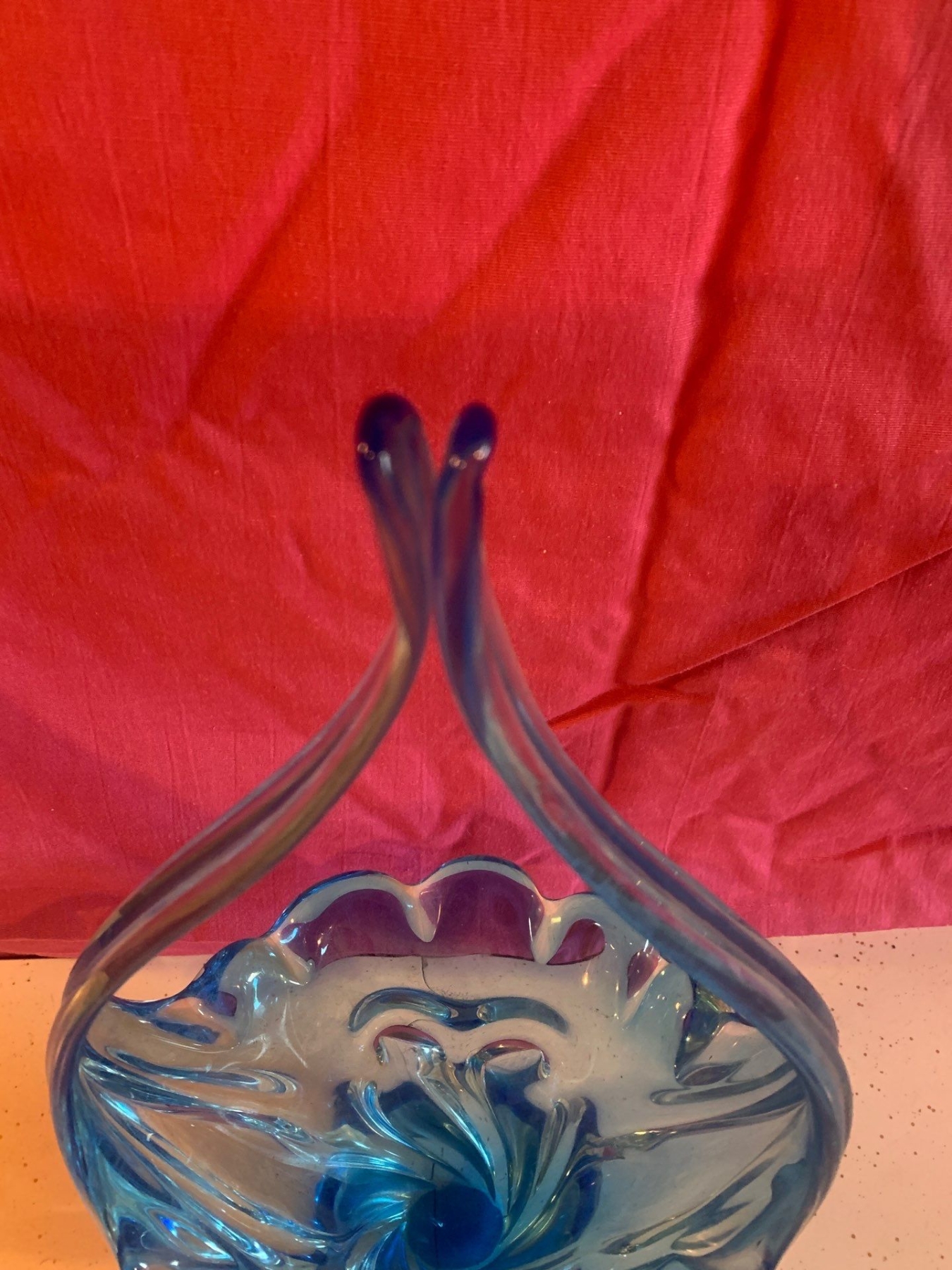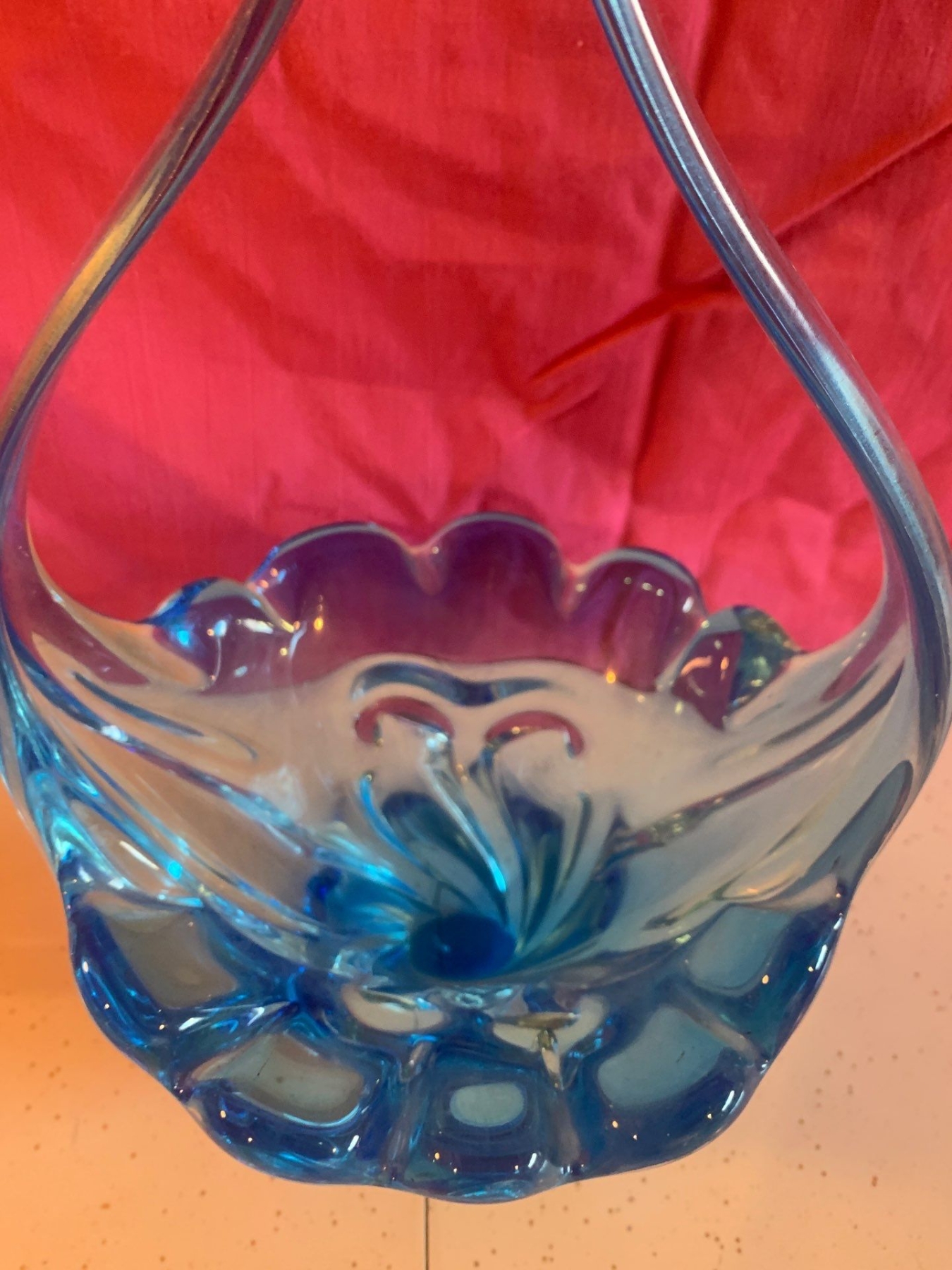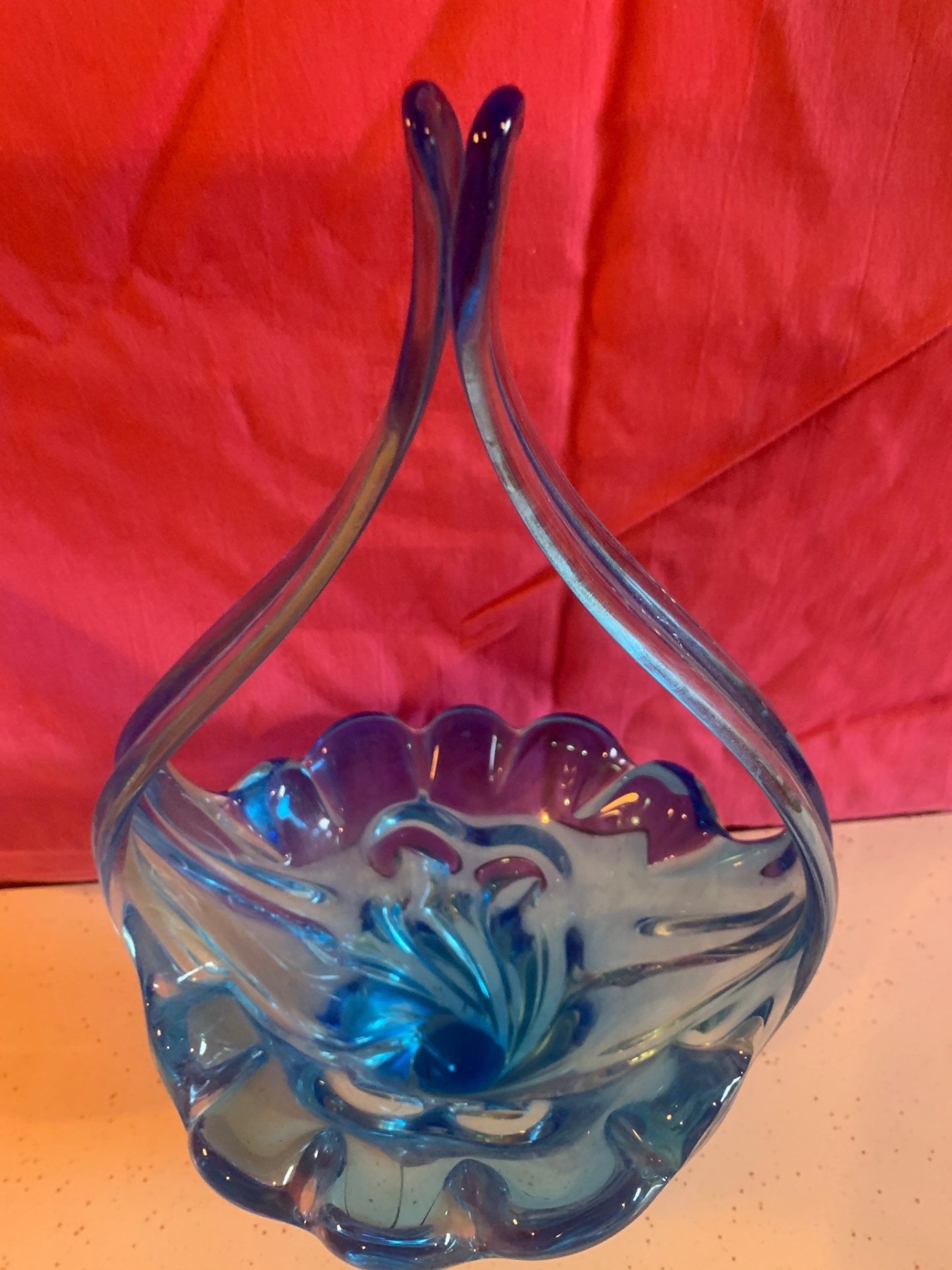 Vintage Cobalt Blue Chalet Art Glass Basket