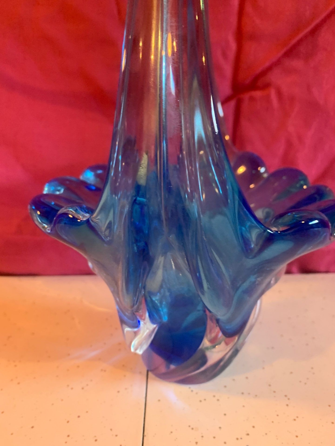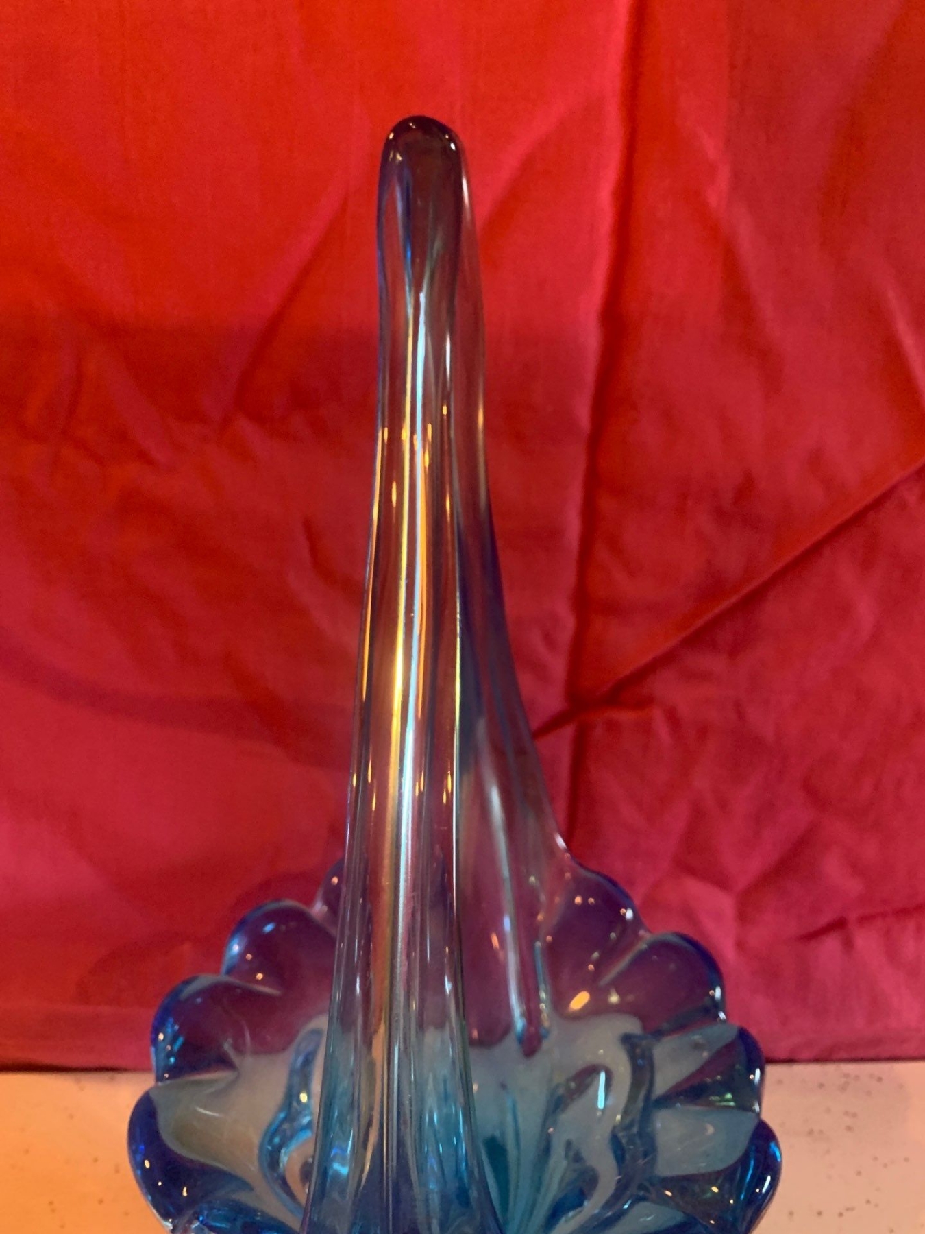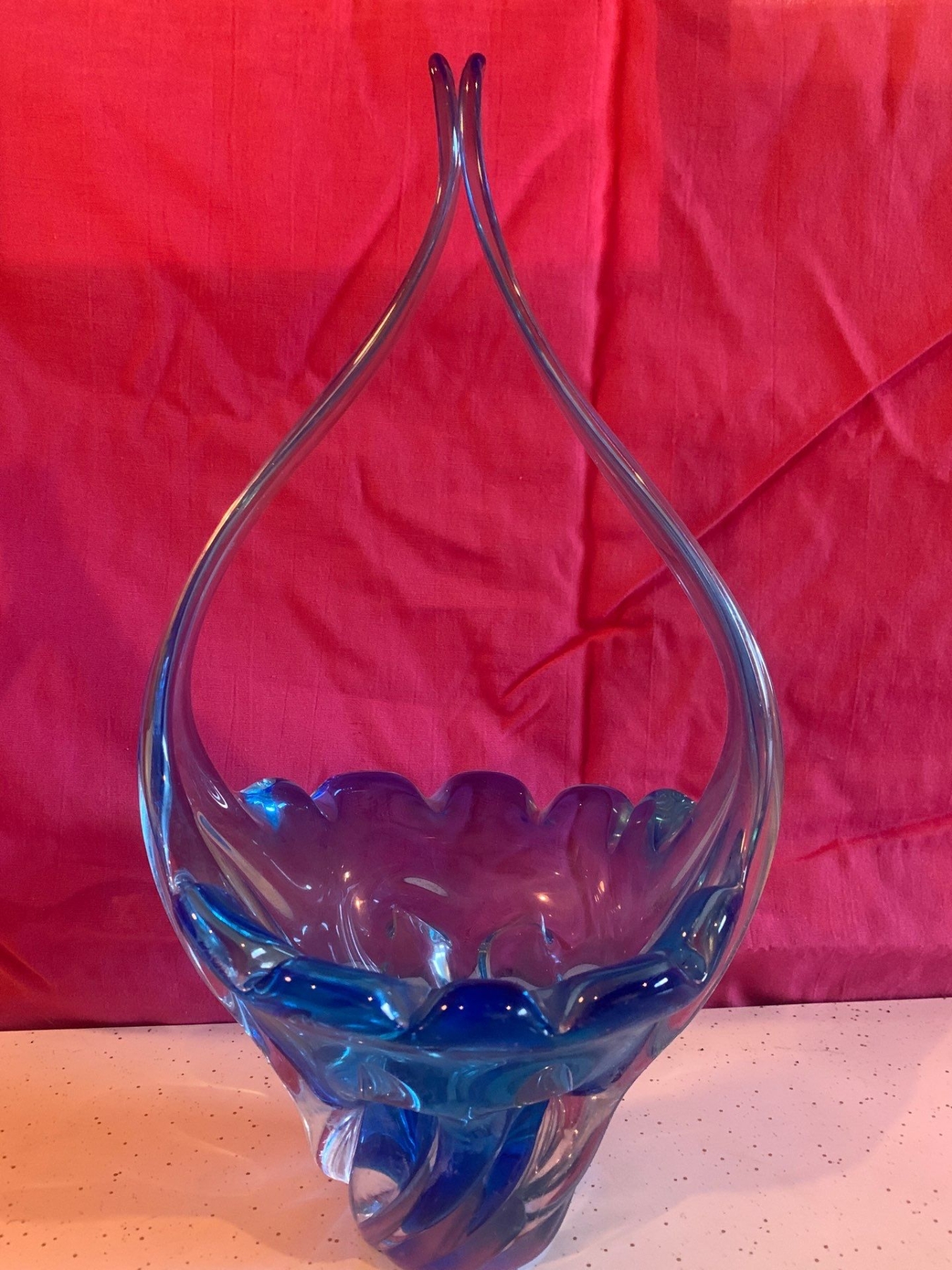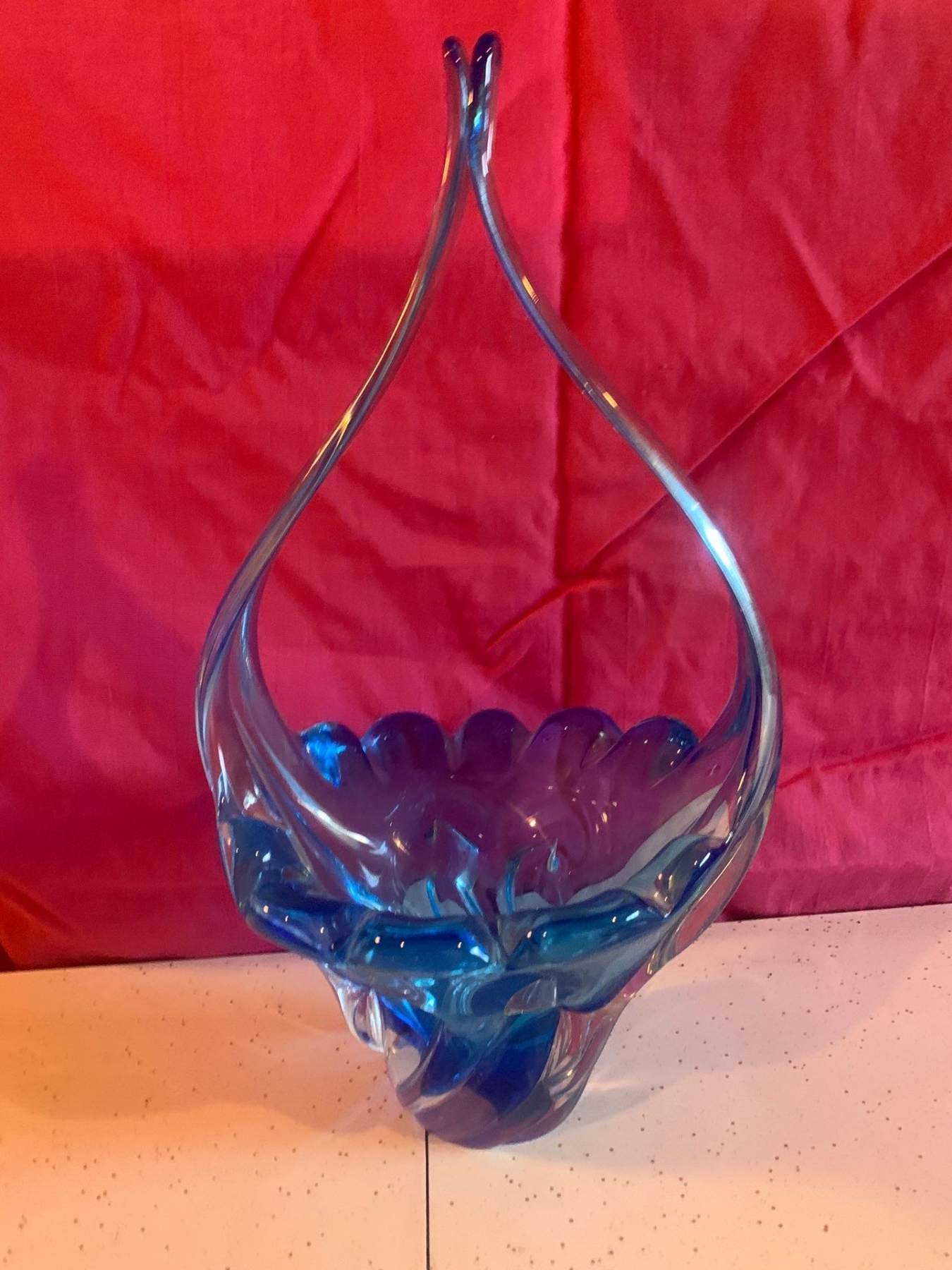 Vintage Cobalt Blue Chalet Art Glass Basket