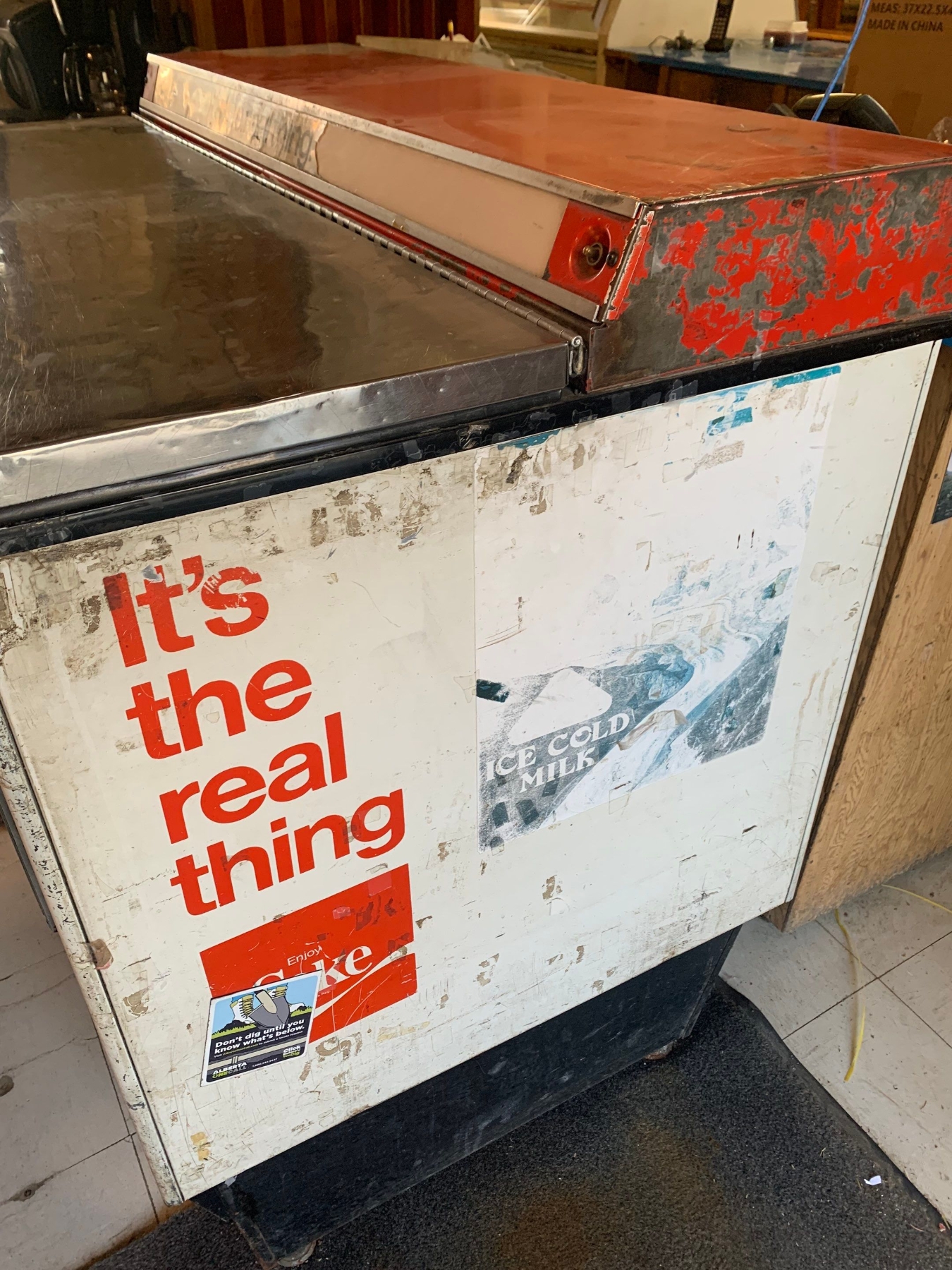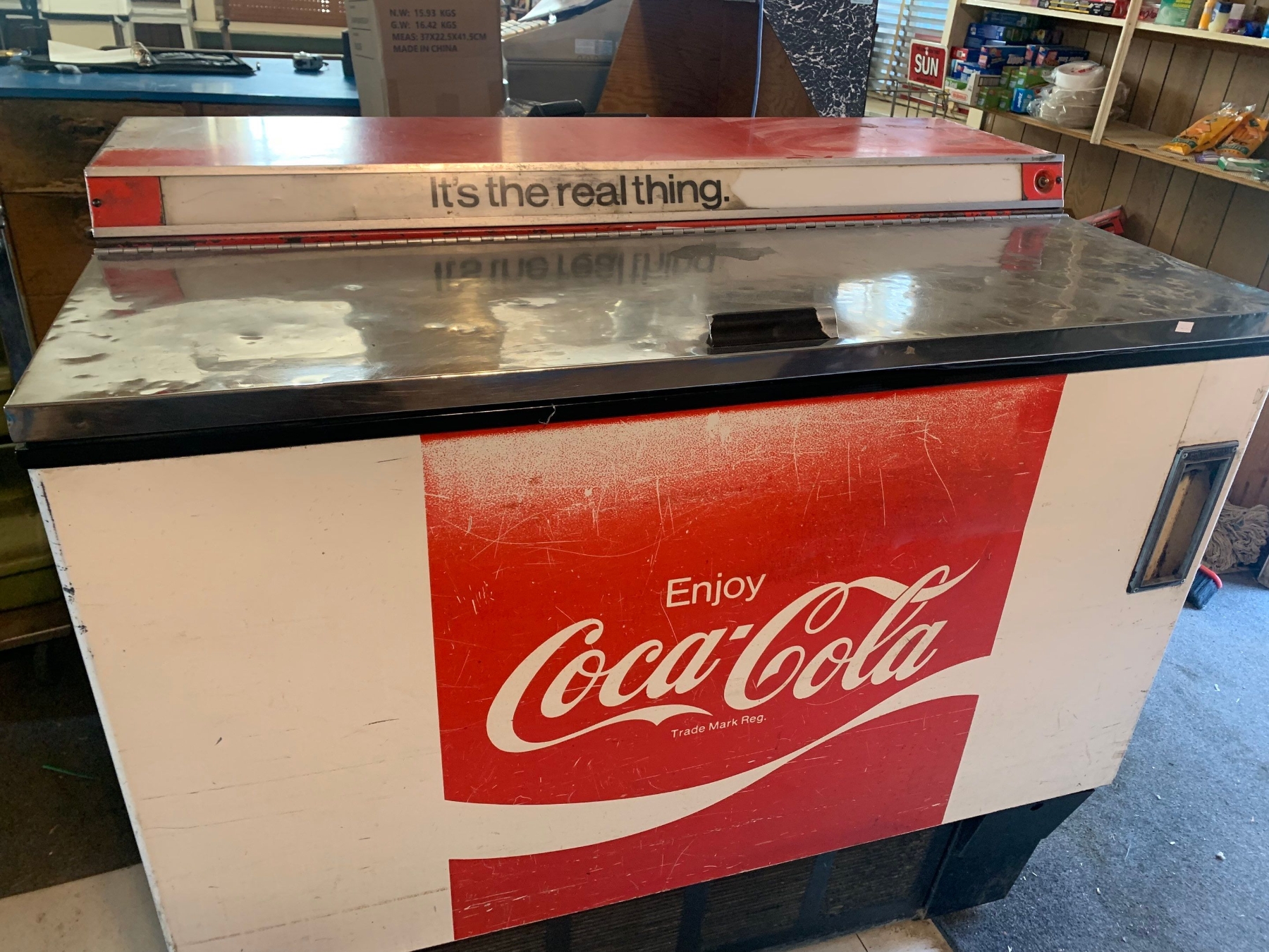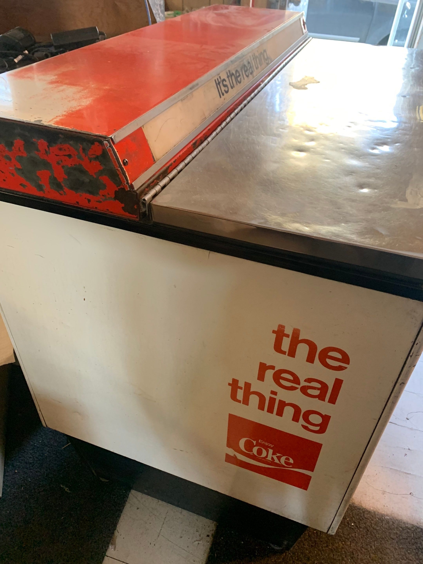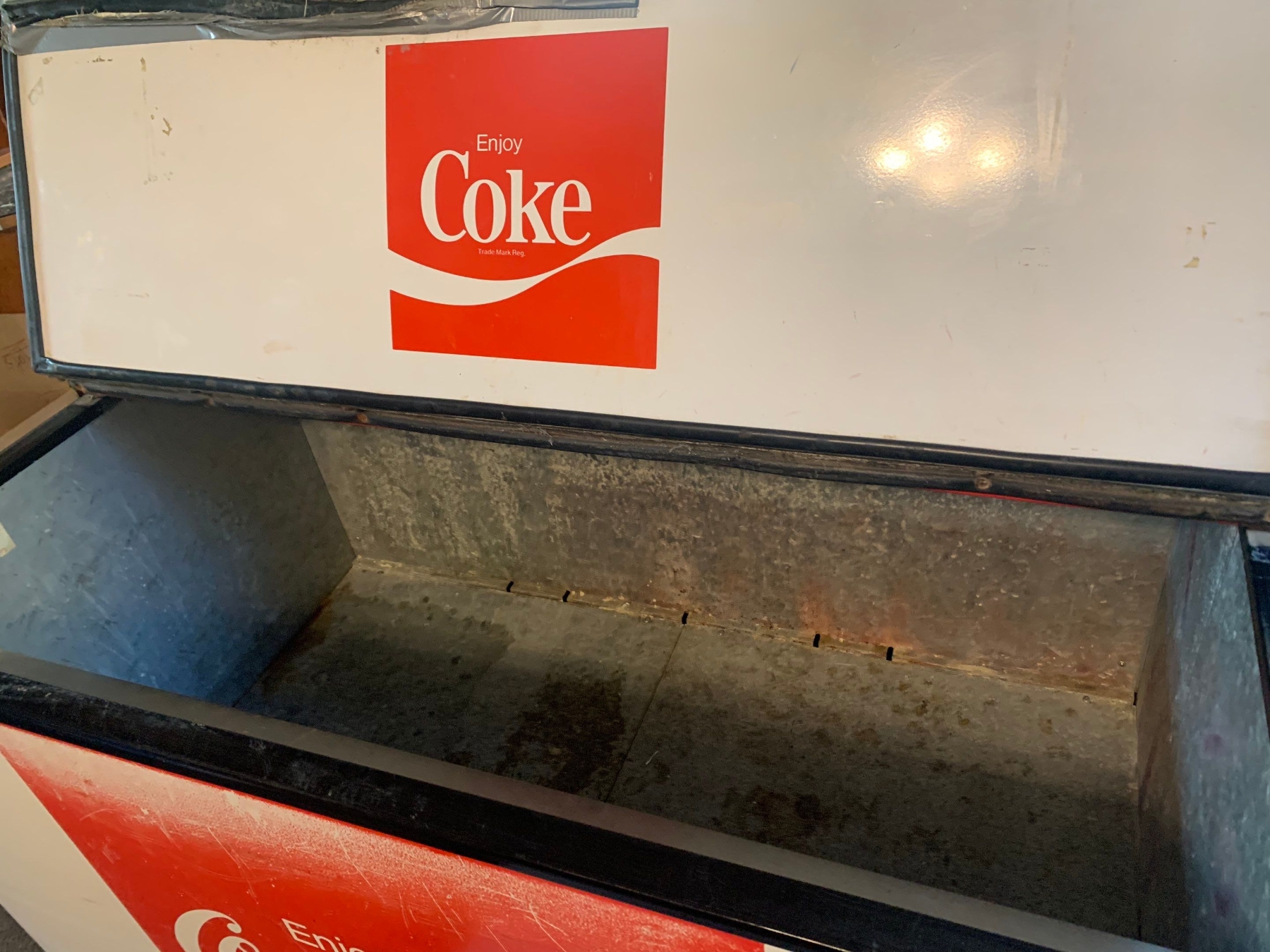 Vintage Coca Cola Cooler 40”T, 27”W. Heavy bring muscles to load