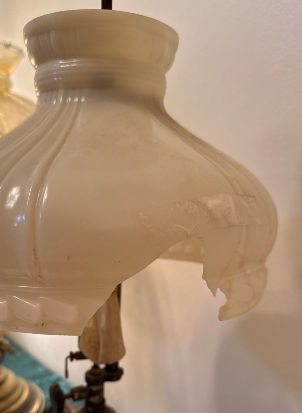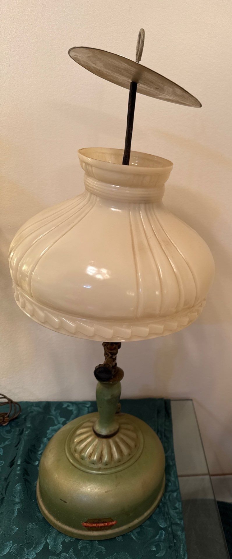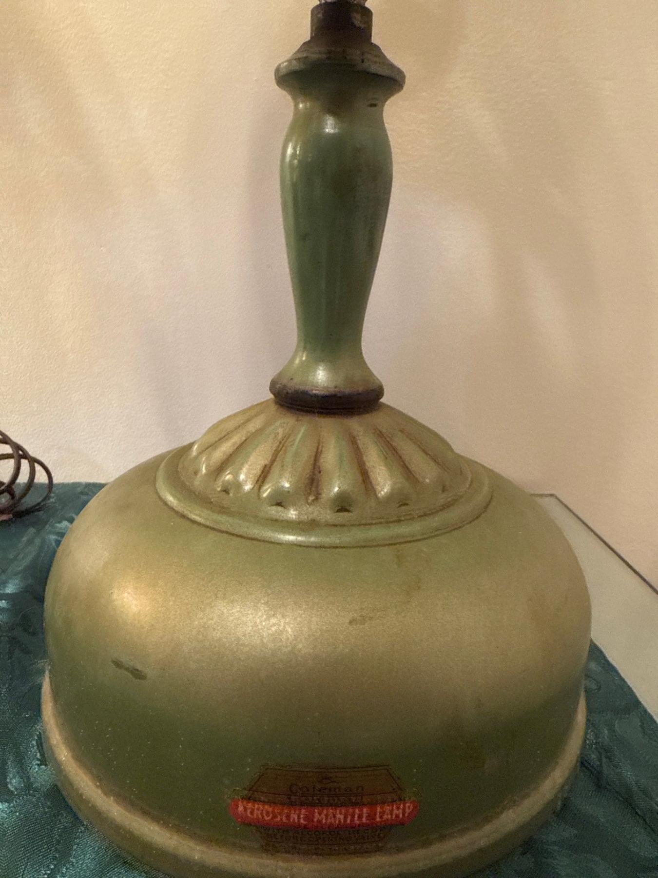 Vintage Coleman Quick-Lite Gas Table Lamp w/ Milk Glass Shade (Cracked Shade)