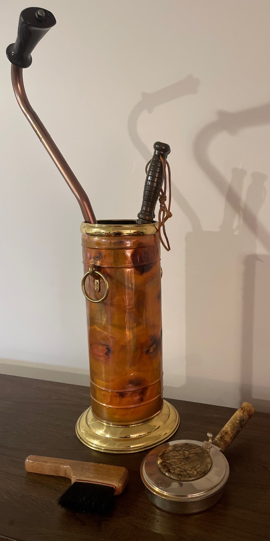 Vintage Collectable Copper & Brass Coal Scuttle Hod 18T w/ Ashtray & Hard Bristled Brush