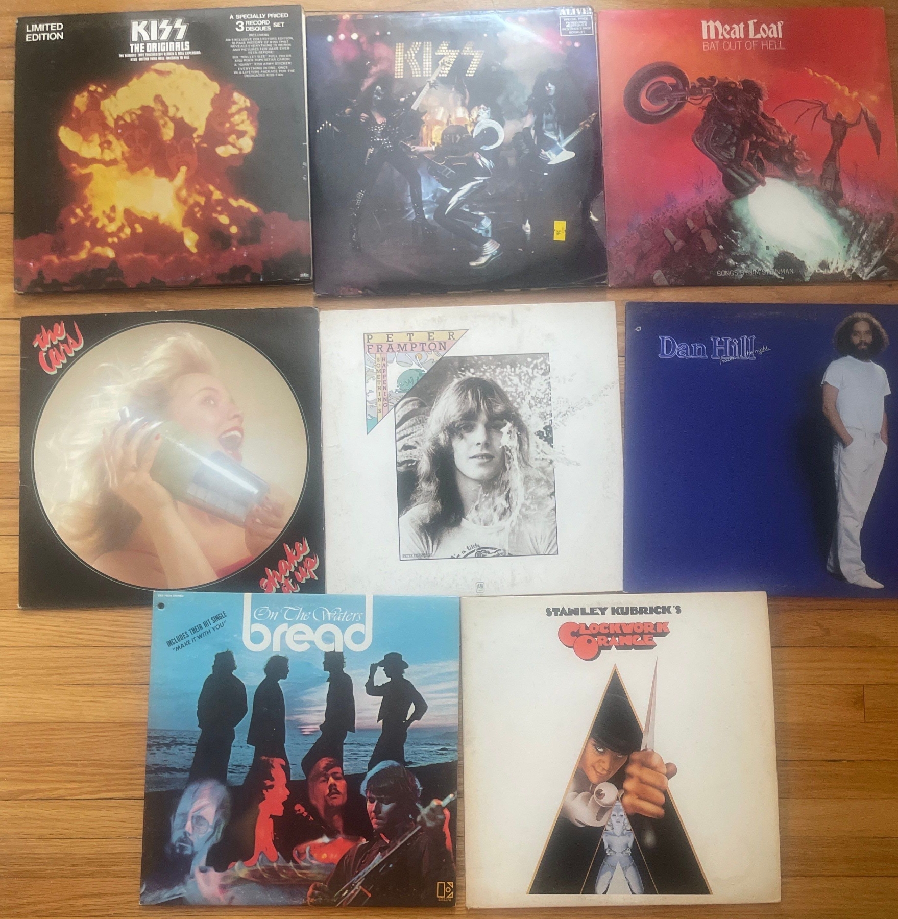 Vintage Collectible Albums /Records Meat Loaf, Kiss, The Cars, Peter Framton, Dan Hill, Stanley Kubrick & On the Waters