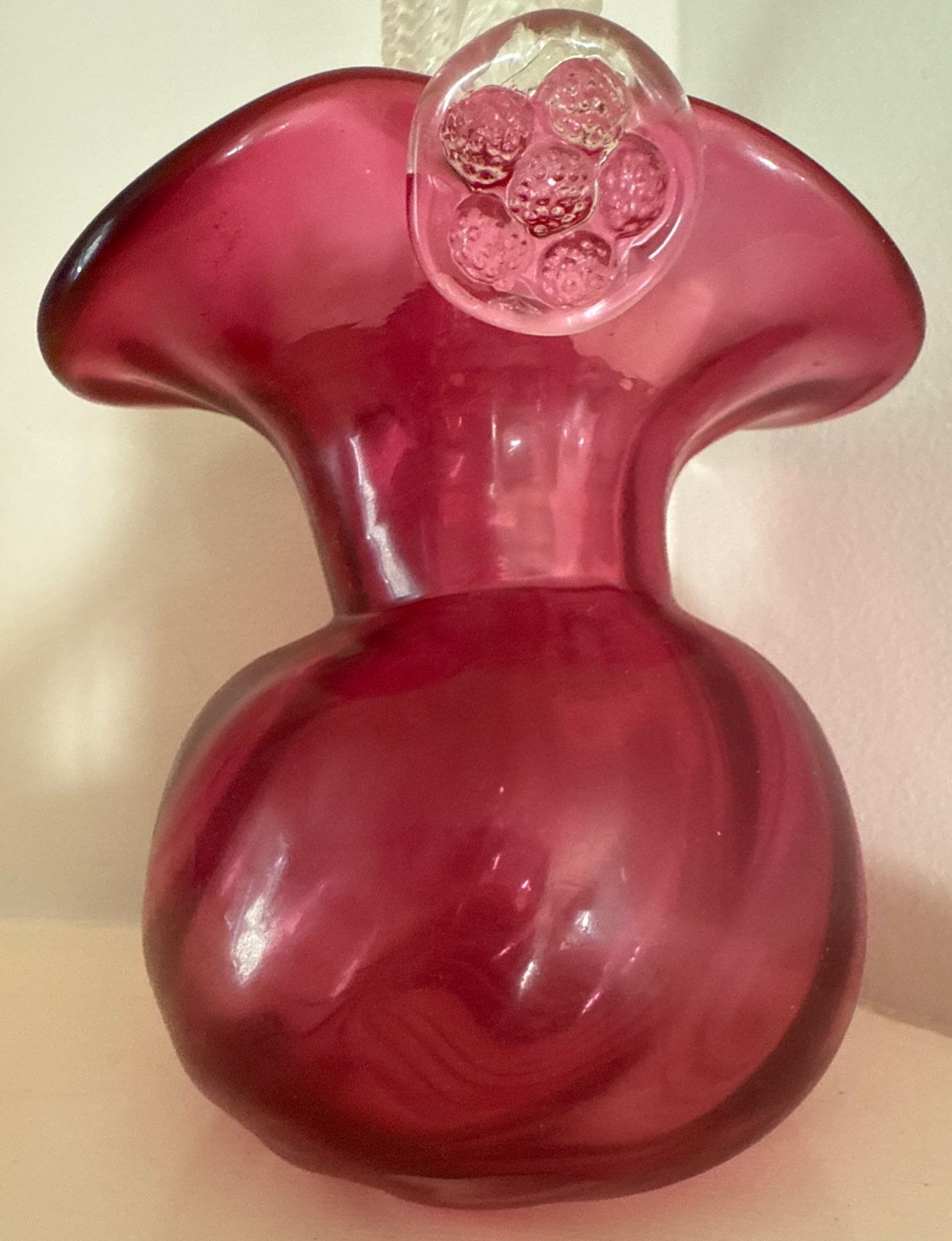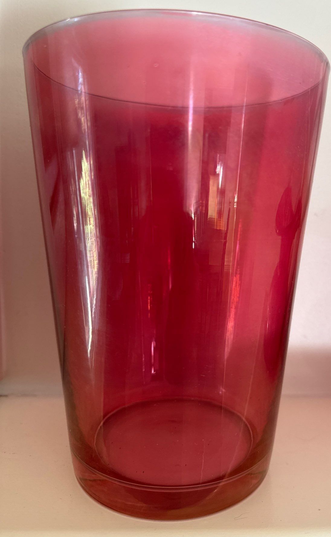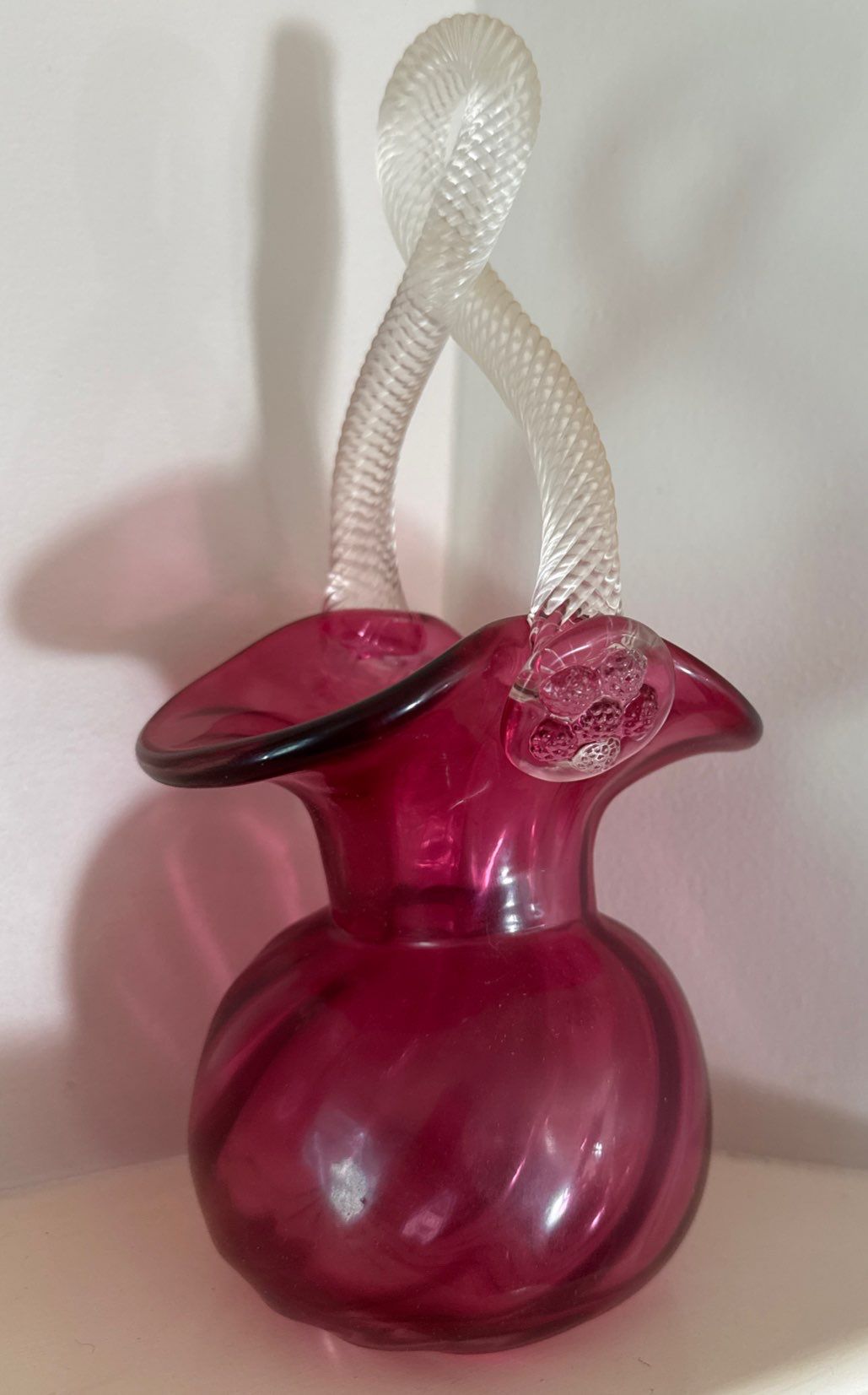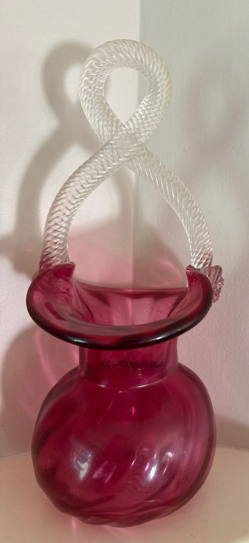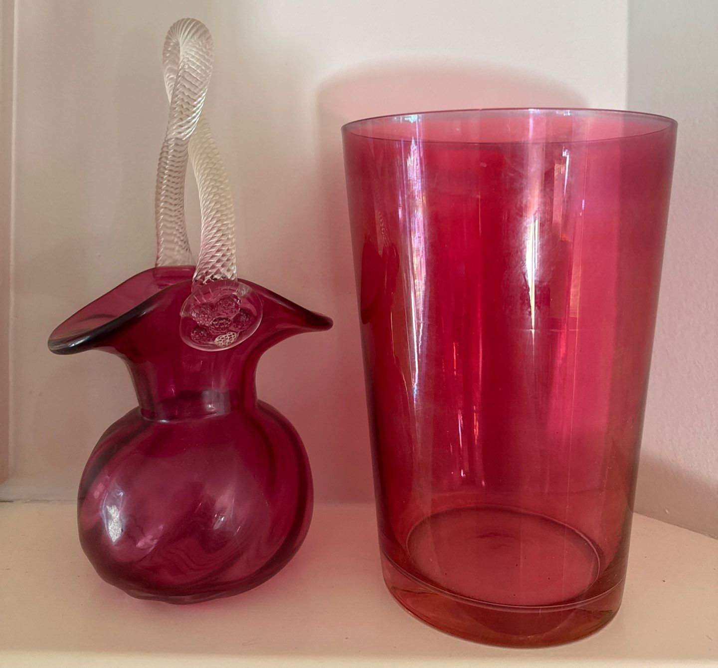 Vintage Cranberry Glass Basket w/twisted Handle & Cranberry Glass Vase 10"tall