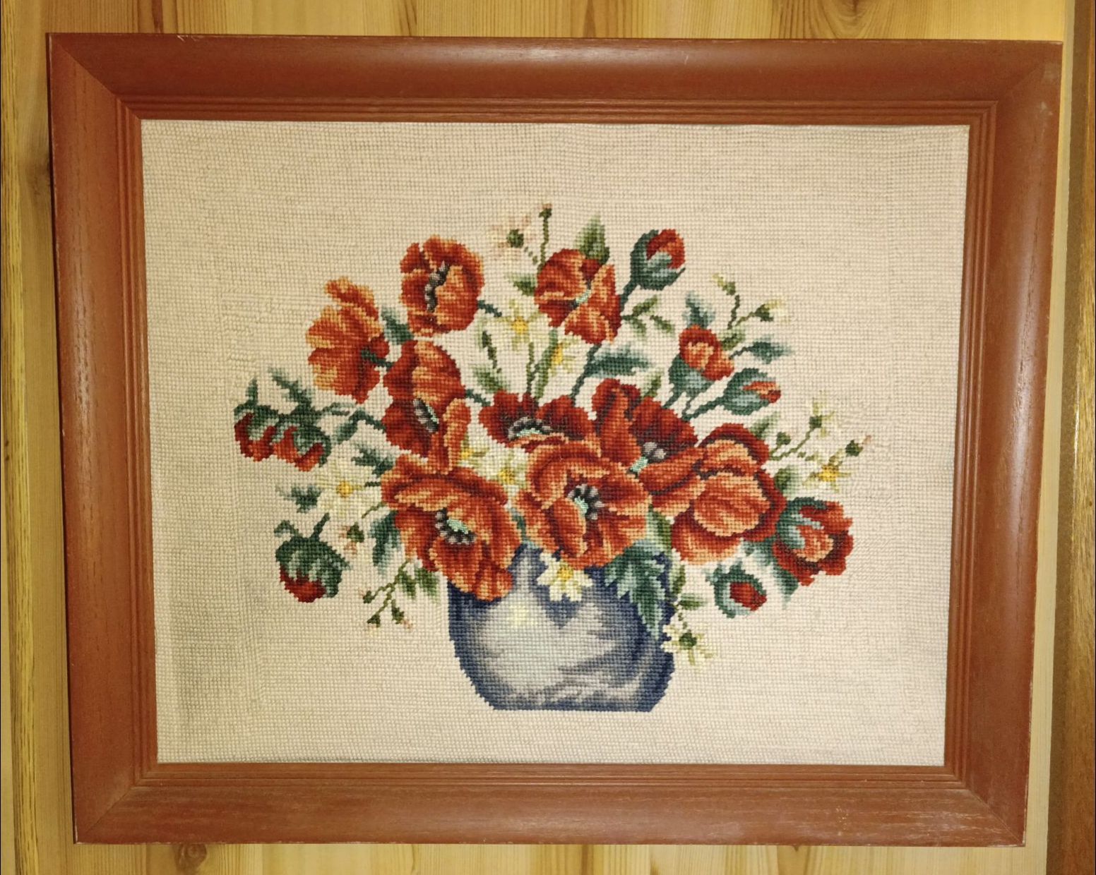 Vintage Cross Stitch Framed Tapestry Retro Crewel Picture Art 22" x 26"tall