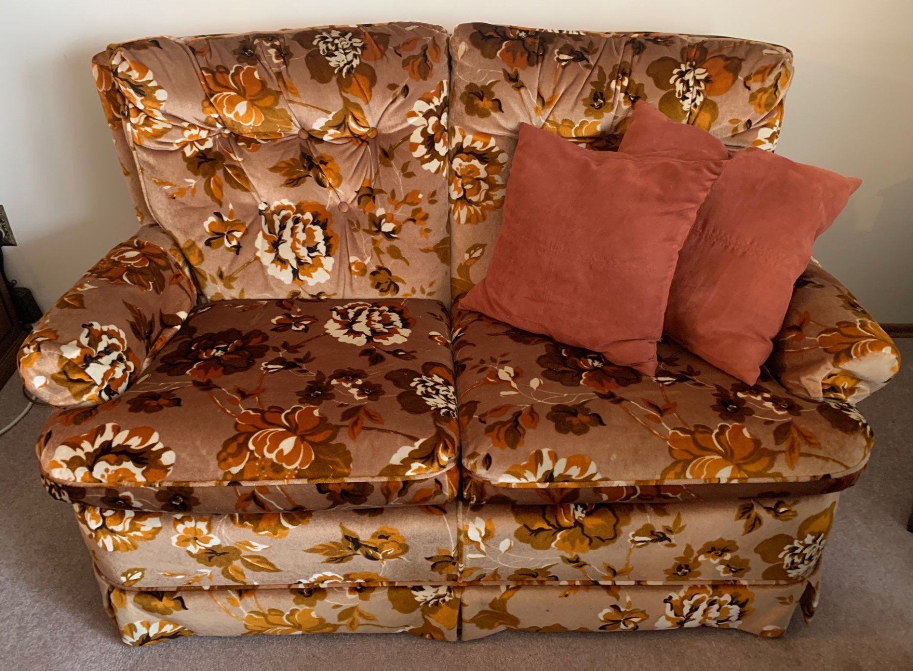 Vintage Crushed Velvet Love Seat & Accent Chair 53x34x33