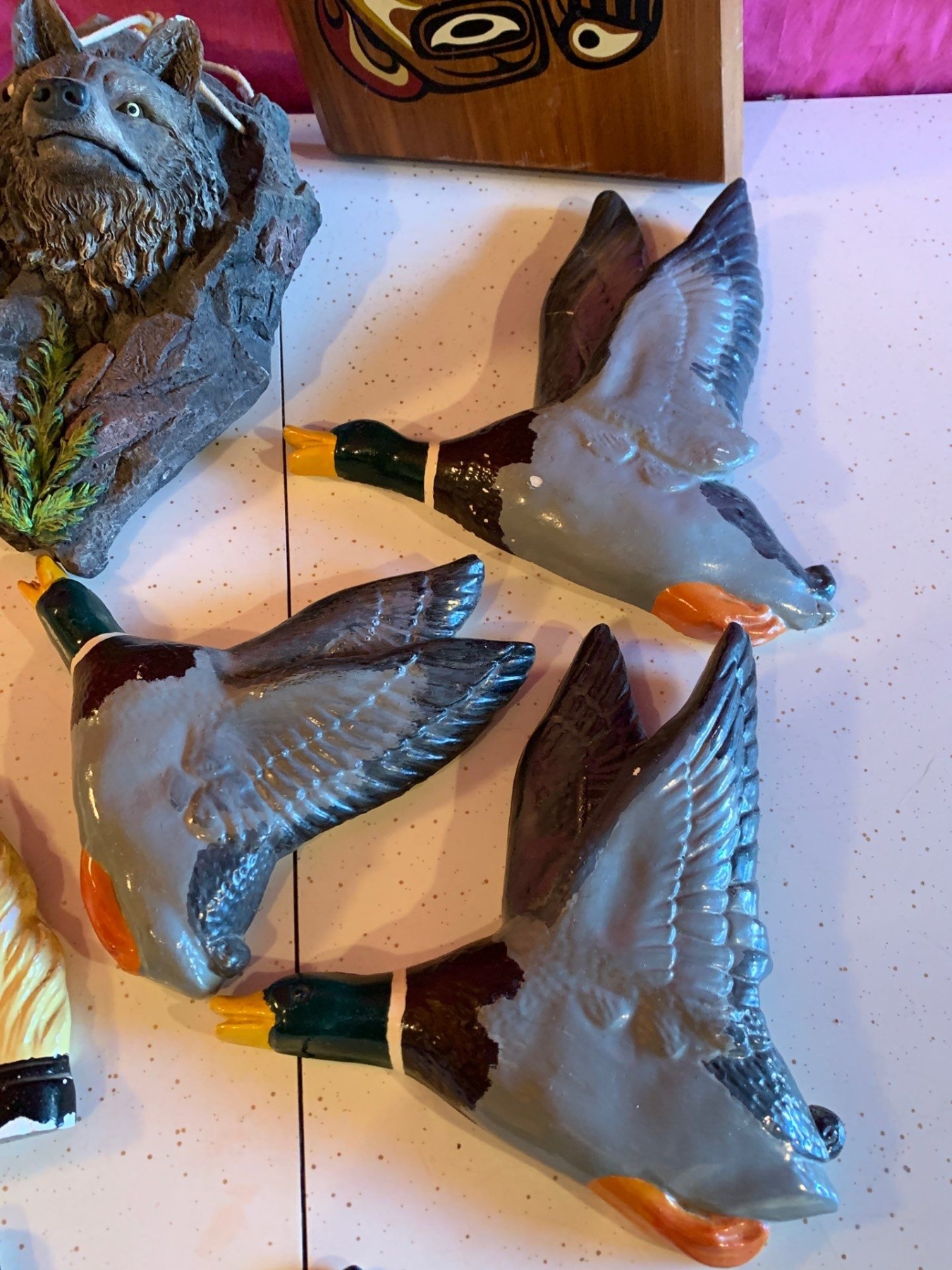 Vintage Decor Lot, Vintage Chalkwear, Native Art and Wildlife Decor