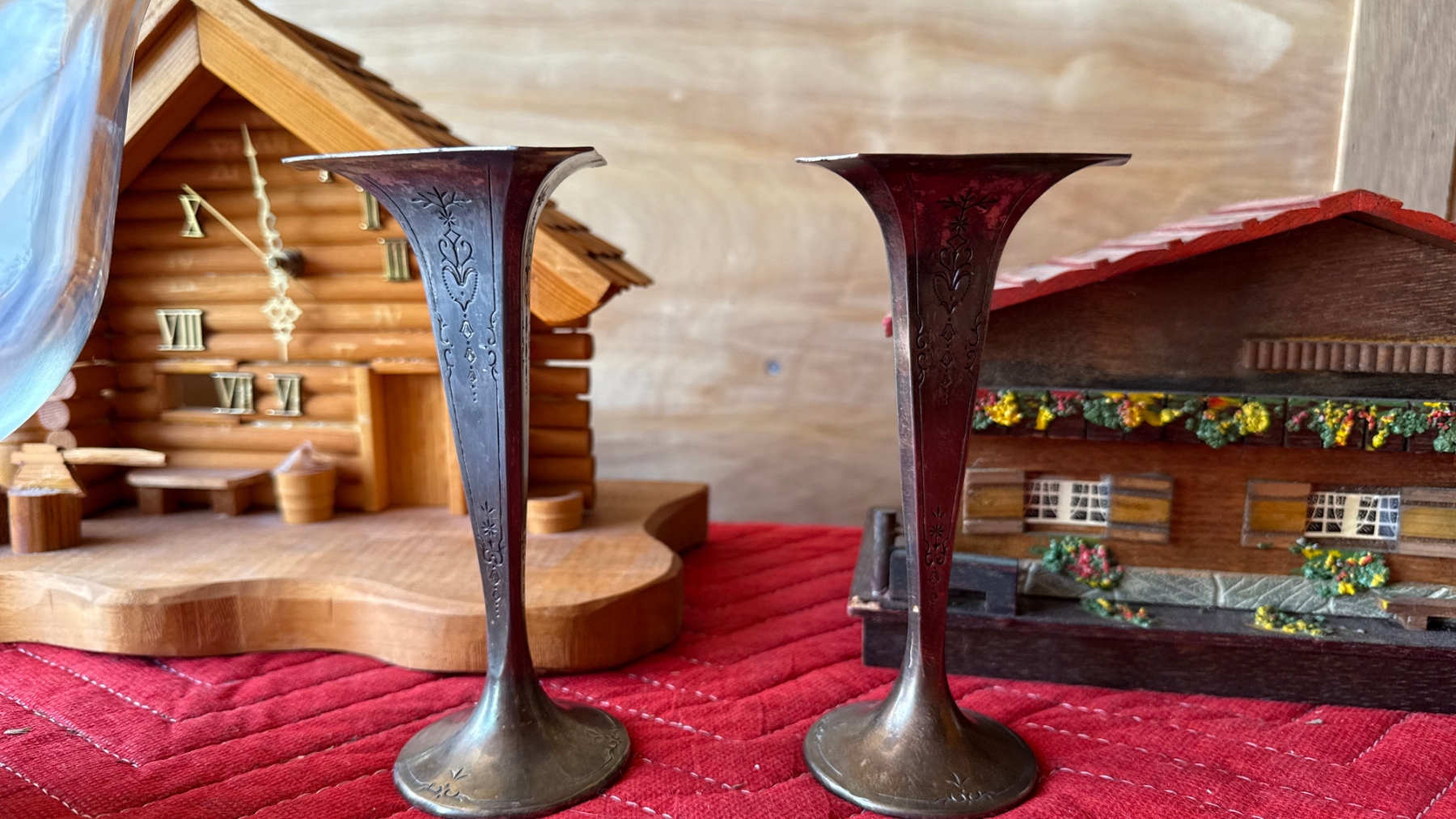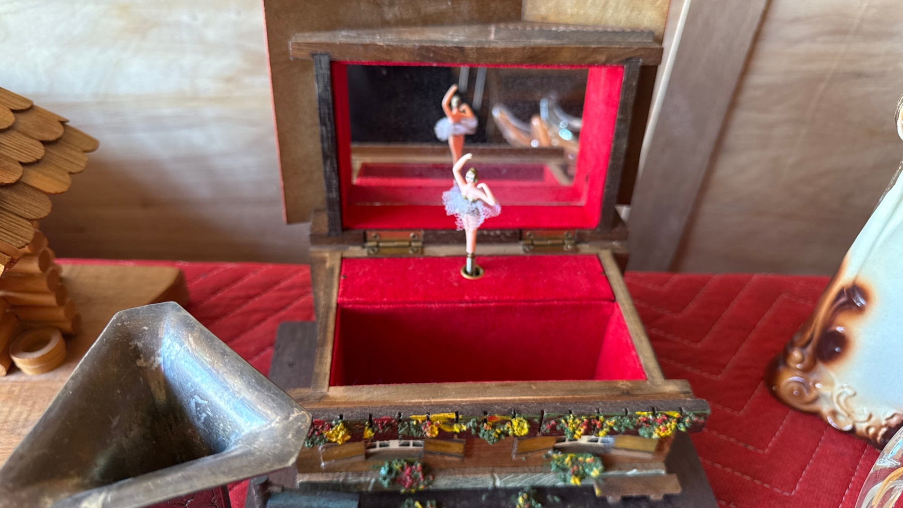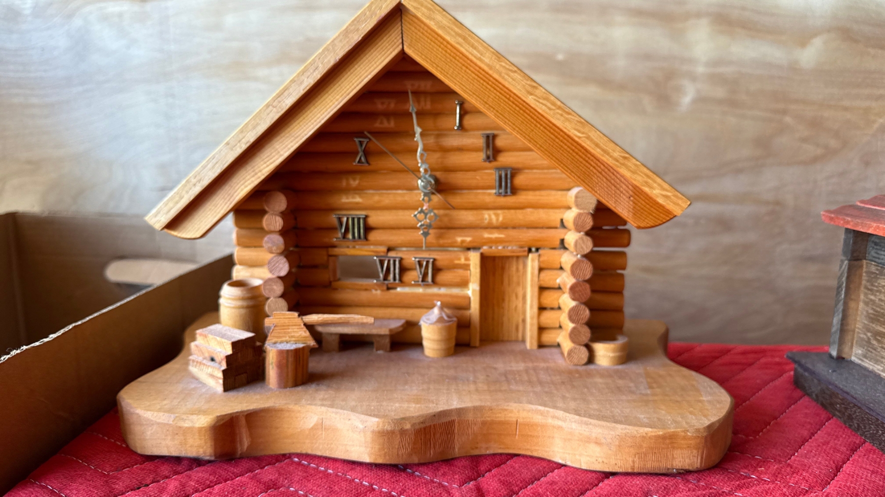 Vintage Decor with Music Box, Wooden Cabin Clock and More