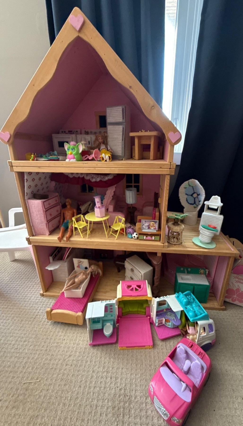 Vintage Doll Mansion w/ Contents 42x16x47