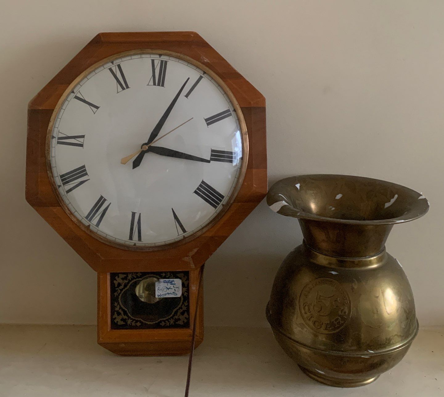 Vintage Electric Wall Clock 19T w/ Pendulum & Brass Urn