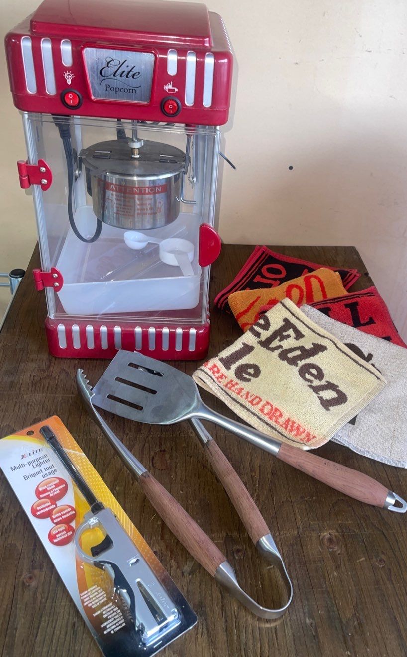 Vintage Elite Popcorn Maker w/ Bar Towels BBQ Tools & More