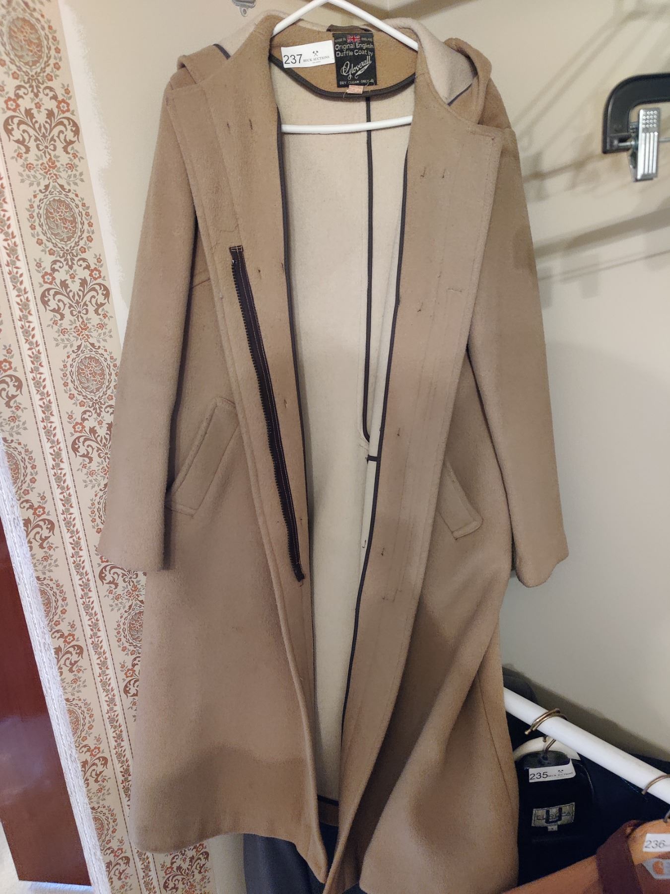 "Gloverall" brand Original English Duffle, Size US16. 80% wool, 10% nylon, 5% acrylic, 5% polyester