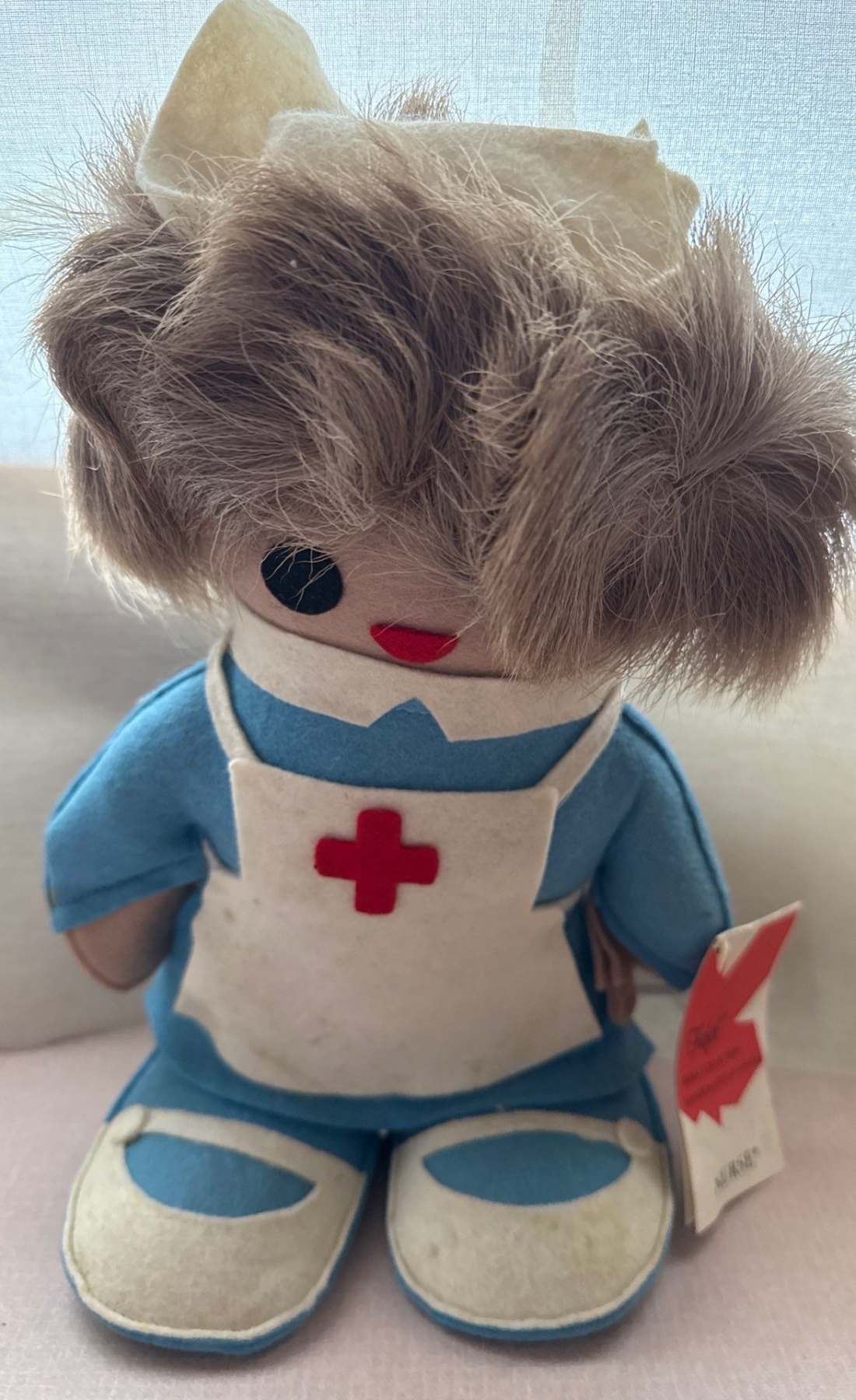 Vintage FUFEL Doll 'Nurse' Handcrafted w/ Genuine Fur In Canada