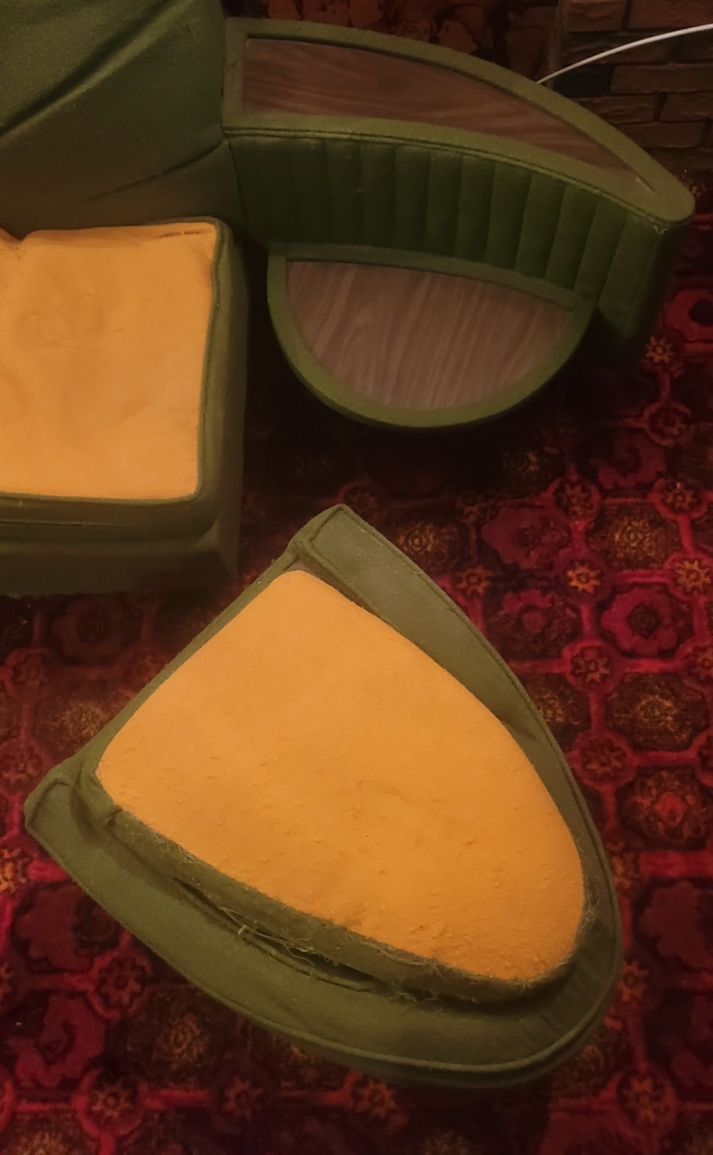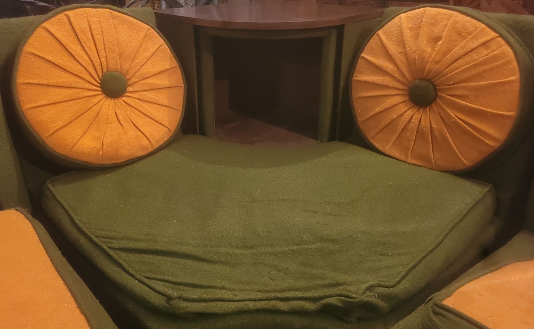 Vintage Fabric Couch w/ Pillows (5 Pc, Moves Into Small Tables on Ends) - 115x115W, 31D, 33T)