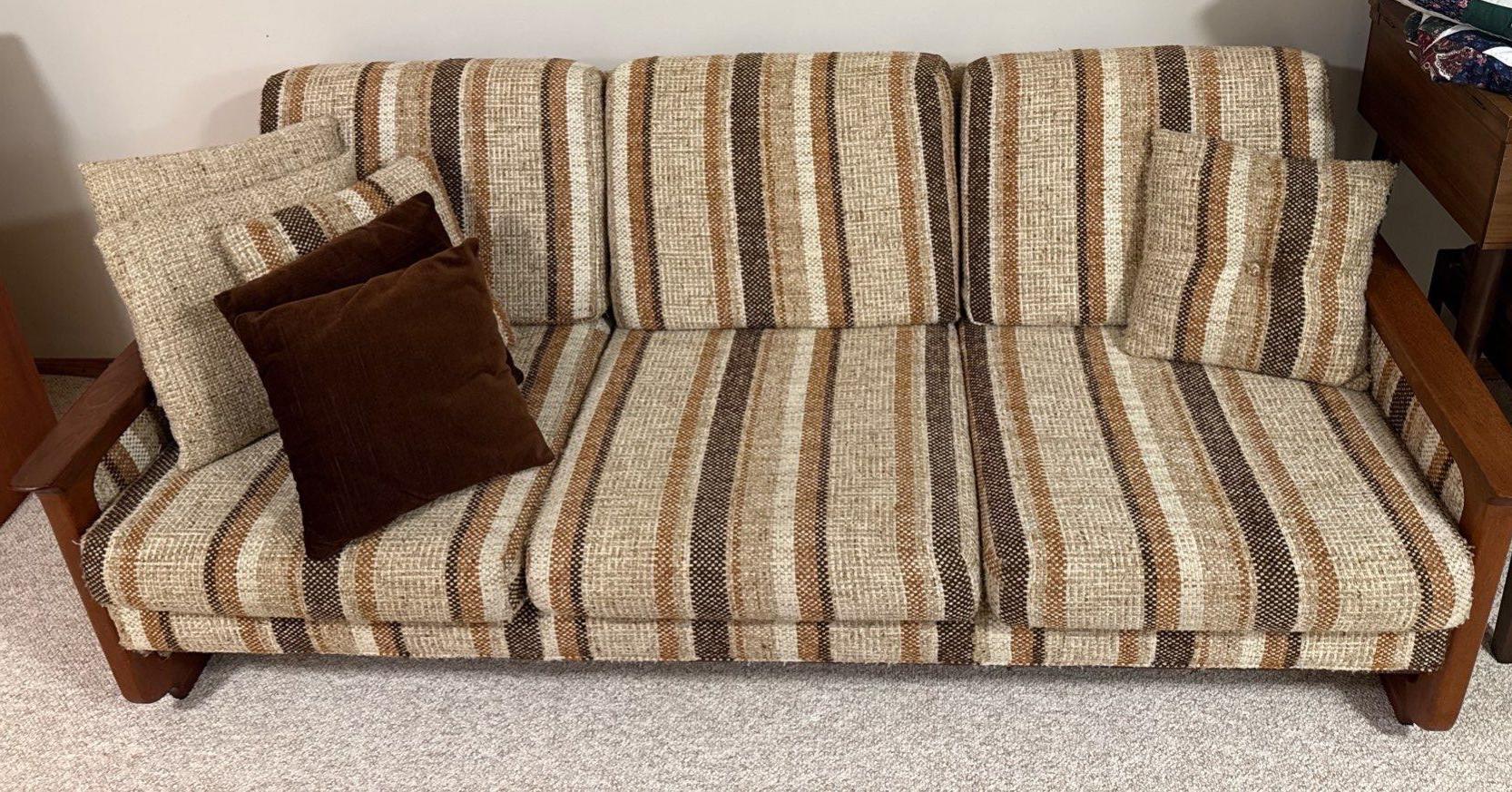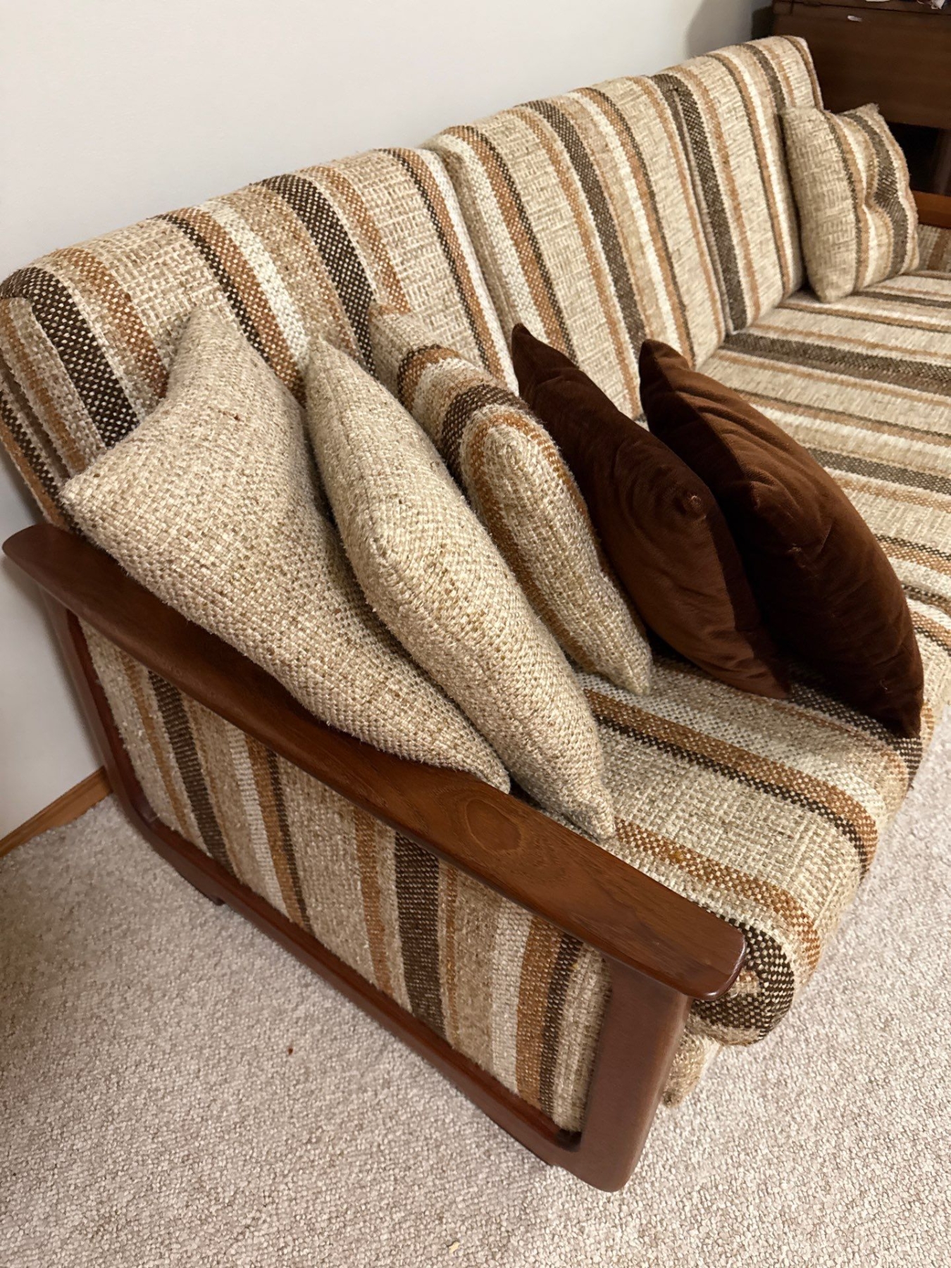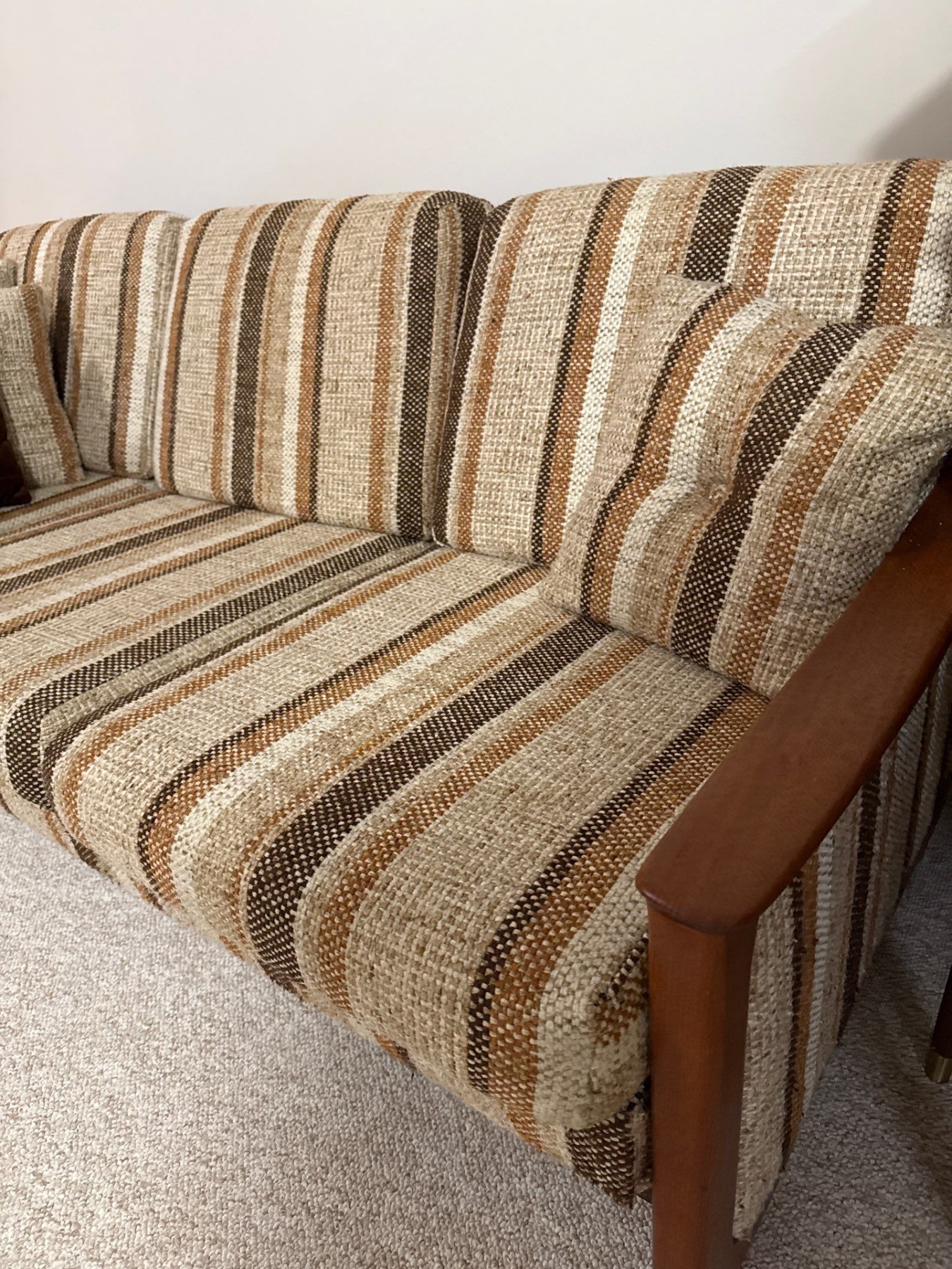 Vintage Fabric Couch w/ Solid Wood - 71W, 31D, 28T