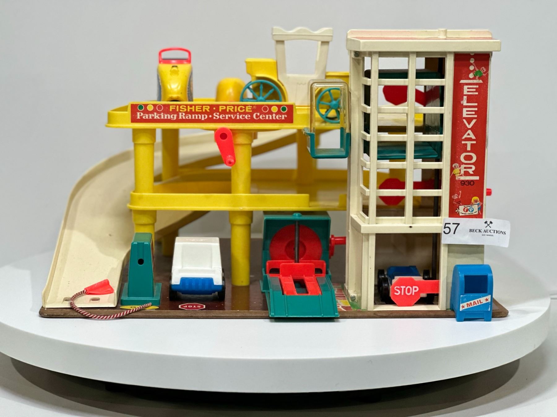 Includes: Fisher Price Mail truck, mailbox, carriage, and skii-mobile