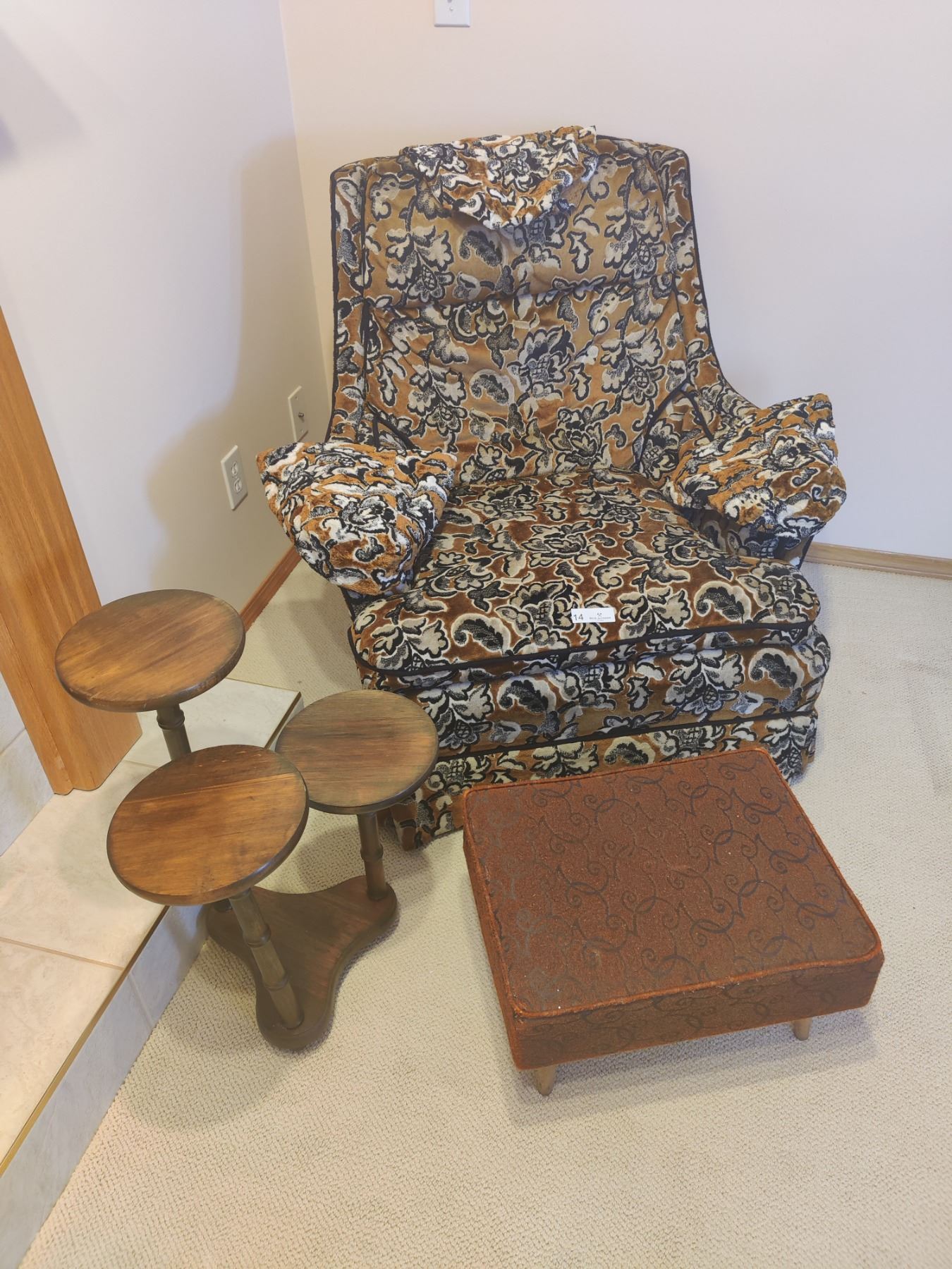 Vintage Floral Pattern Chair with Ottoman & Plant Stand
