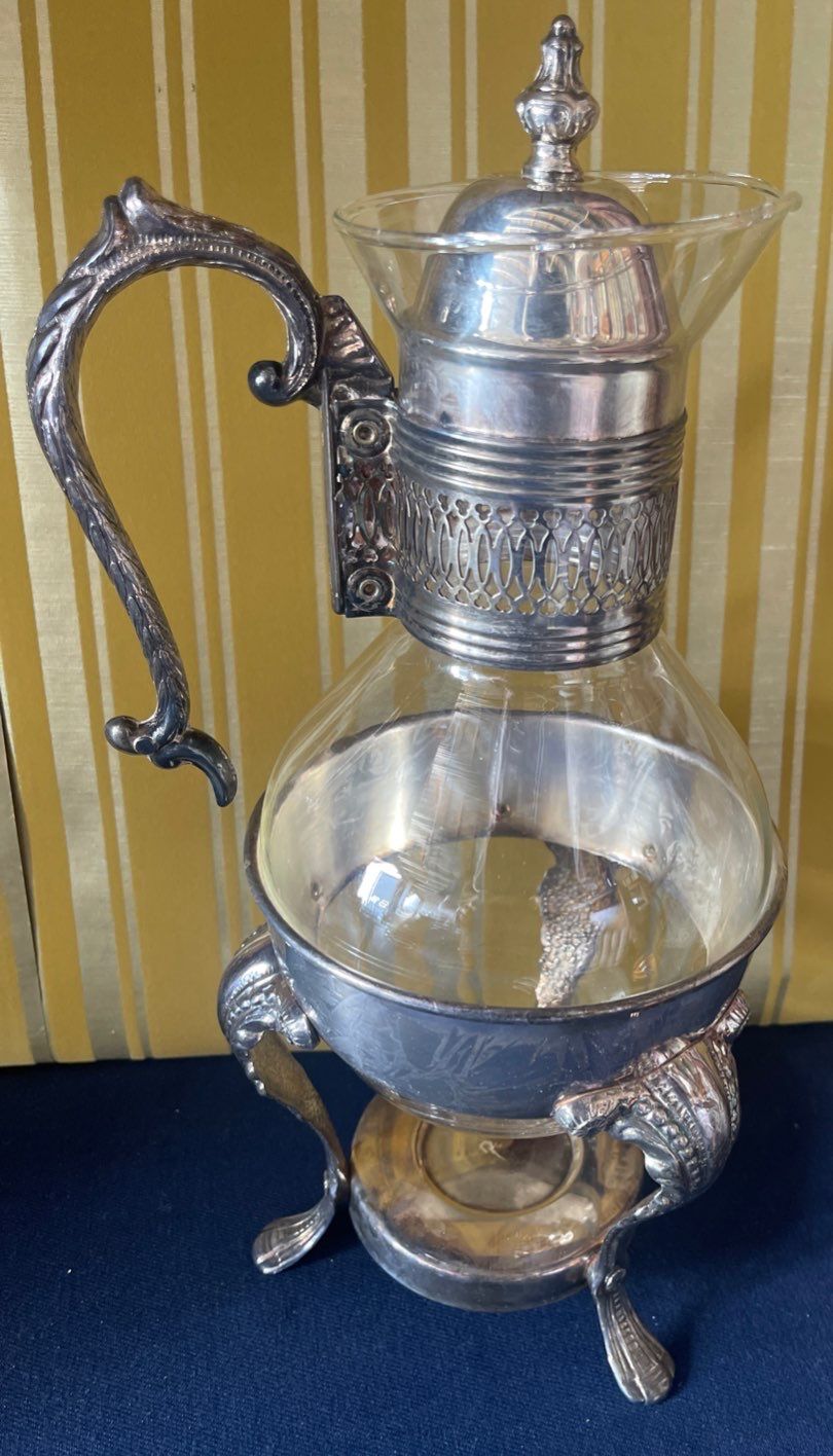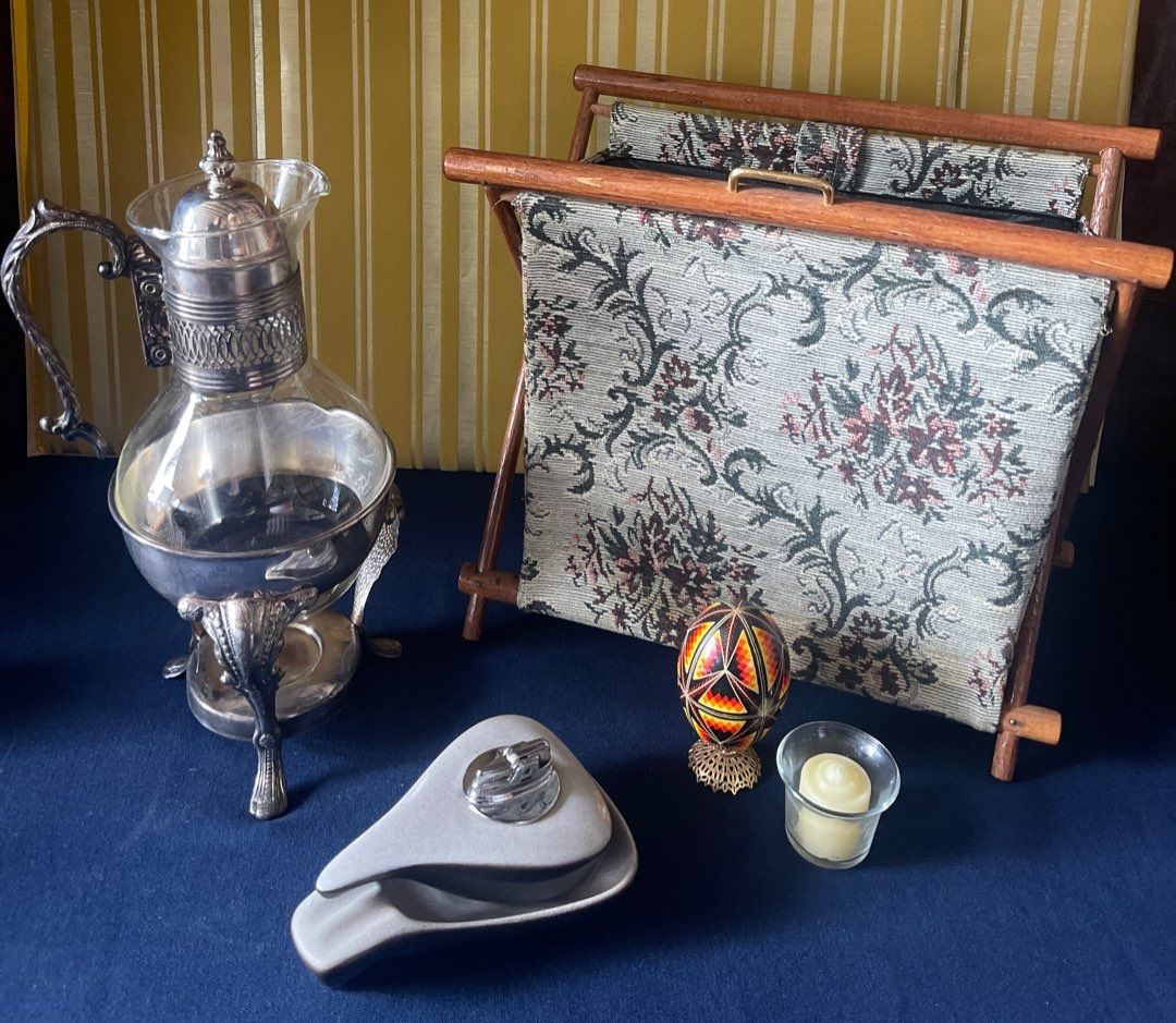 Vintage Folding Knitting Bag w/ Lighter & Silver Plated Coffee Carafe