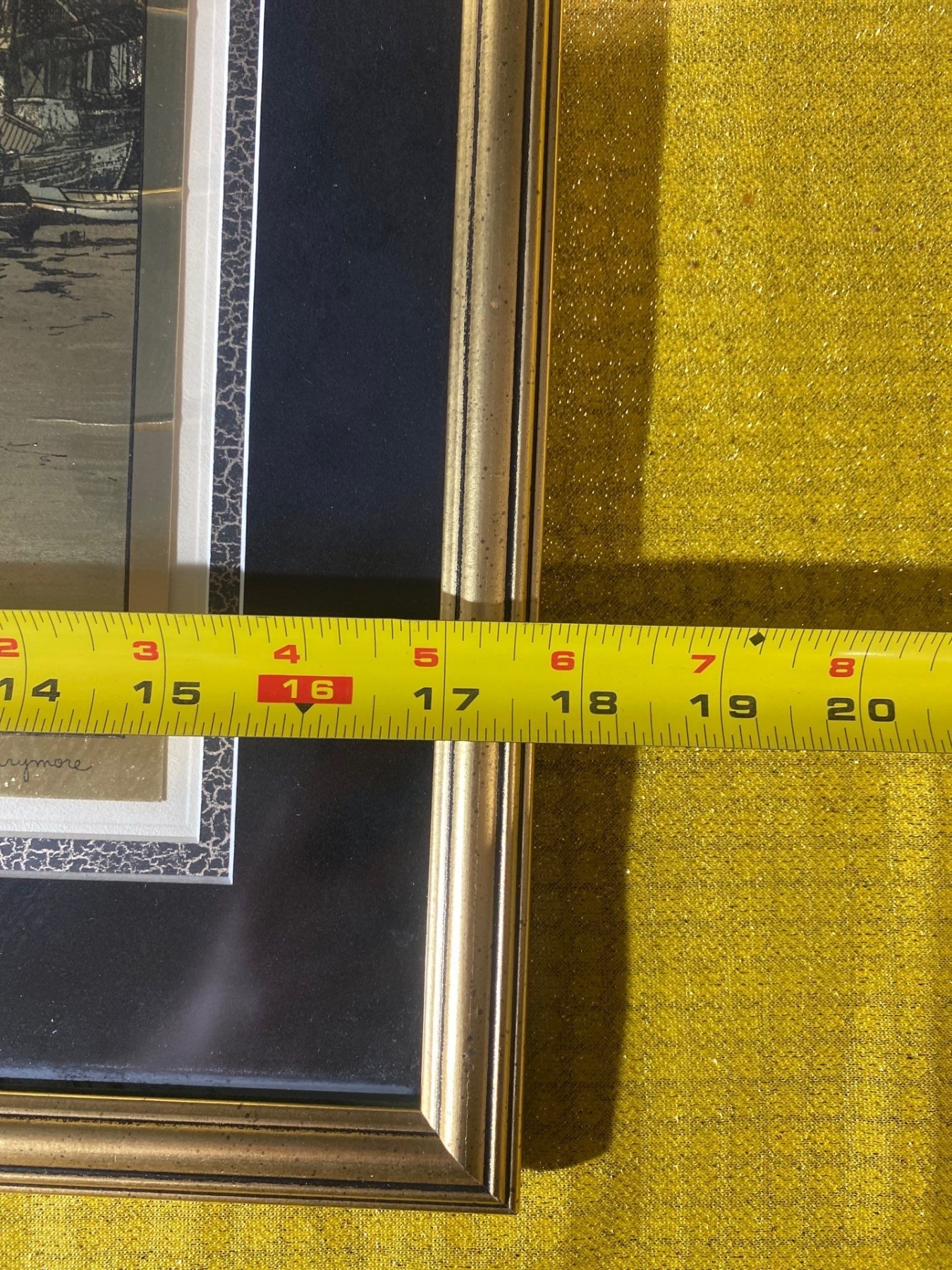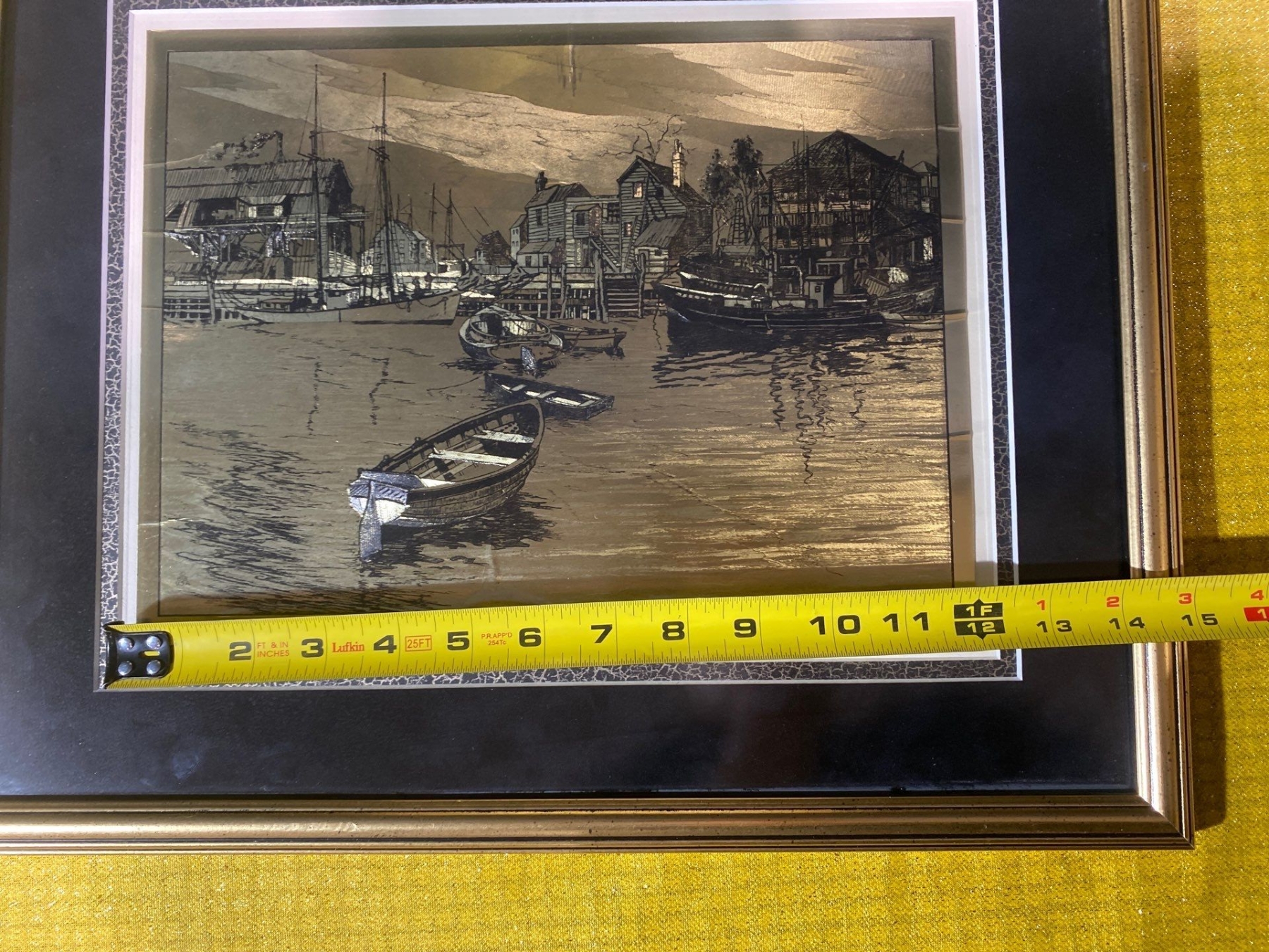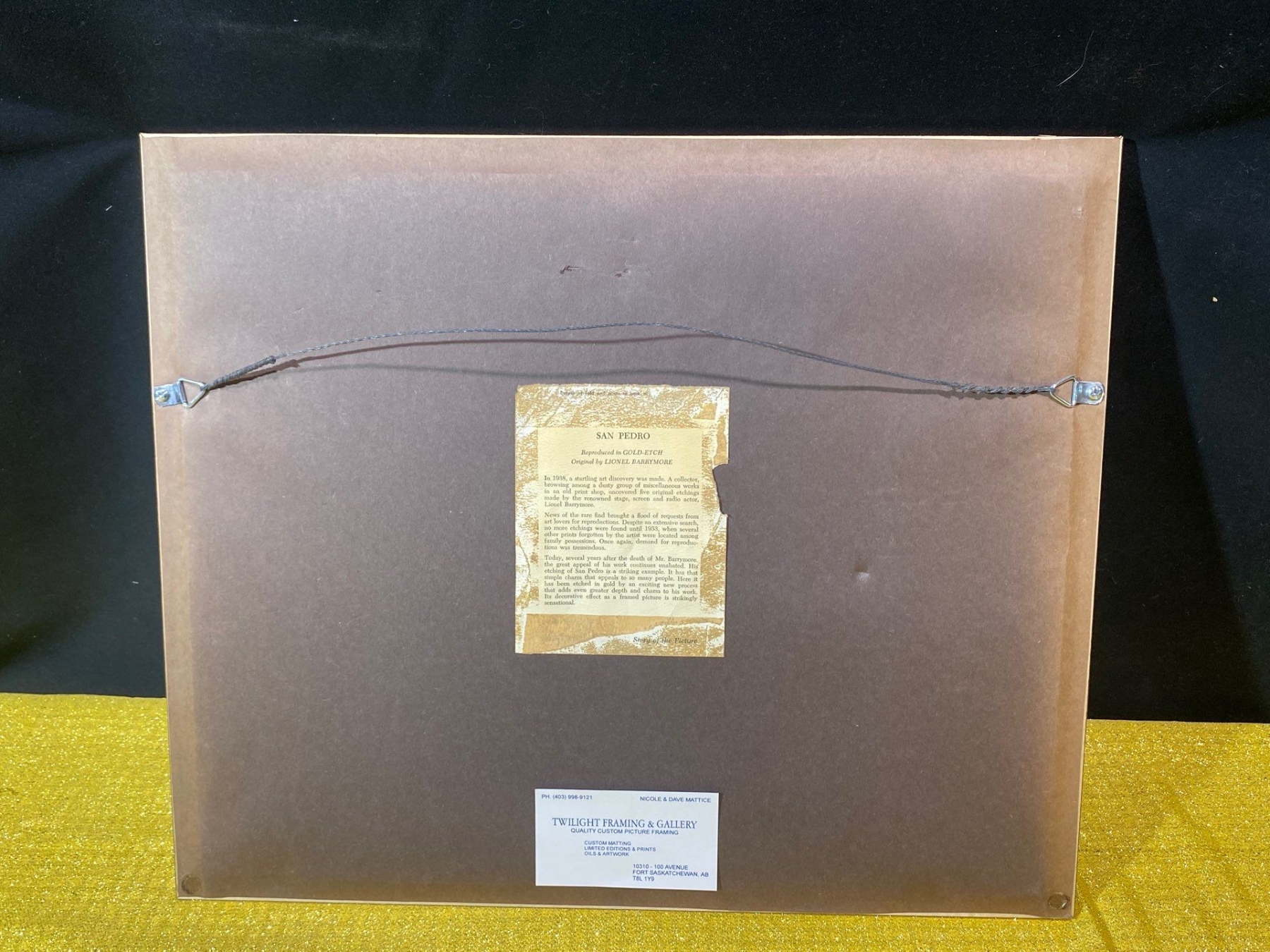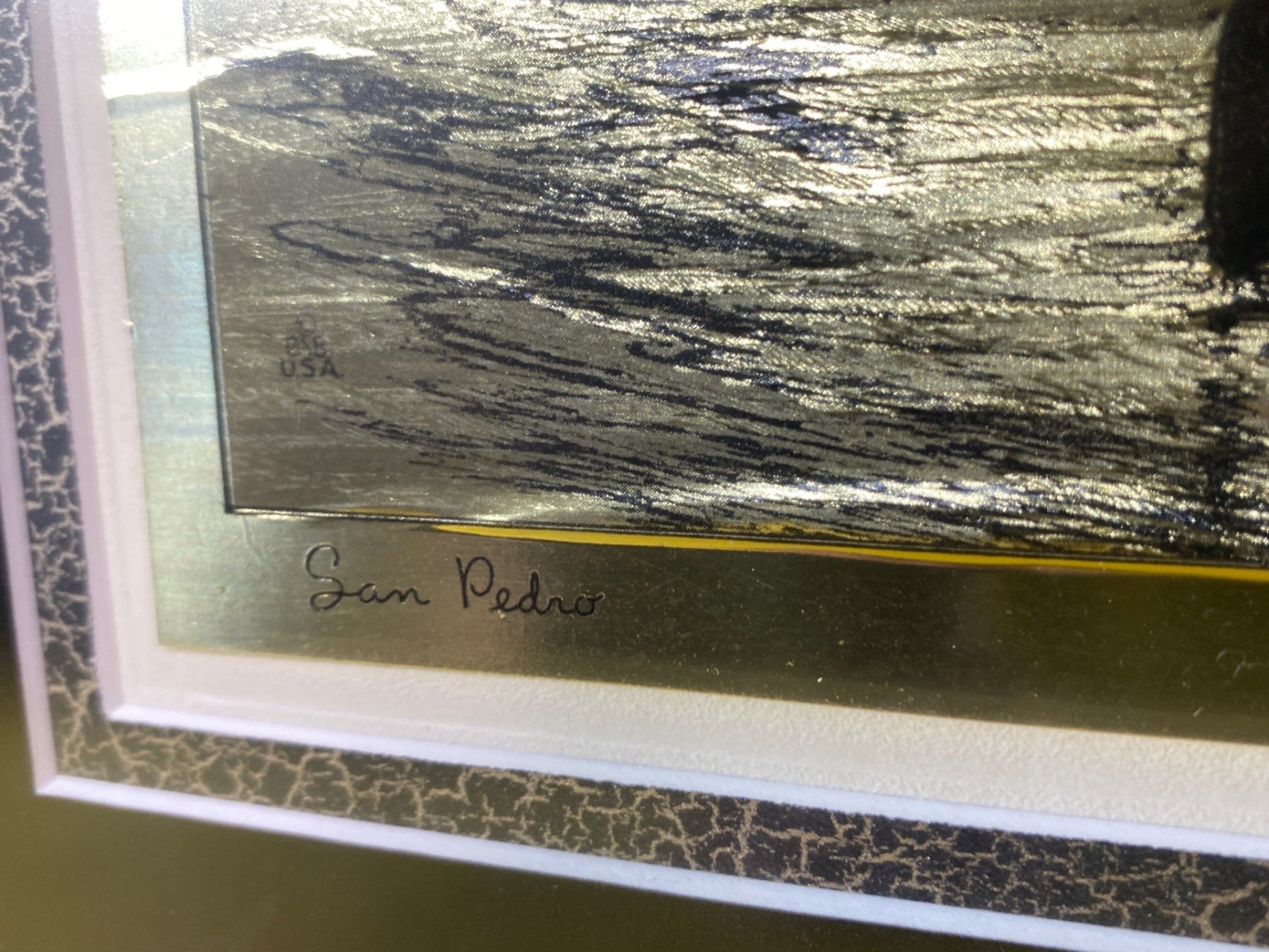 This exquisite gold foil etching, “San Pedro" by Lionel Barrymore, showcases the artist’s masterful line work and delicate detailing. Rendered in shimmering gold on a contrasting background, the etching captures the serene beauty and subtle textures of the coastal landscape. A rare and elegant example of Barrymore’s artistry, ideal for collectors of fine prints and distinguished decorative works.