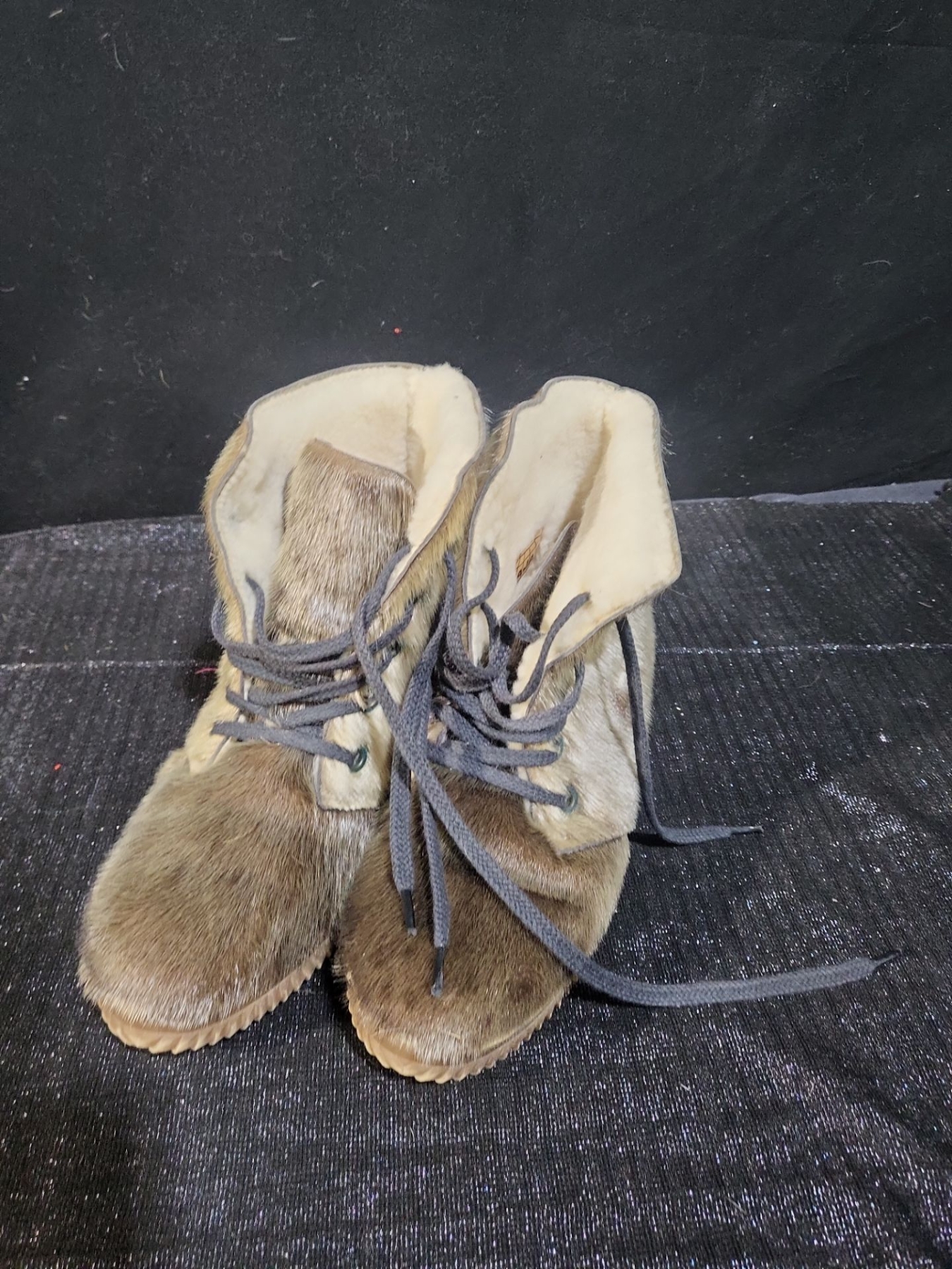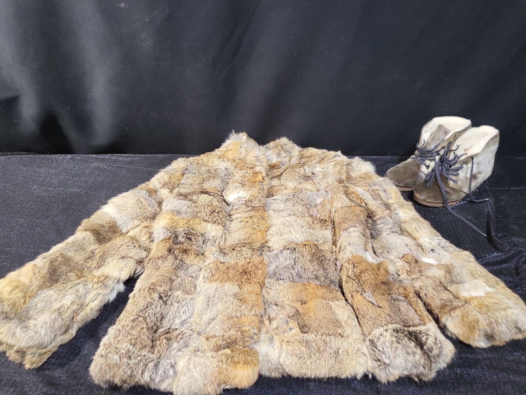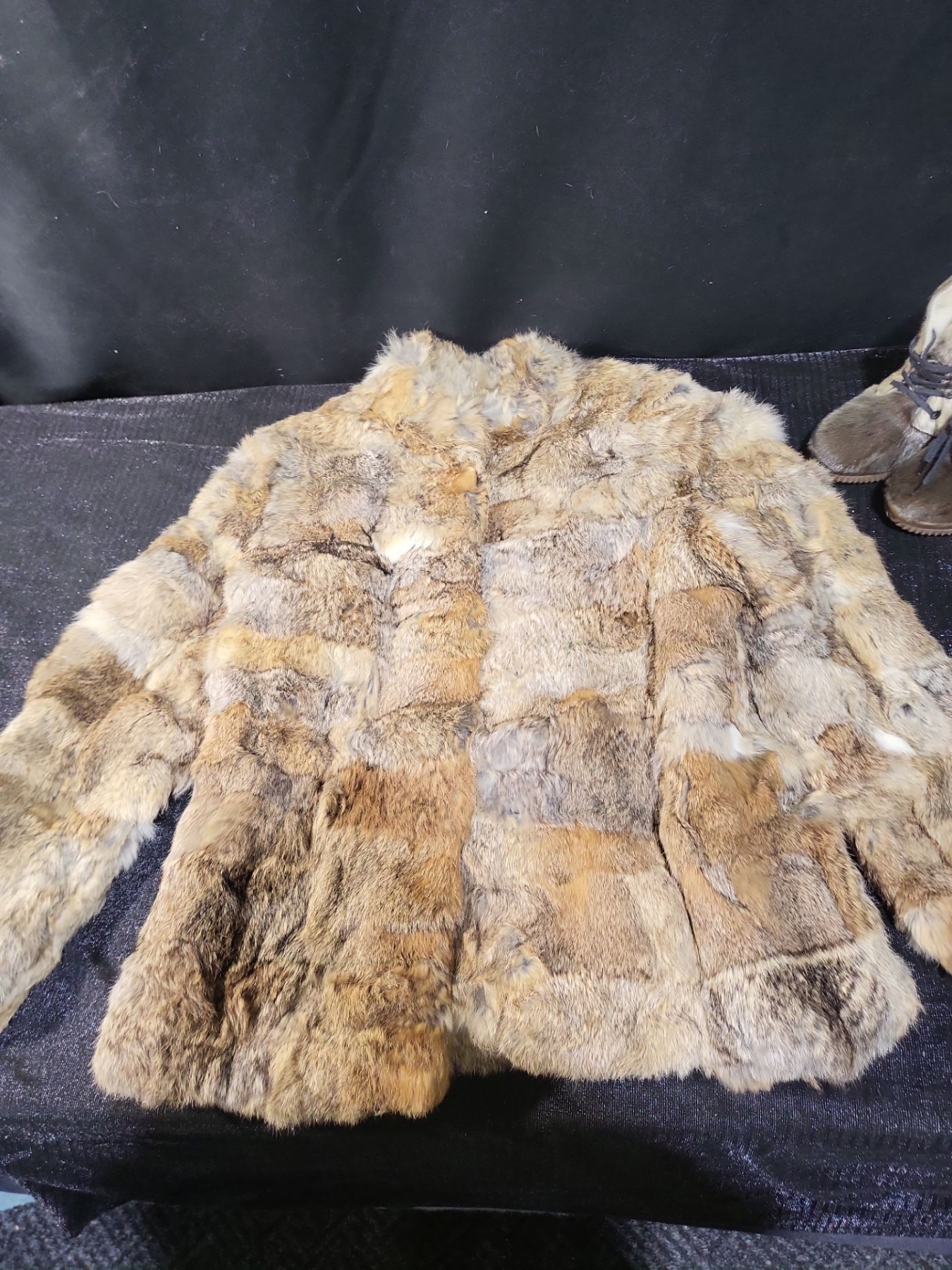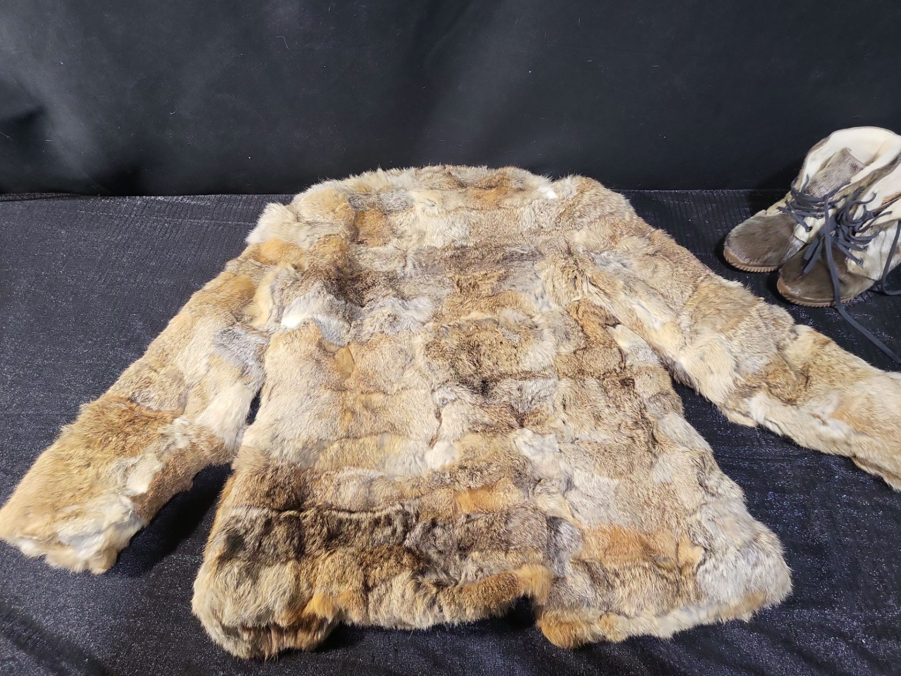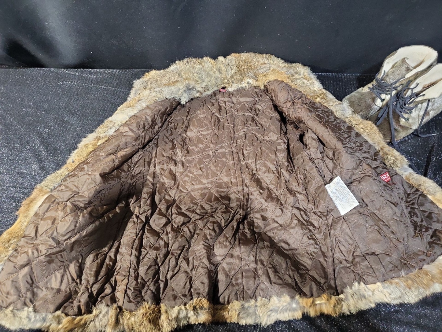 Fur coat and fur boots are up grabs with this lot. Size M for the jacket and the shoes are made by "Pajar" Genuine Sherling Lining fur boots.