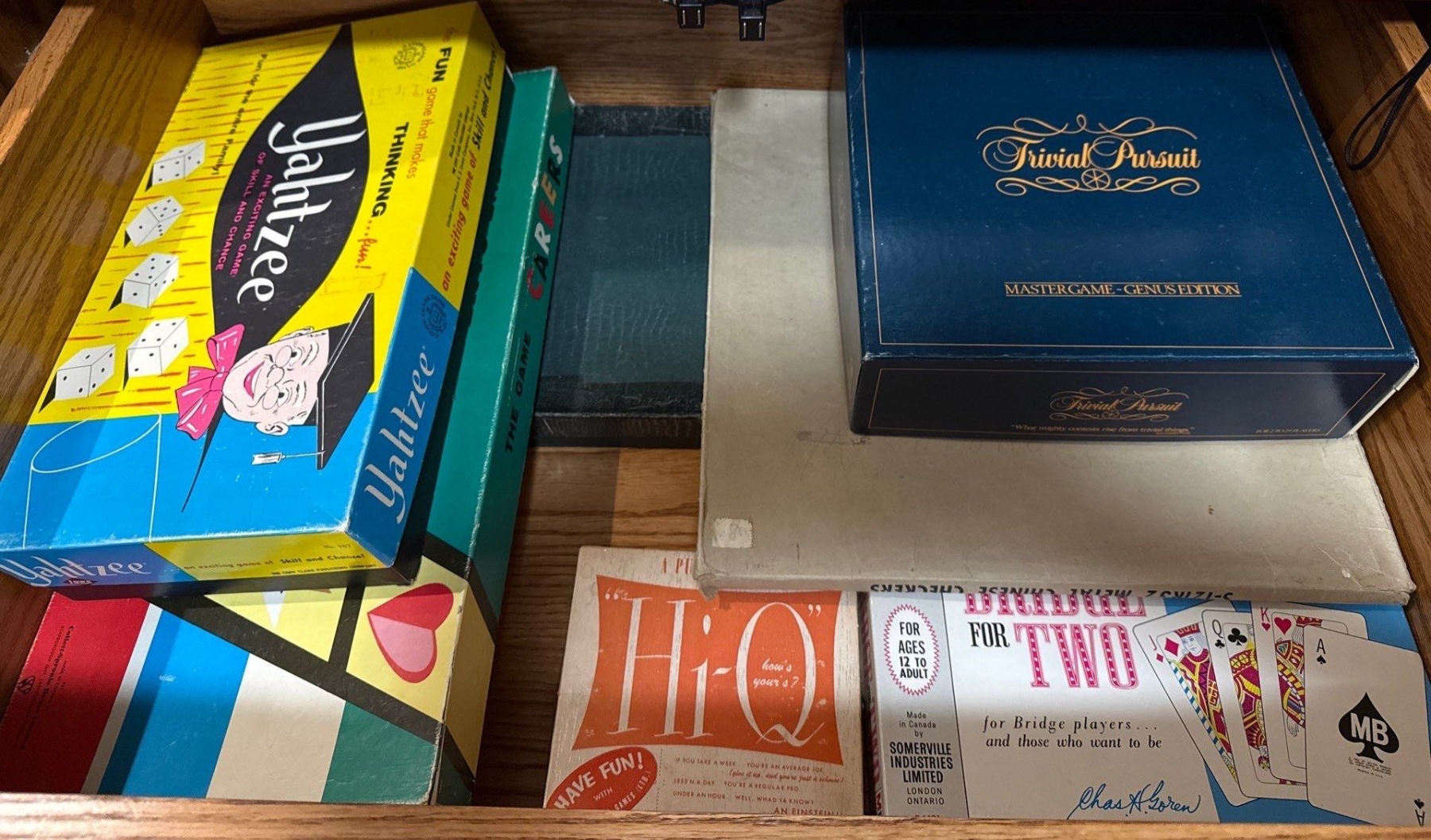 Vintage Game Collection - Yahtzee, Trivial Pursuit, Hi-Q, Bridge, Rolo Puzz, Molecular Vision