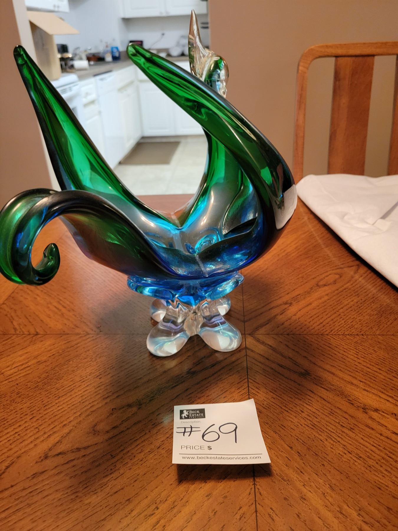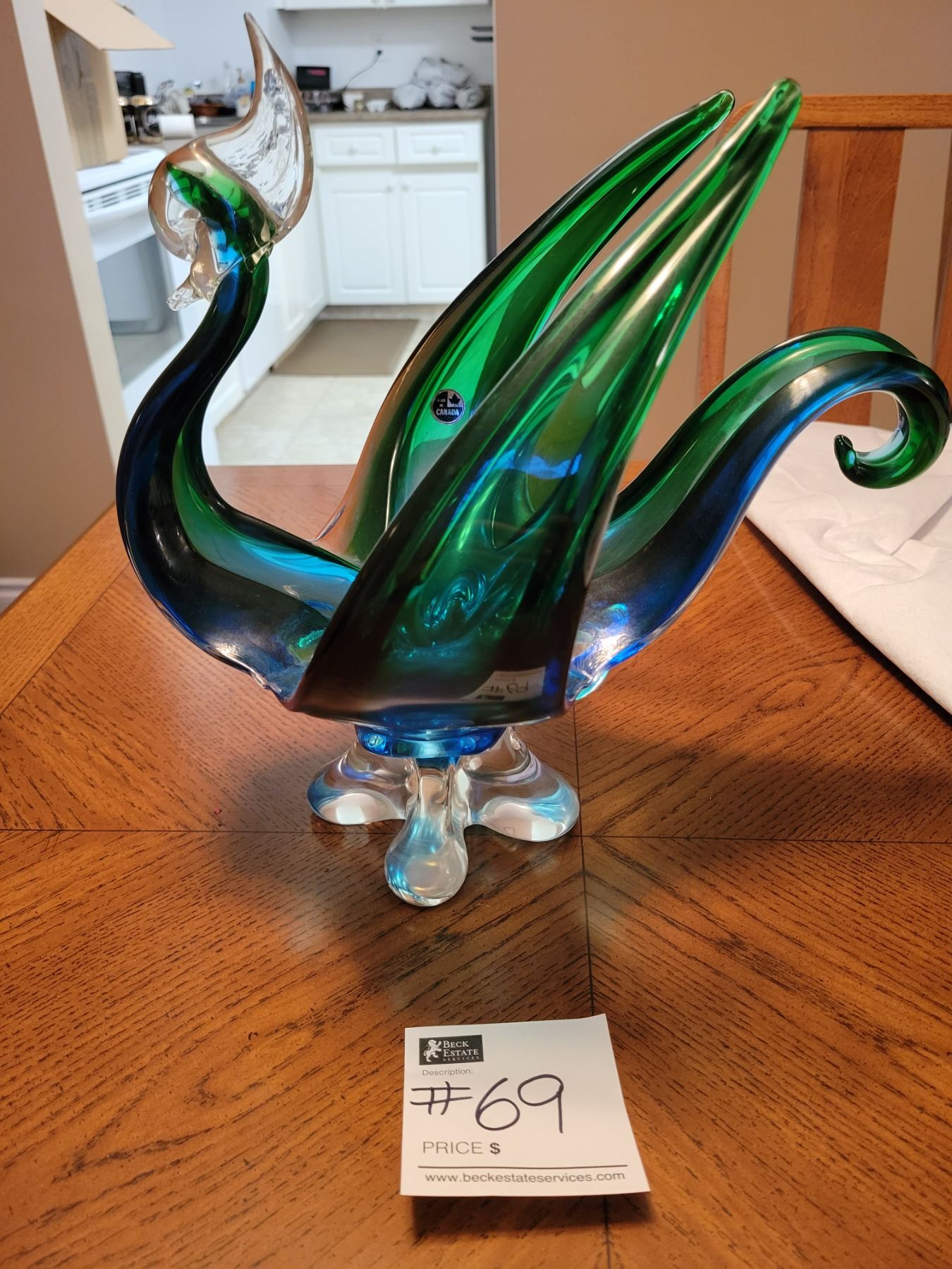 Vintage Green Lorraine Art Glass Swan - Made in Canada