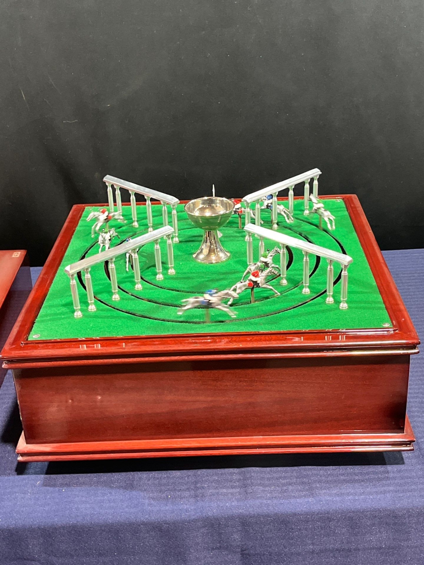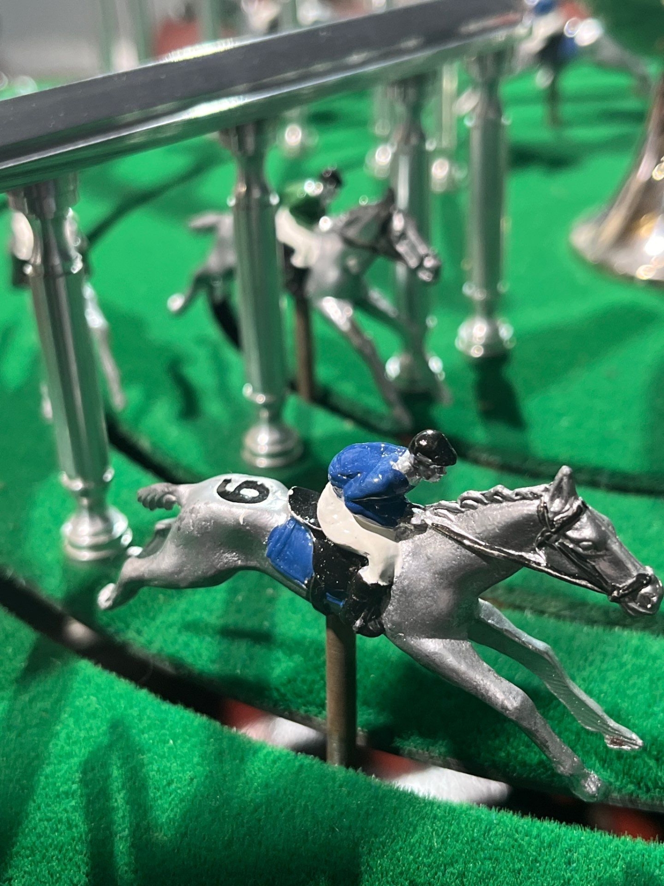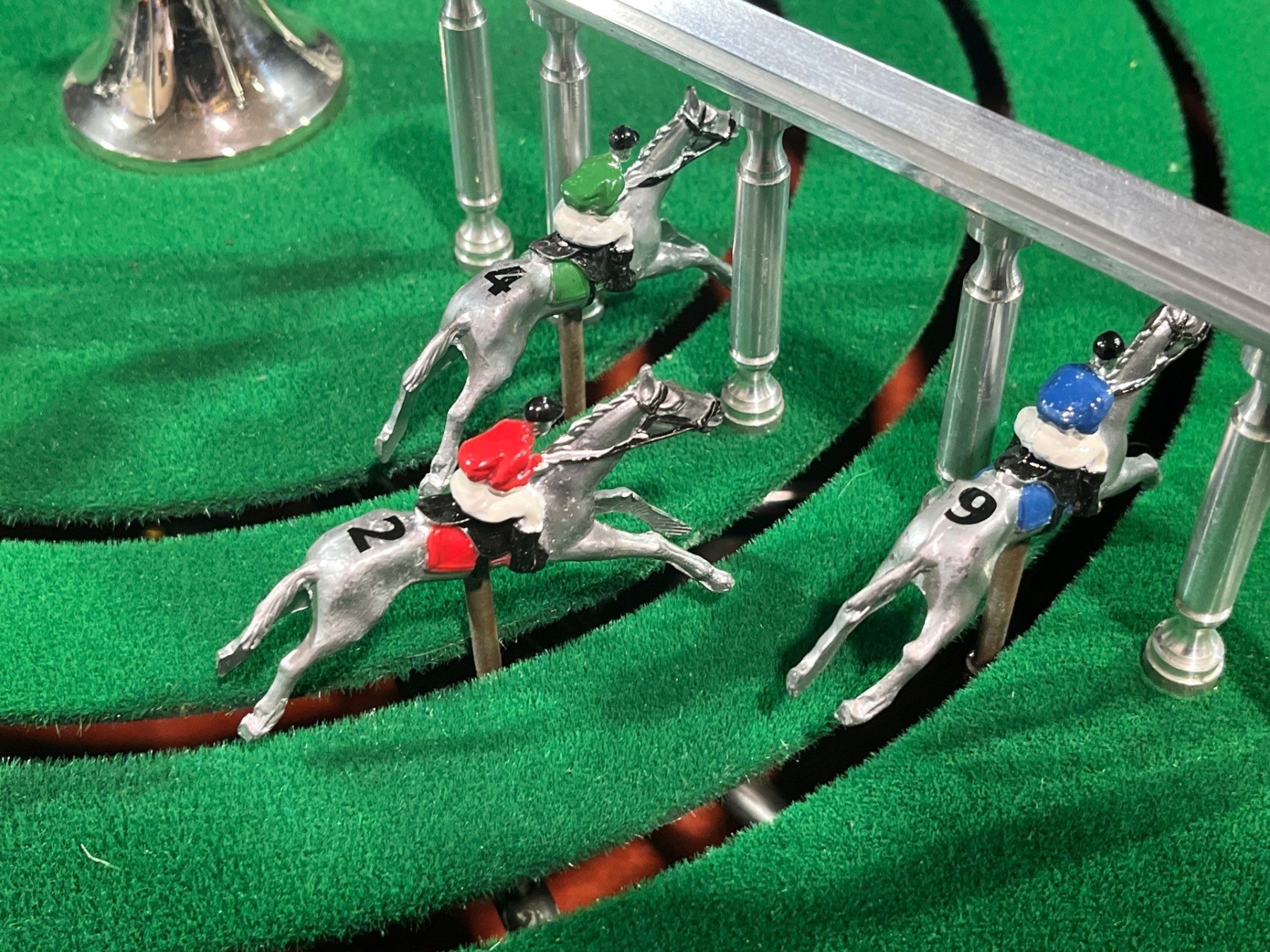 Use the lever to spin make the horses run around the track