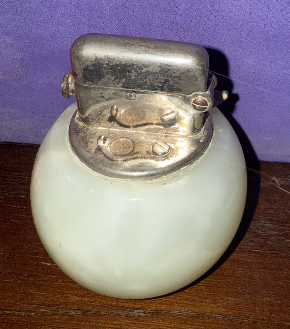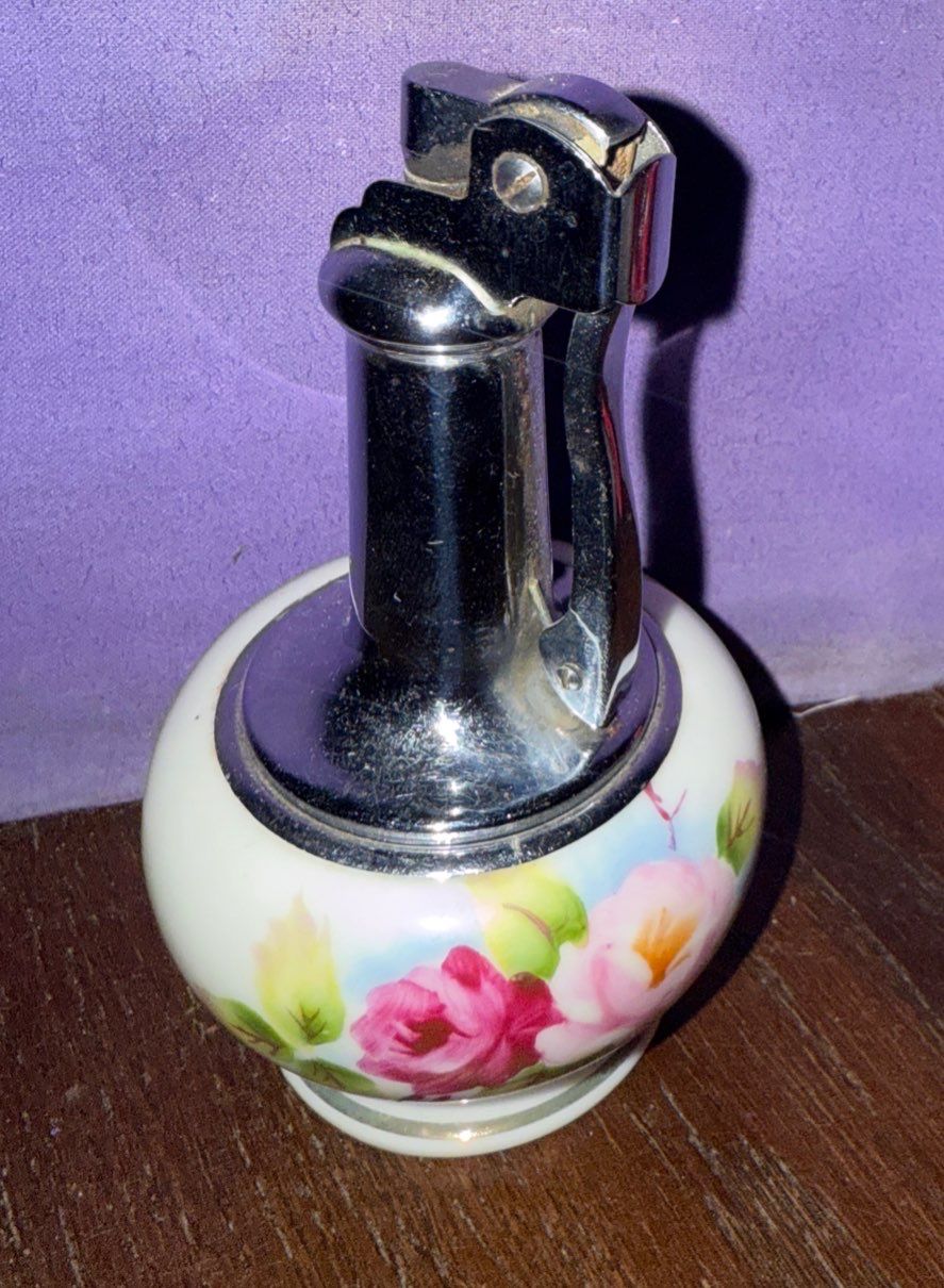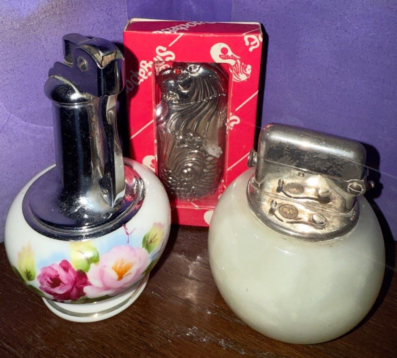 Vintage Hand Painted Porcelain Table Lighter, Opaline Glass Lighter & Singapore Lighter
