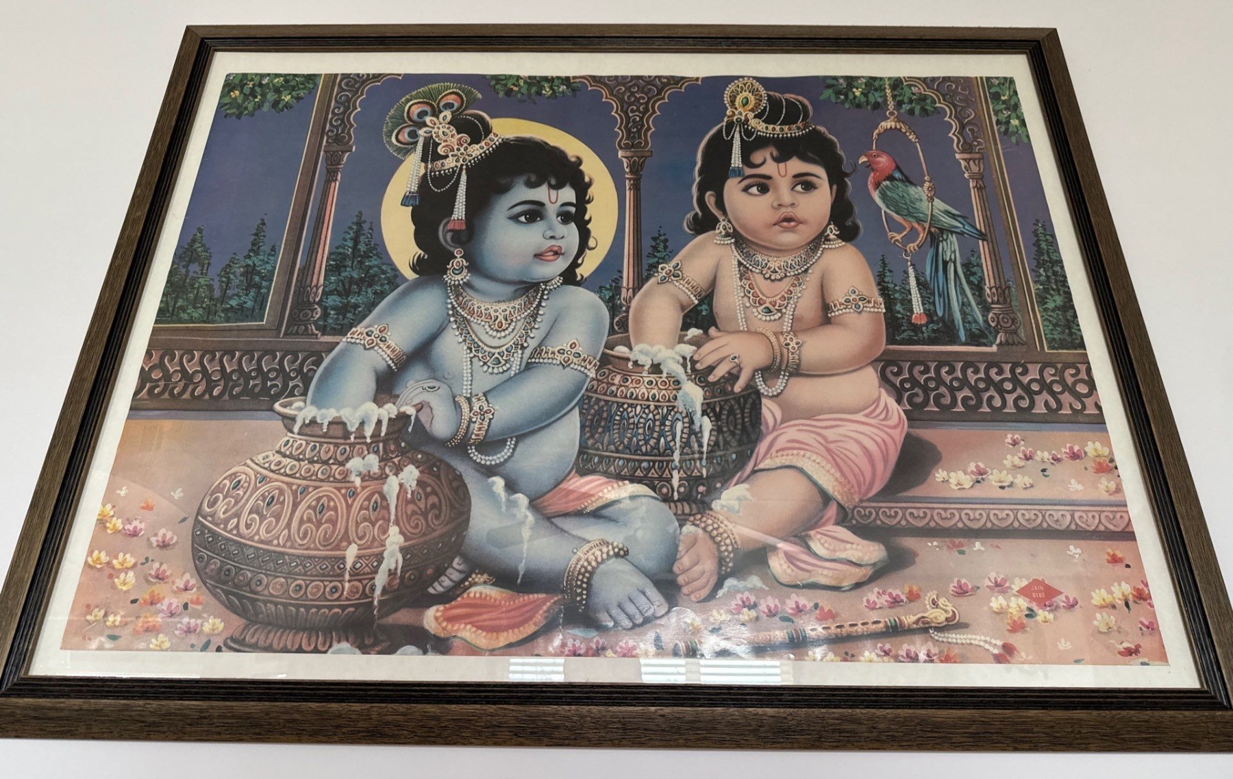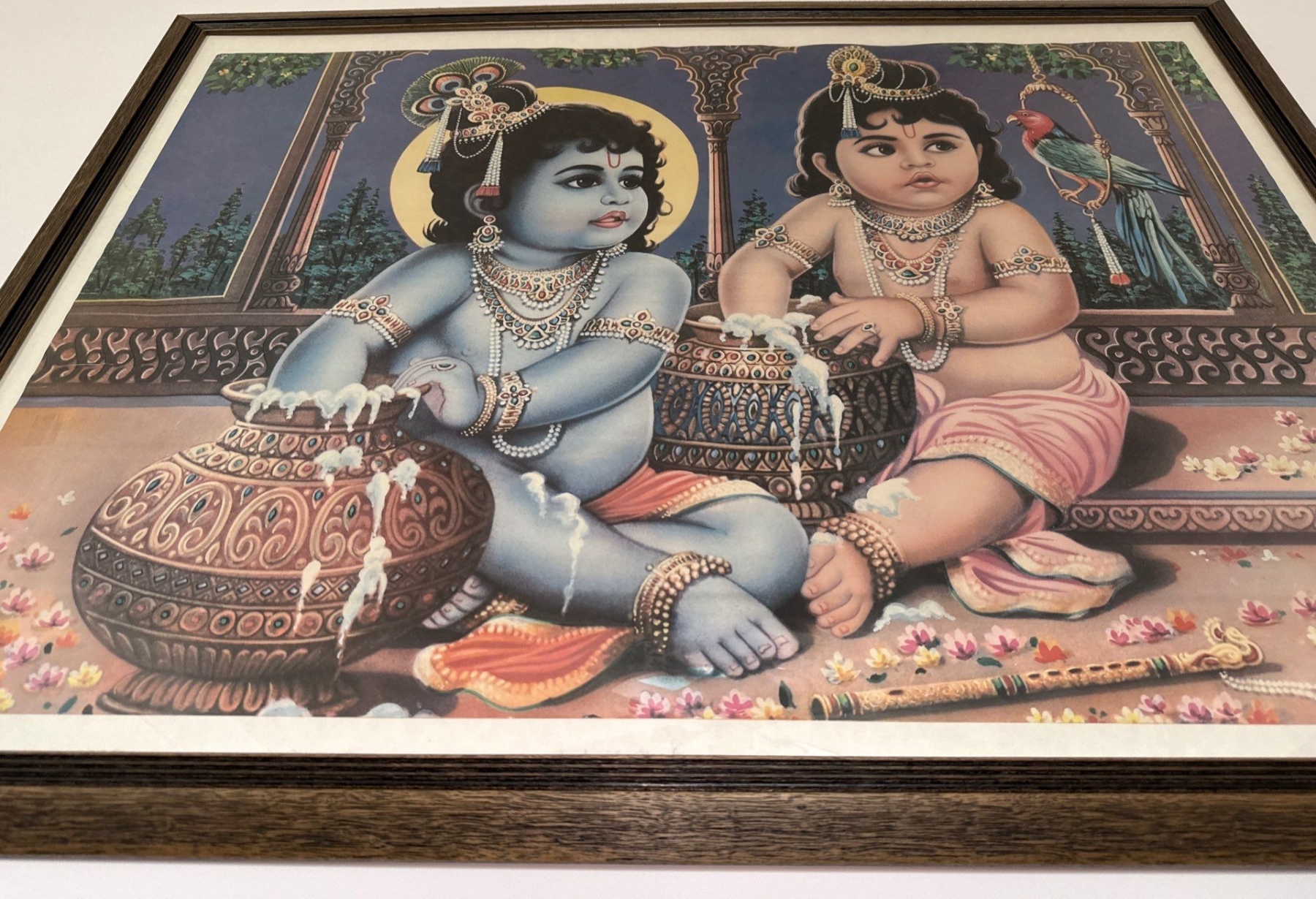Vintage Hindu Religious Print - Lord Baby Krishna & Balaram 43x30
