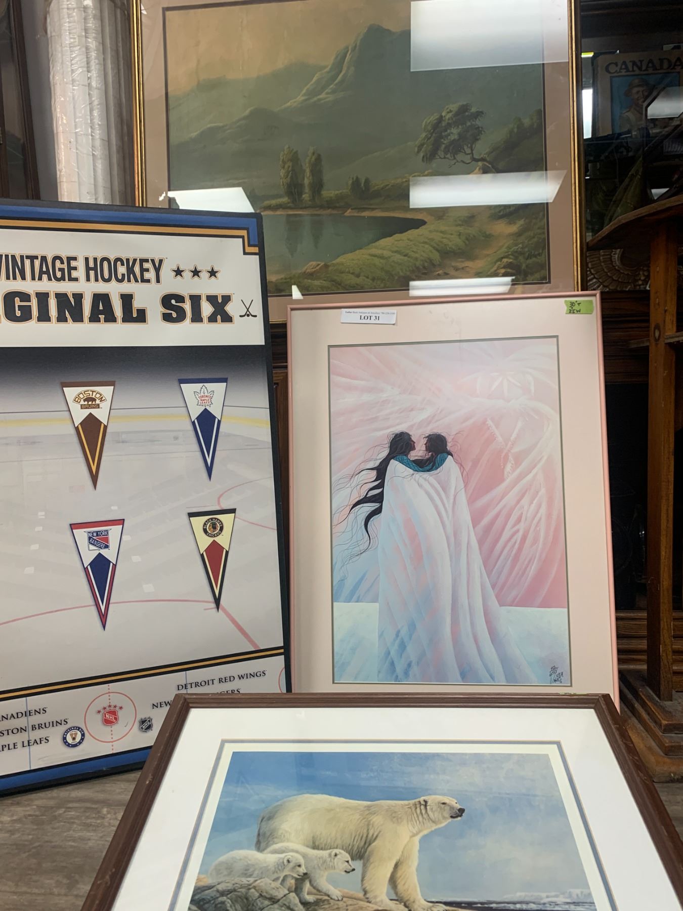 Vintage Hockey Original Six Poster, Polar Bear Print, Aboriginal Whimsical Print, Landscape Print by J. Morel,