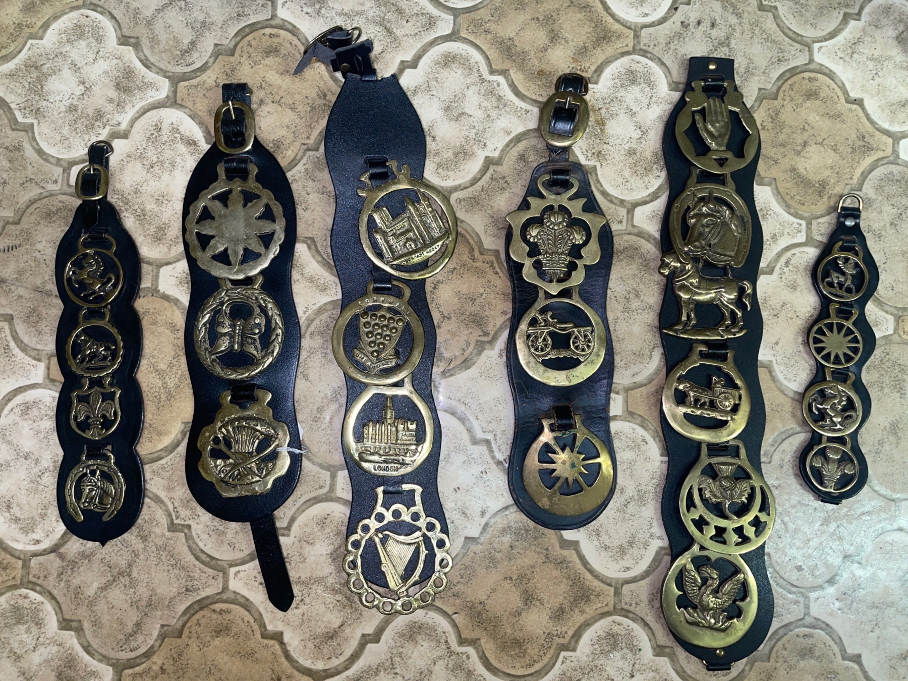 Vintage Horse Leather Medallion Straps - Bridle (5 Count)