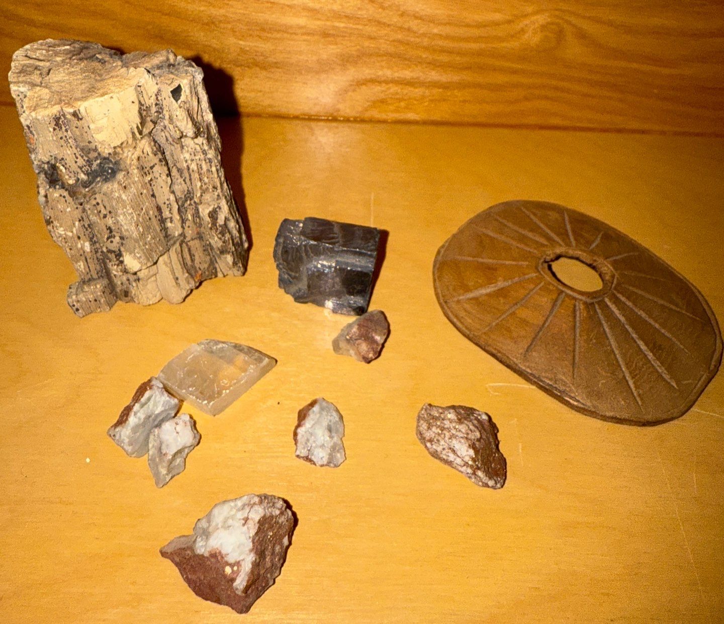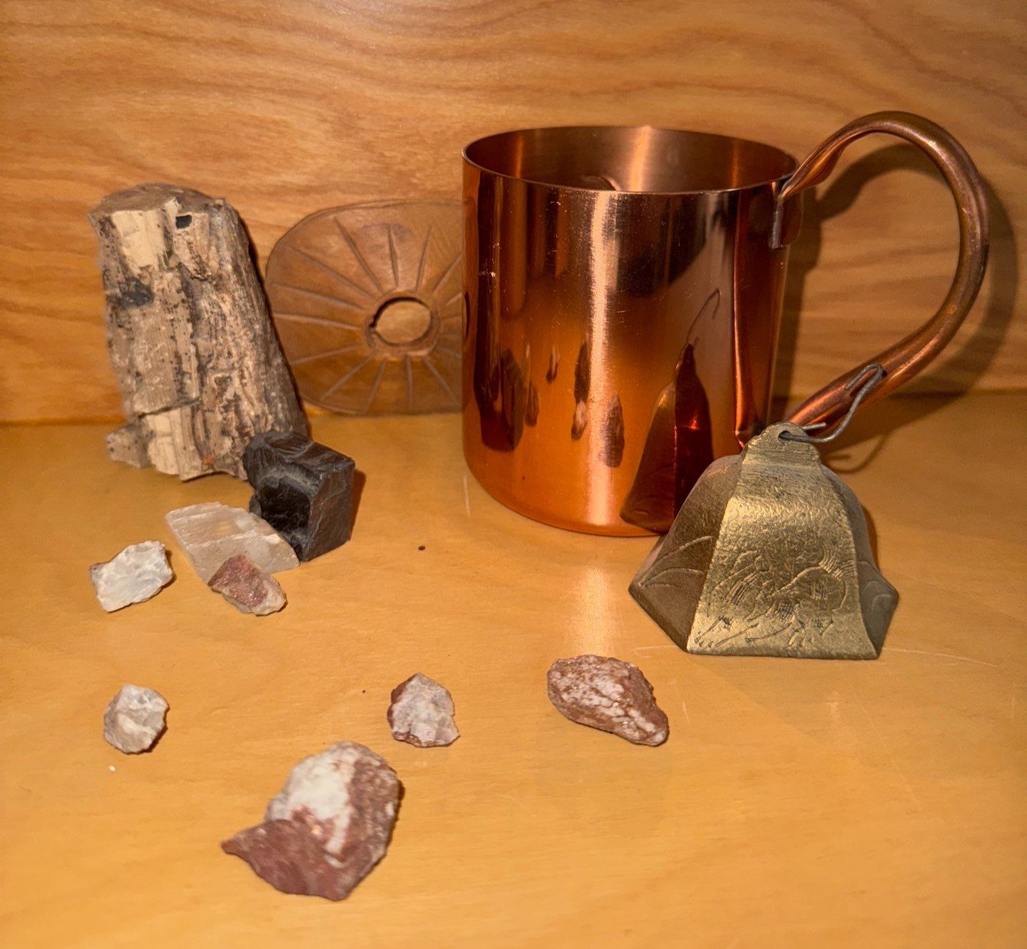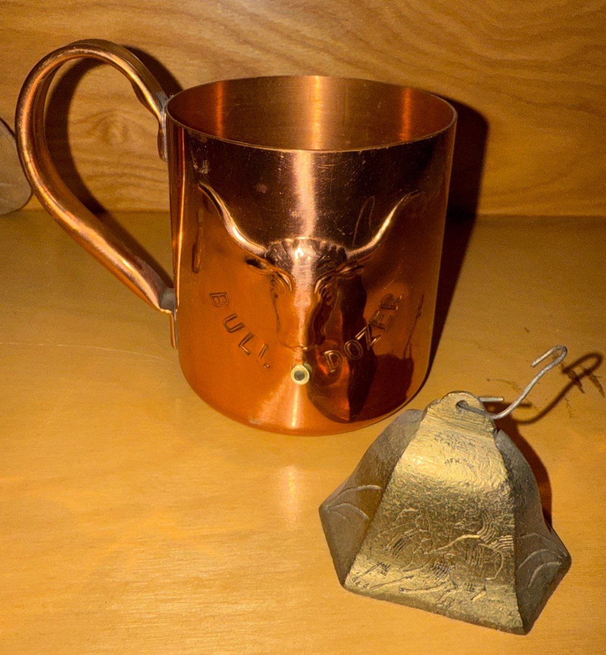 Vintage Italian Copper Craft Mug w/ Cow Bell & Assorted Artifacts / Fossils