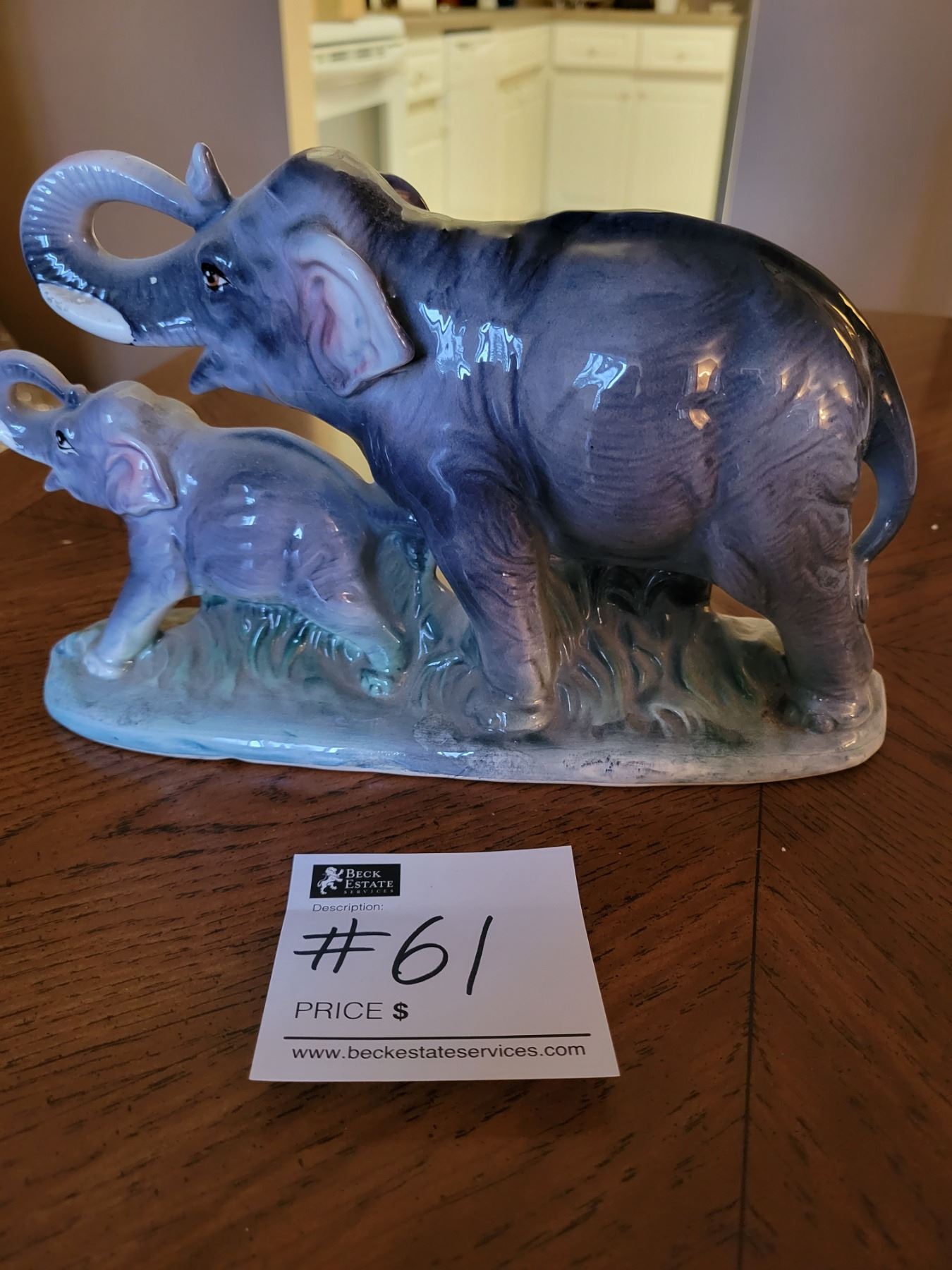 Vintage, Japanese, Ceramic Mother & Child Elephants