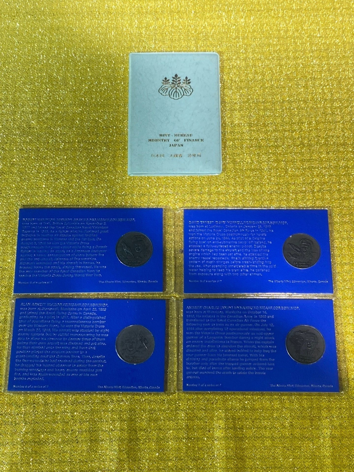 A remarkable collection of vintage Japanese coins, including a Mint Bureau-issued set alongside commemorative war coins. Each piece reflects historical significance and intricate design, making this collection ideal for numismatists, history enthusiasts, or collectors of Japanese and military-themed currency.