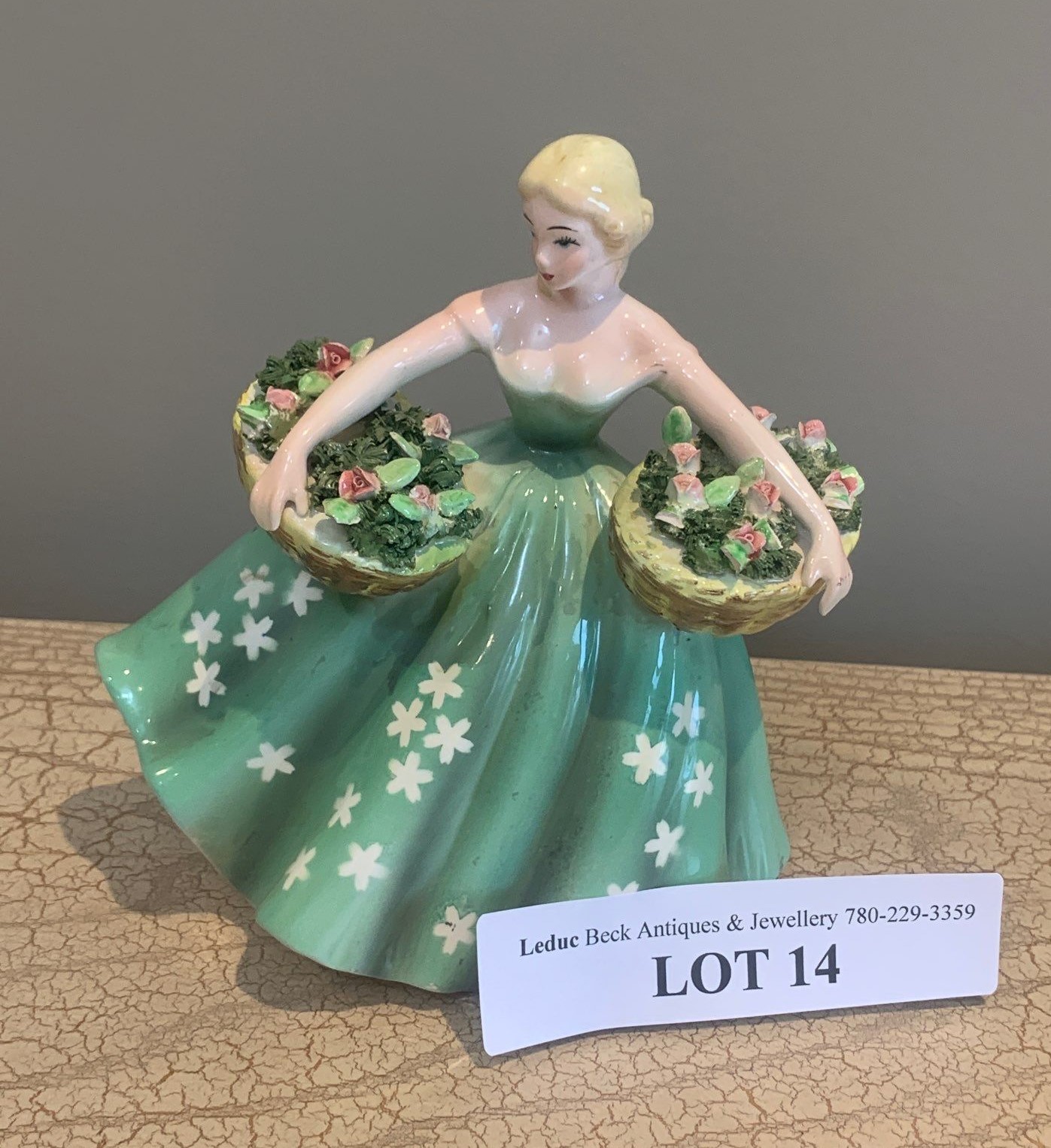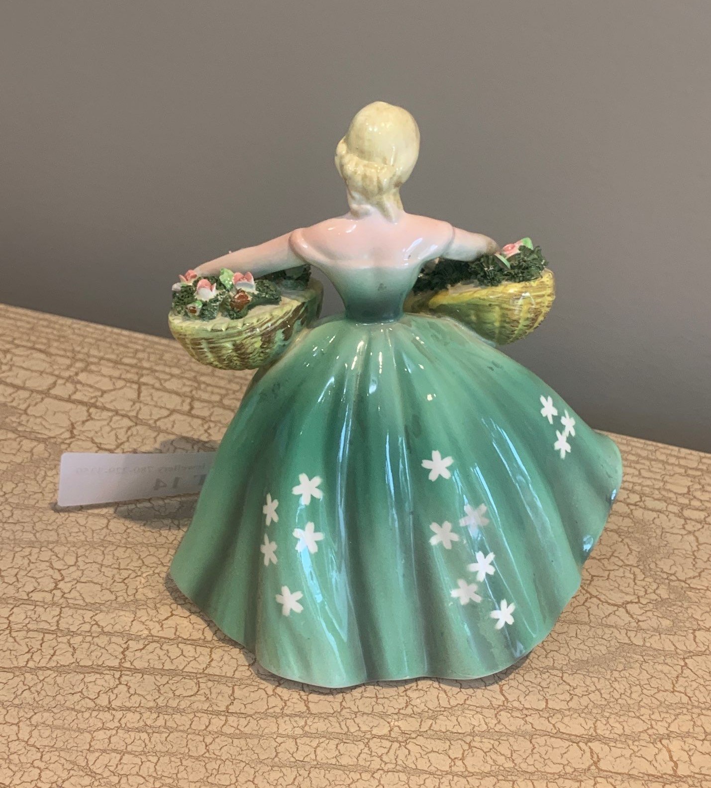 Vintage Japanese Porcelain Figurine Lady With Flower Baskets Japan ESD MR7922