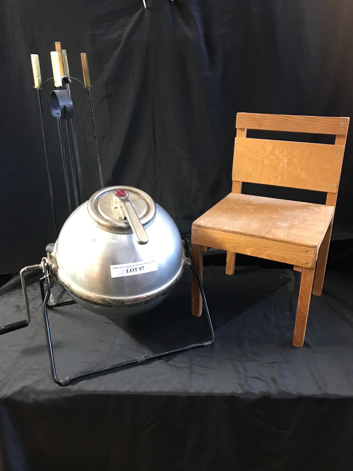 Vintage Kamome Hand Crank Home Washer (Japanese), Small Wood Chair & Fireplace Irons
