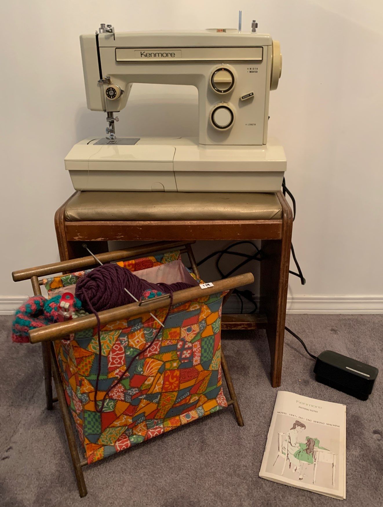 Vintage Kenmore Sewing Machine & Sewing Supplies w/ Decorative Tote