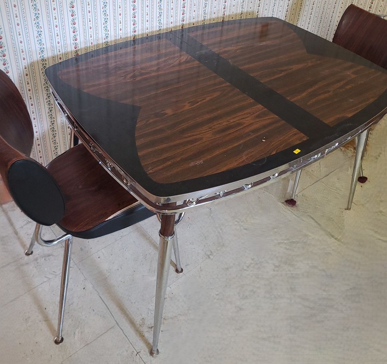 Some Scratches on Tabletop, Some Wear on the Chairs/ Seams Split, Seat Loose/ Needs to be Reattached