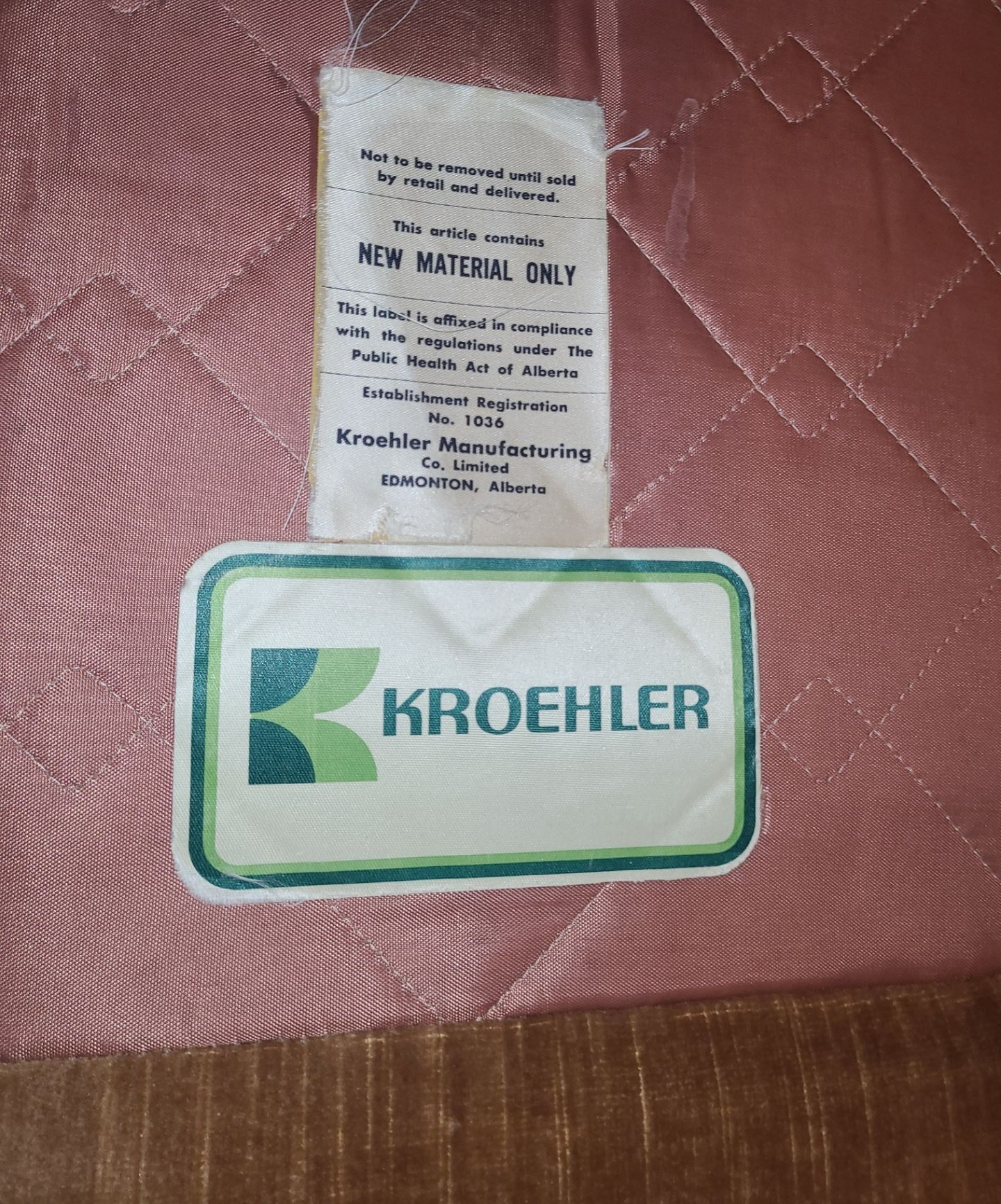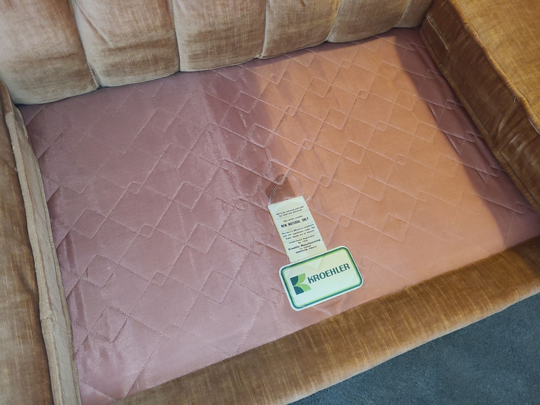 Vintage Kroehler Three Seater Velour Sofa 89 W, 35 D, 26 T