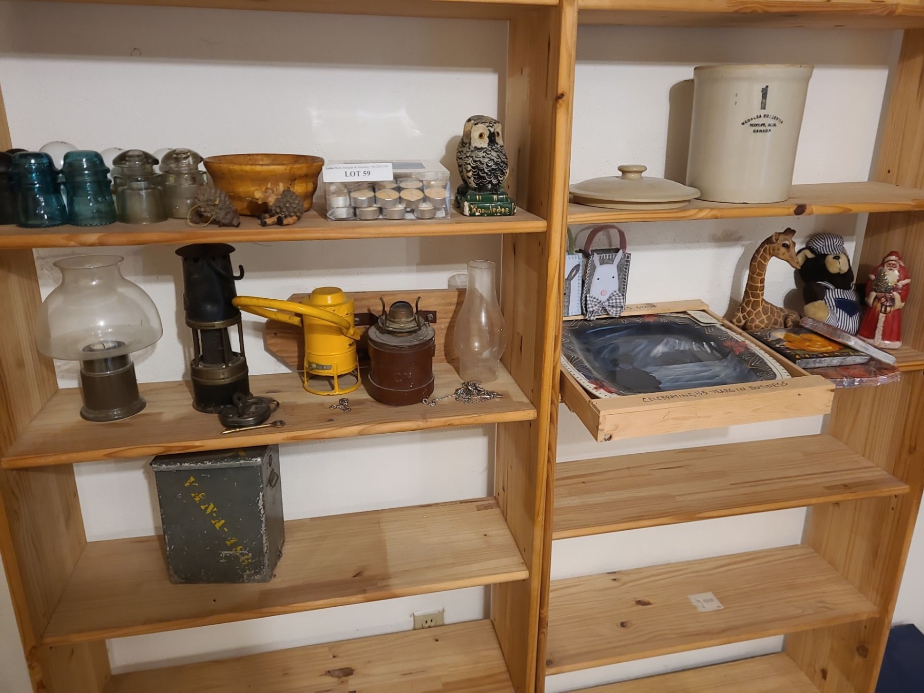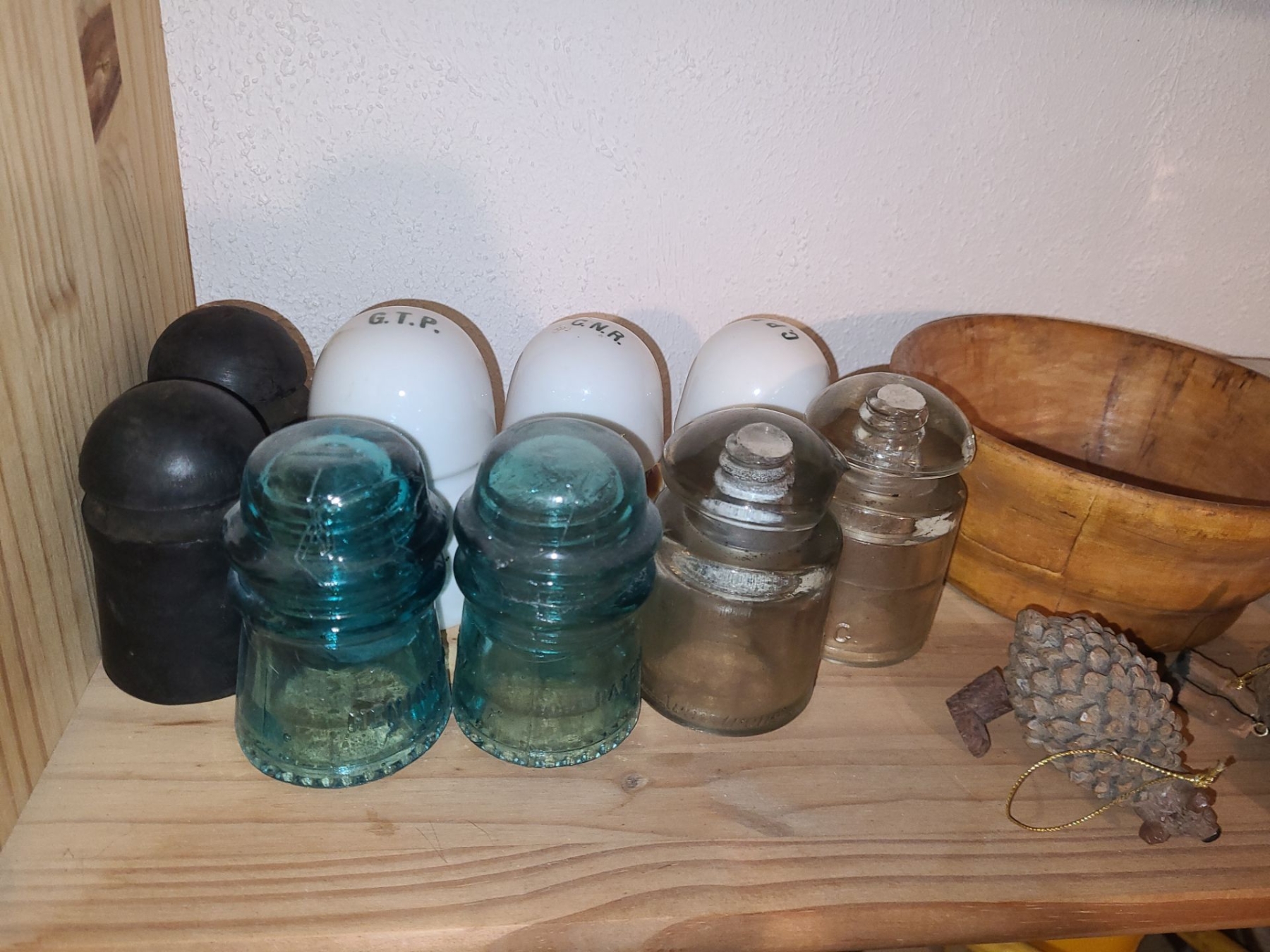 Vintage Lanterns, Electric Glass Insulators, Medalta Crock #1 & more