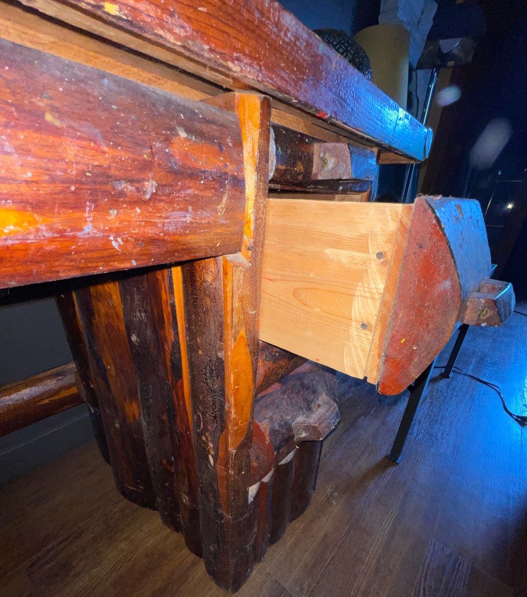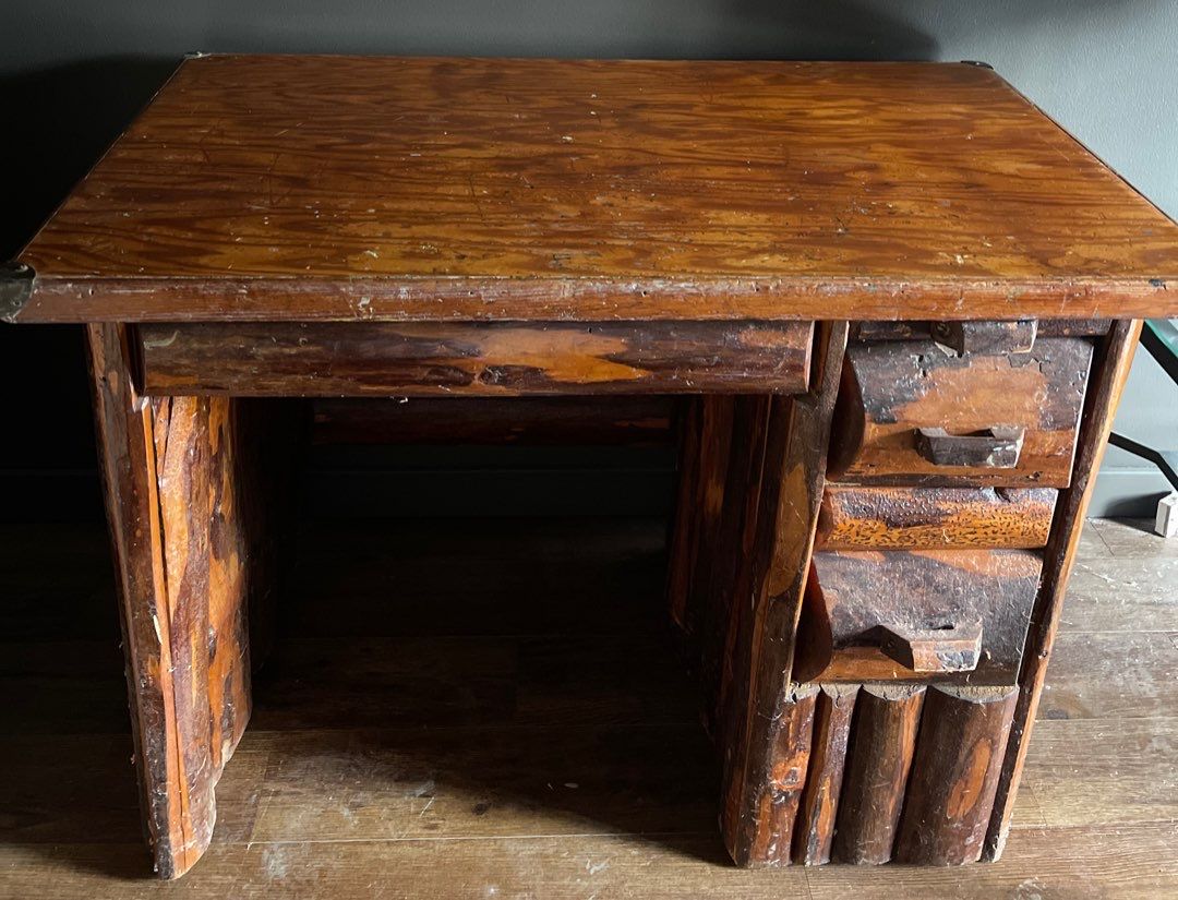 Vintage Live Edge Single Pedestal Desk 14x21x31
